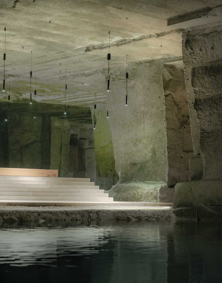 Vicenza stone is the only material used in the project. The stone is both added and subtracted, and the project can be seen as a continuation of the historic quarrying done on the site. Both the ambient and stage lighting, designed by Viabizzuno, enhance the atmosphere, with the surrounding, water-filled chambers lit from below adding to the visual spectacle. The project has created a multifunctional space that preserves and emphasises the unique the characteristics of the place.