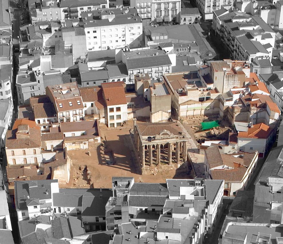 El proyecto recupera el entorno del Templo de Diana en Mérida, que constituía el foro o centro de la ciudad en época romana.