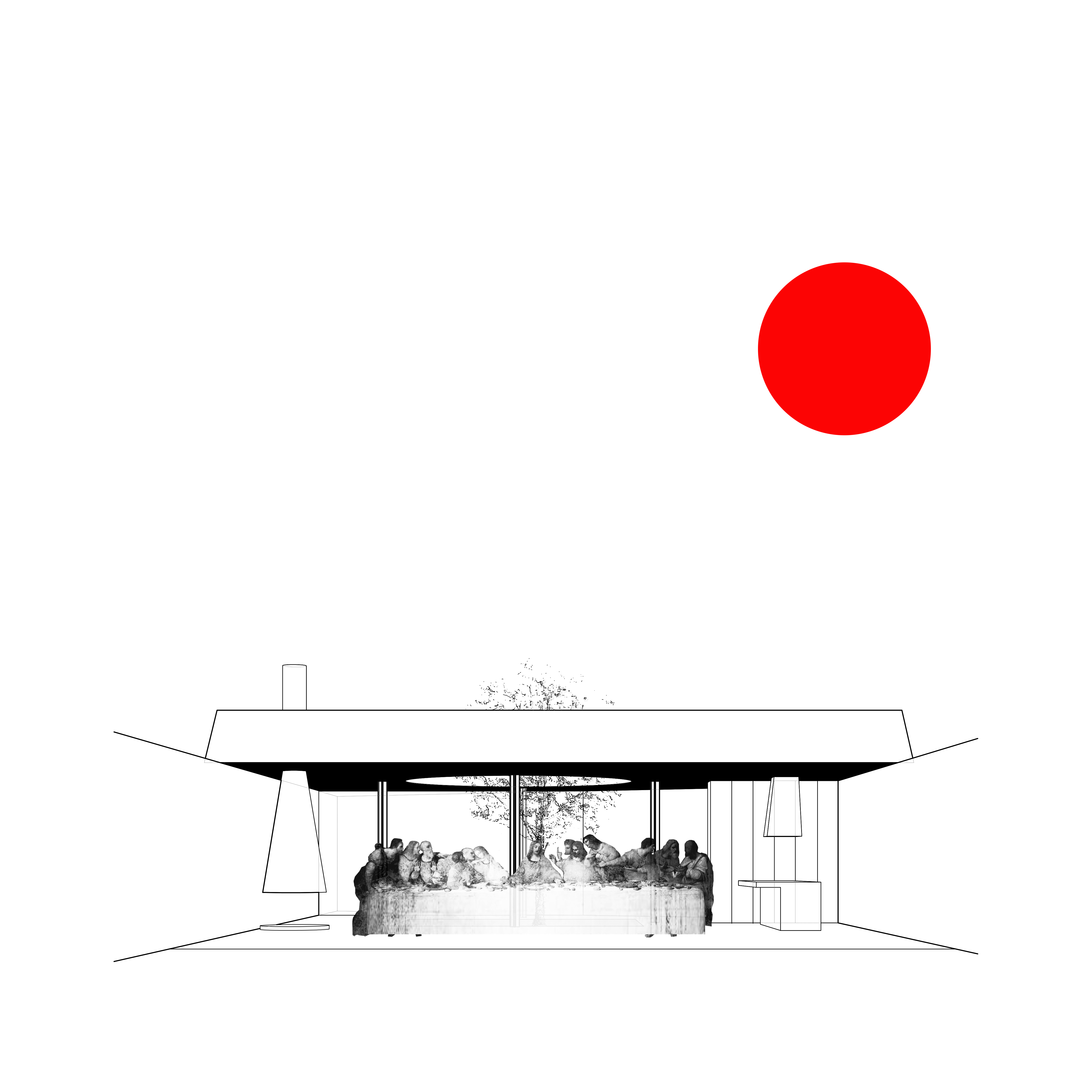 The commission, which had no other programmatic definition than of a livable space able to gather a big feast, is approached with the freedom of planning a pavilion.