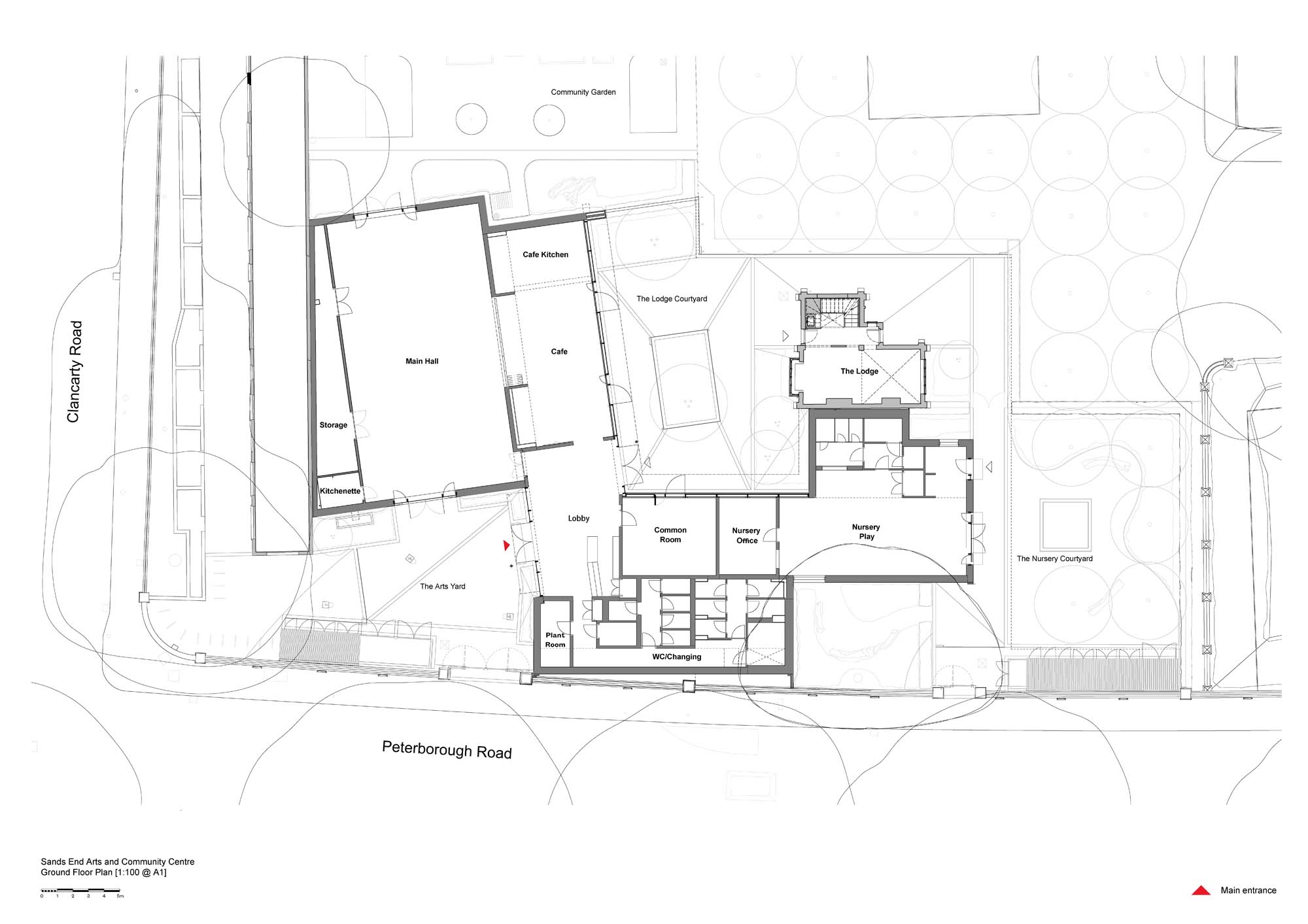 Mæ’s Sands End Arts & Community Centre in Fulham is a welcome addition for the local community in Fulham. Sited beside the historic Clancarty Lodge in the north western corner of South Park, the centre caters to a wide range of users, providing a café alongside spaces for social and educational functions, clubs and events.