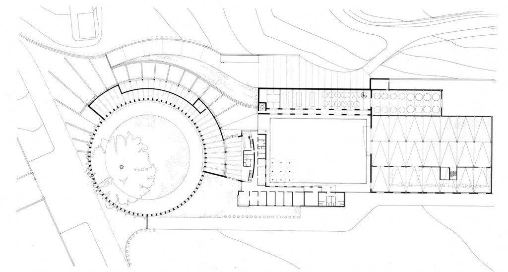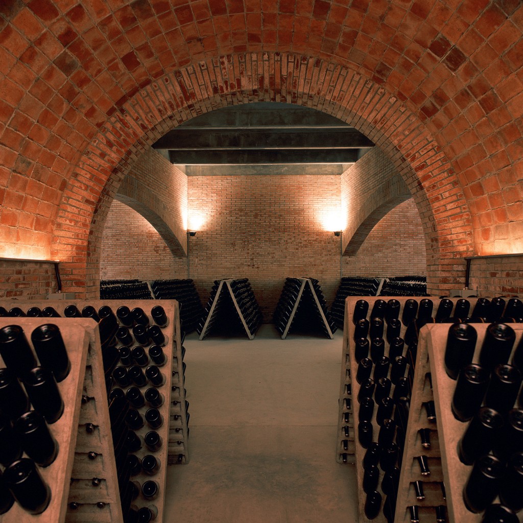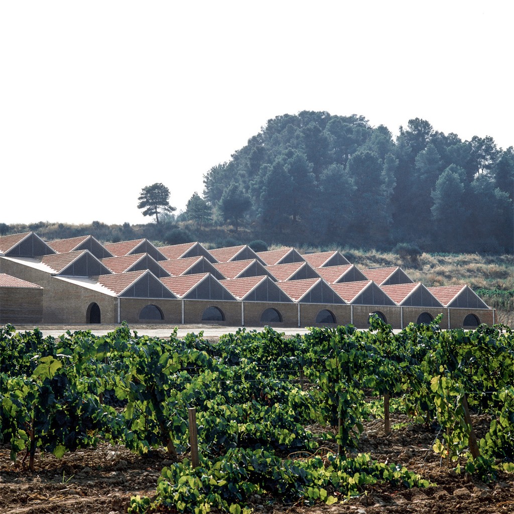 El nuevo complejo para la producción de cava, el vino espumoso catalán, está situado en una finca de la comarca del Penedès. Frente a elegantes edificios modernistas obra del arquitecto Josep Puig i Cadafalch, está situado en el punto donde las montañas de las afueras de Sant Sadurní confluyen con los viñedos que descienden suavemente hacia el pie de la montaña de Montserrat.