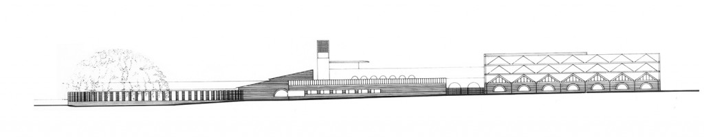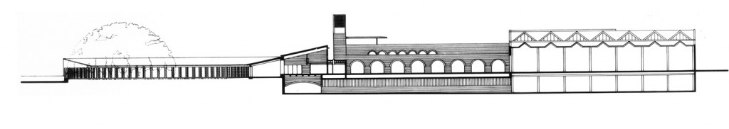 La disposición de los diversos edificios confiere al complejo una expansión lineal, ganando en presencia a medida que se extiende. El patio circular acoge y resalta el roble centenario de Can Codorniu. Otro patio rectangular, más funcional, sirve para relacionar los edificios con su proceso. Una torre mirador, con accesos a distintos niveles, aloja la planta técnica y señala la entrada del complejo en el punto de encuentro de los diversos trazos geométricos representados en ambos patios. Los muros de carga son predominantemente de ladrillo rojo. Los espacios más representativos están cubiertos con vigas de hormigón in situ y bóvedas de hormigón y ladrillo de técnicas diversas características de la zona.