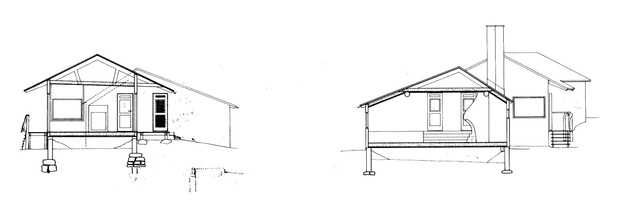La casa se organizaba en dos cuerpos protegidos por los faldones de una cubierta de madera a dos aguas. El volumen mayor contenía la cocina, los dormitorios y las áreas de servicio mientras que el menor, girado algo más de noventa grados respecto al anterior, albergaba la sala de estar. Se construyeron dos chimeneas; la primera actuaba como punto de articulación entre las dos piezas y se situaba entre los dos niveles que dividían el cuarto de estar, adoptando una disposición escalonada. La segunda, situada en el exterior, se apoyaba sobre la fachada orientada a poniente.