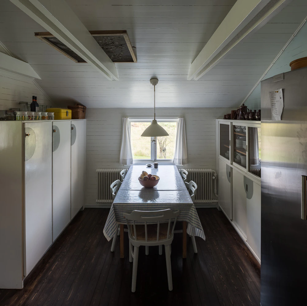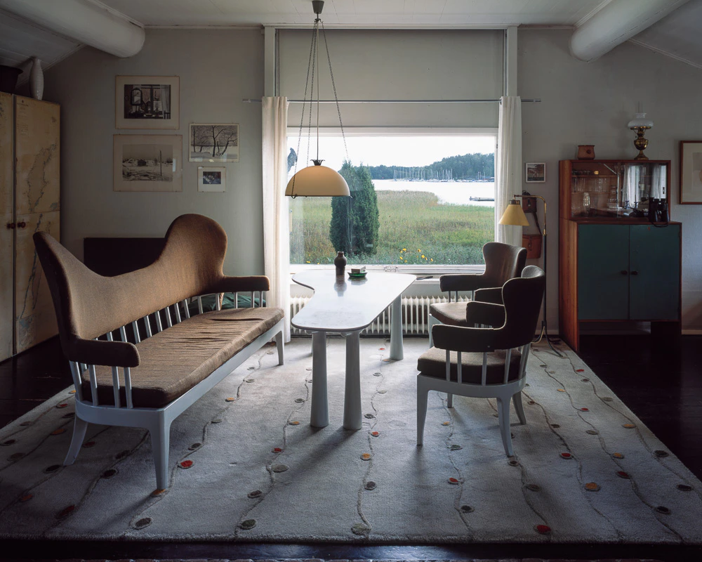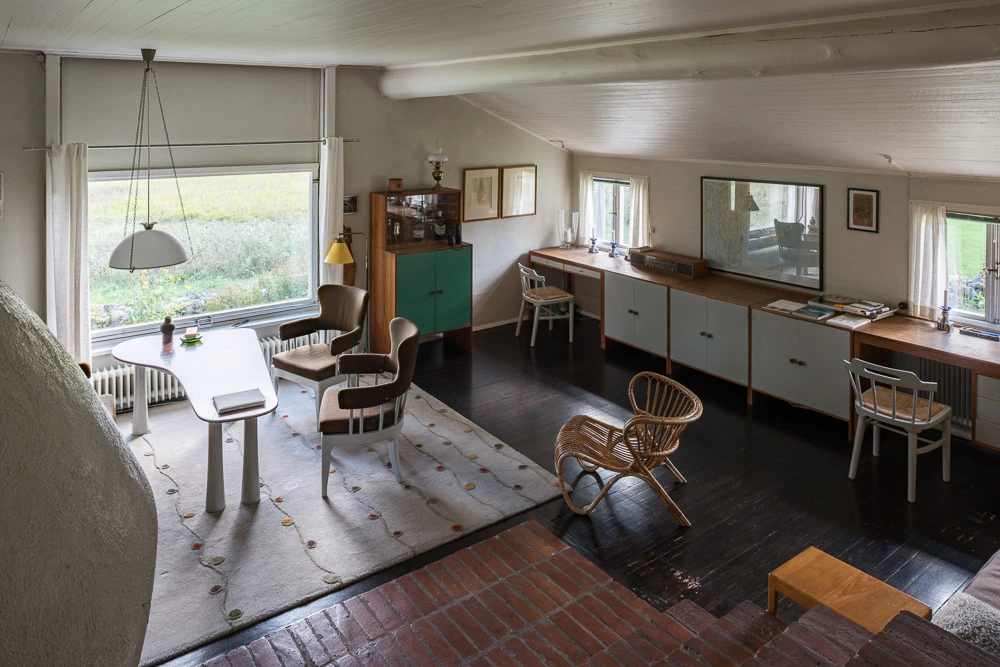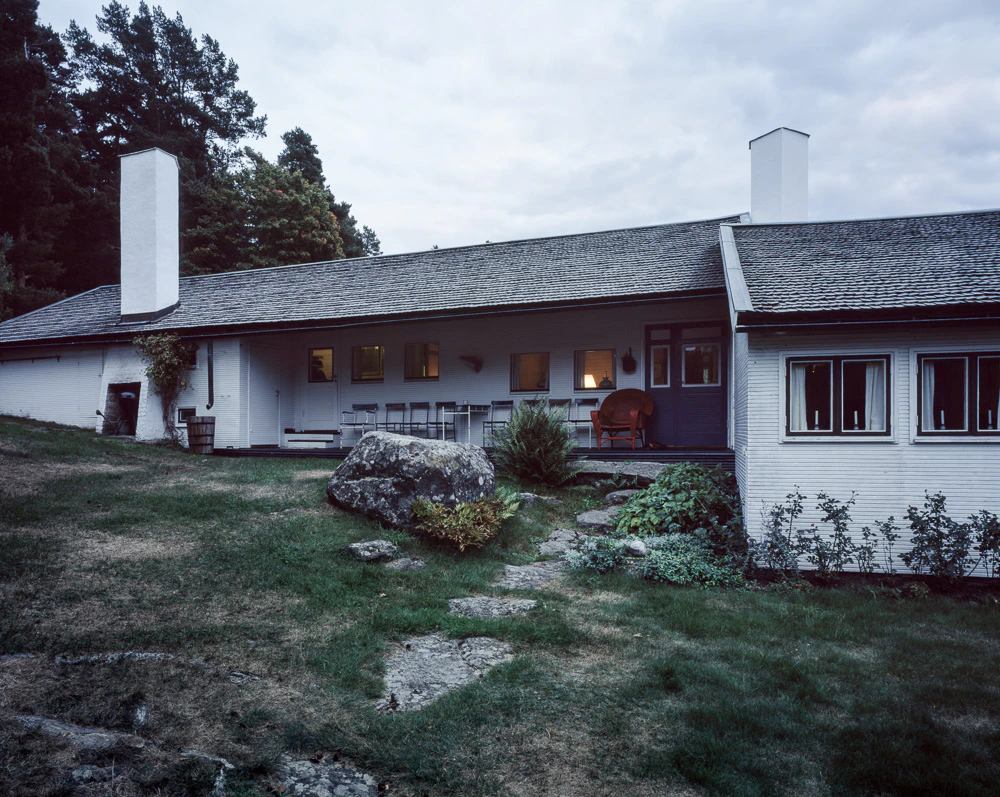 Con la intención de recuperar la dimensión estética y simbólica del paisaje —determinante en la arquitectura tradicional sueca—, la intervención sobre el lugar pretendía ser prácticamente imperceptible. Sobre la amplia parcela distribuye los edificios del conjunto; la vivienda y siete pequeñas construcciones independientes de madera que albergaban el aseo, la sauna, una pequeña leñera y algunos almacenes. Asplund proyectó un camino de acceso que discurría por la parcela respetando la vegetación existente y planteó únicamente la plantación de varios frutales. Aún así, según su hijastro, Per Wahlman, finalmente se talaron algunos árboles situados frente a la casa para permitir las vistas de la bahía. Con todo, la decisión de acometer el proyecto disponiendo las construcciones dispersas sobre la parcela, sin provocar apenas alteraciones en el lugar, no resulta extraña para el maestro sueco autor del Cementerio de Estocolmo, donde ya había quedado demostrada su extremada sensibilidad a la hora de abordar las relaciones entre la arquitectura y el paisaje.