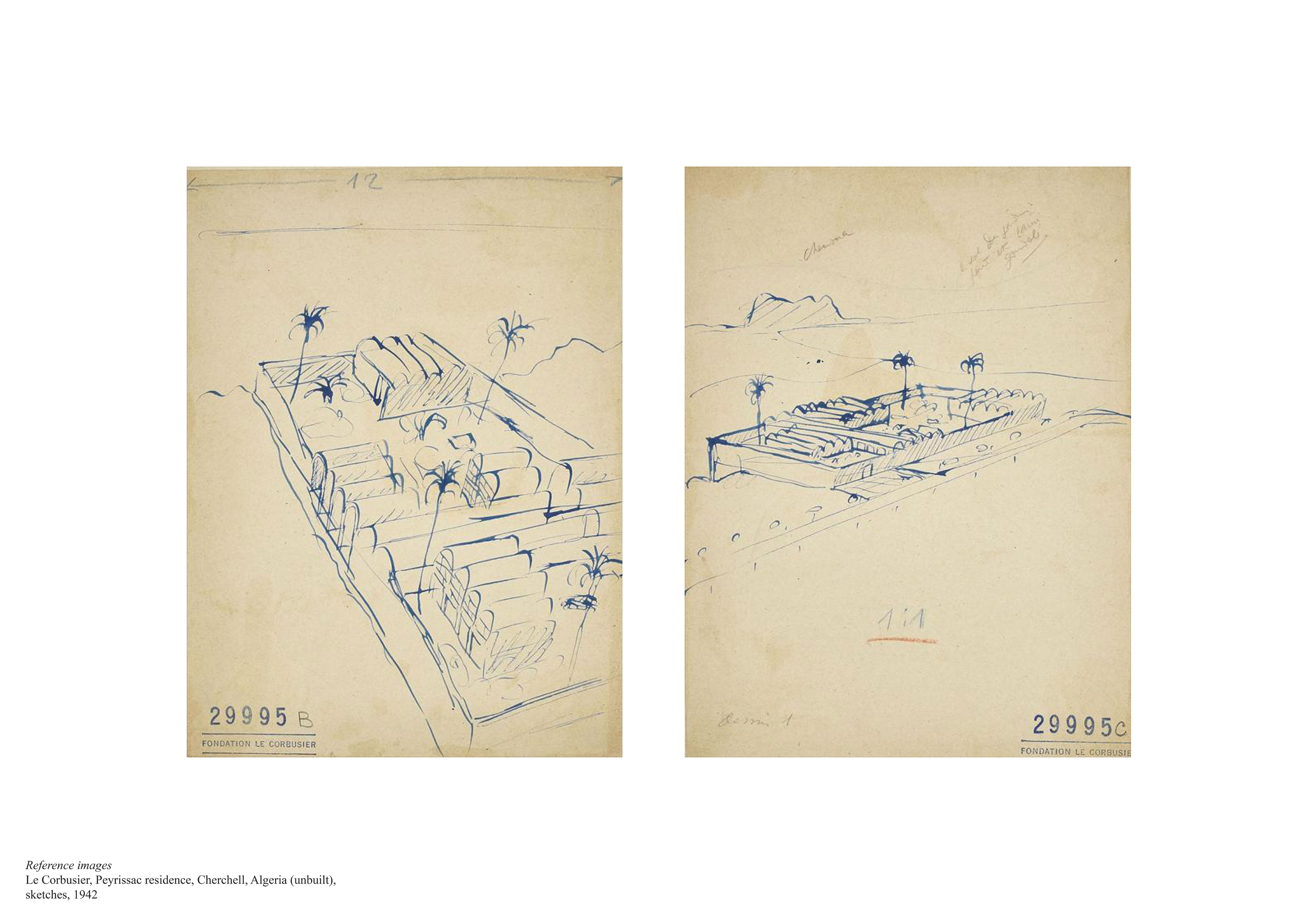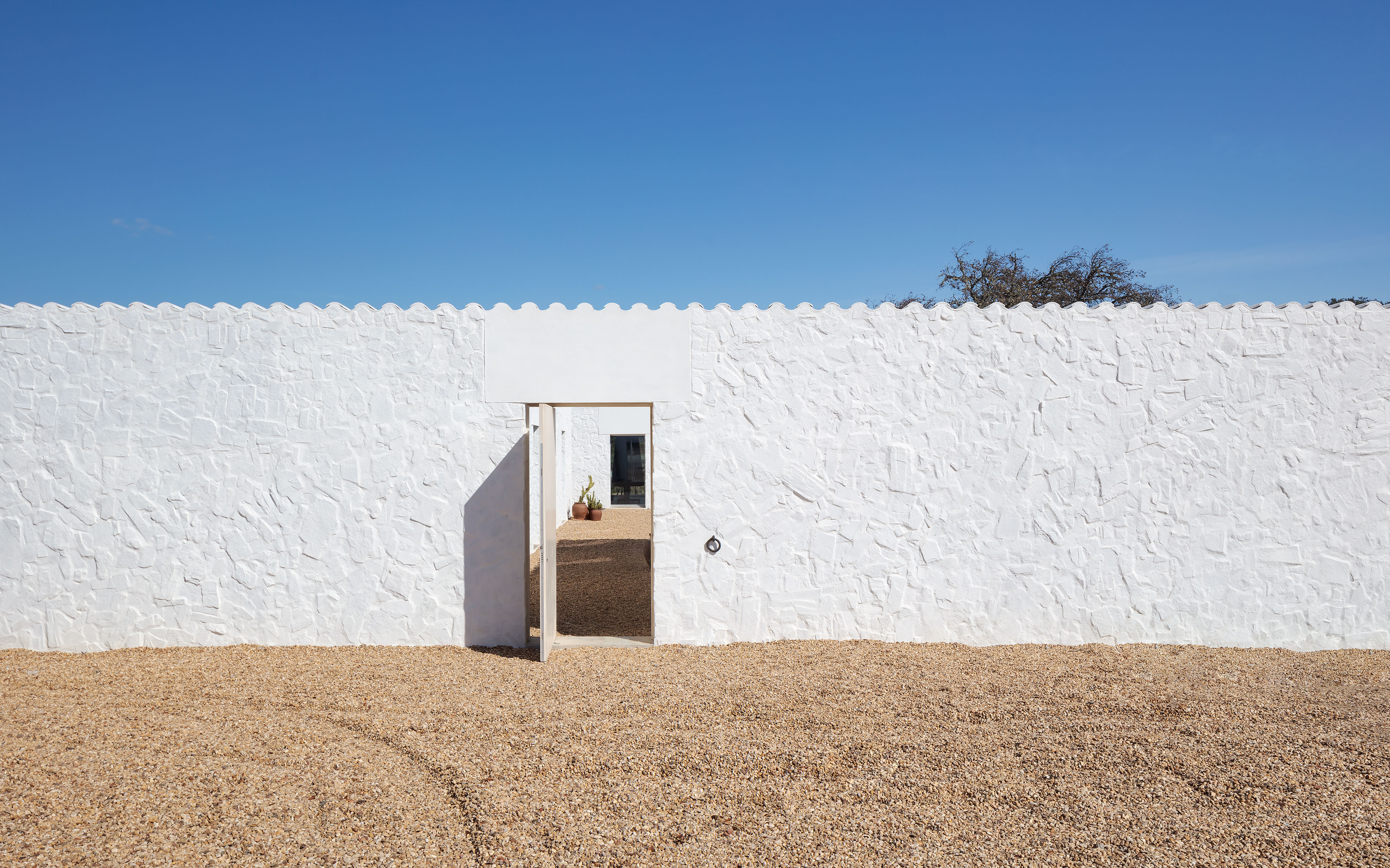 Given its remoteness and isolation, the house echoes the tradition of the Portuguese alcáçova, —or qasbah, following its Arab etymology—, which functioned as a defensive citadel, or compound, with its constructions built within and protected by a high-walled perimeter. Poetically, it summons the Heideggerian notion of “bounded space”, of the human need to define a place of dwelling amidst the endlessness of the landscape. In fact, this typology of a fortified farm is the dominant form of occupation across the Maghreb and the Mediterranean, from Roman antiquity and Arab settlements, to Fernand Pouillon’s and Le Corbusier’s excursus in Argel.