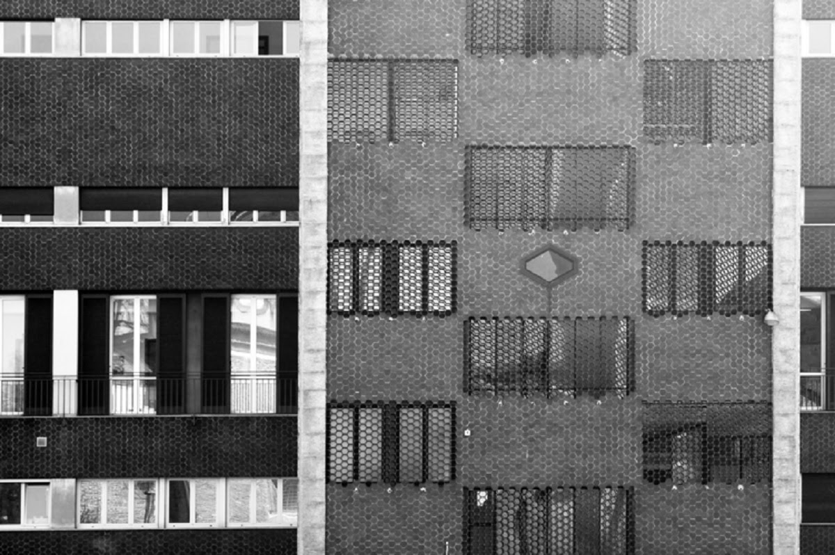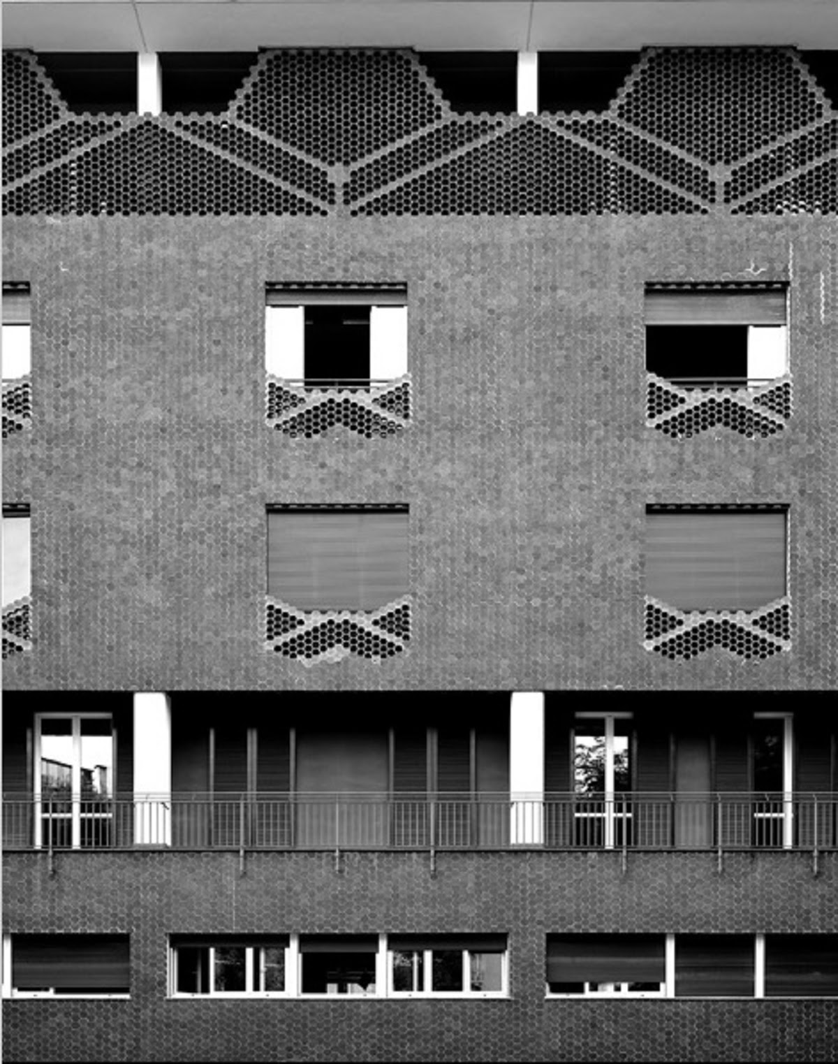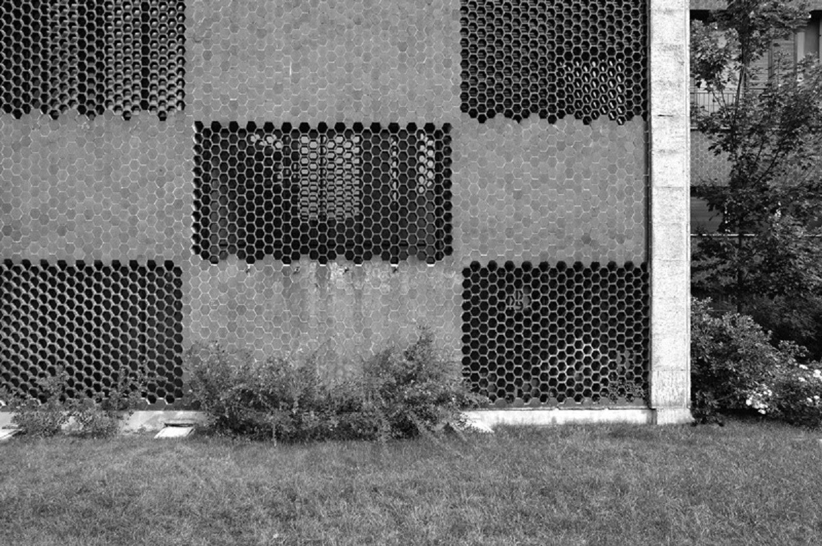 El aspecto del edificio y su estructura general se ven fuertemente condicionados por la cercana basílica de Sant’Eustorgio: la fachada que da a Via Santa Croce tiene un mayor juego volumétrico gracias a los cuerpos salientes de escaleras y servicios revestidos con piezas hexagonales de gres que -combinados siguiendo un diseño de malla regular con piezas idénticas vacías- dando lugar a superficies alternativamente opacas y en celosía, protegiendo las partes más privadas del edificio.