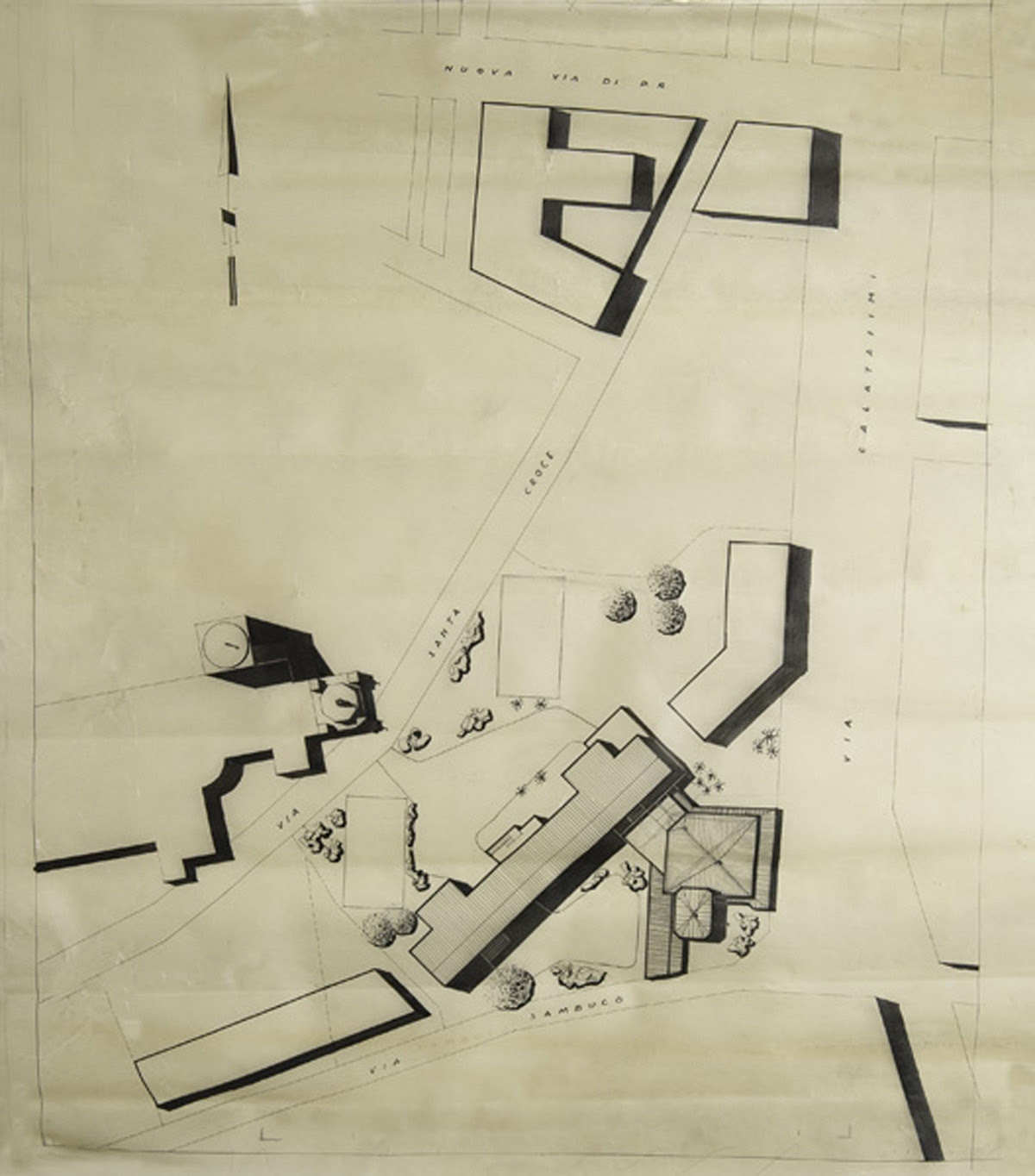 El edificio, diseñado en 1946 para la comisión del Instituto Beata Vergine para albergar un instituto religioso femenino, forma parte de un proyecto más extenso que contemplaba todas las propiedades religiosas hasta la intersección entre la Via Calatafimi y la Via Cosimo Fantini.
