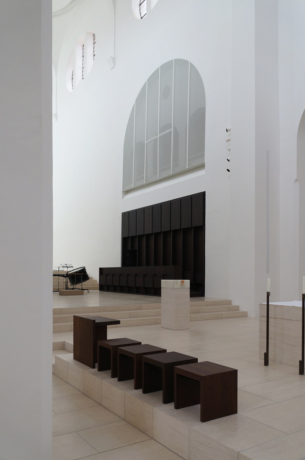 Almost inevitably, the legacy of so eventful a history is architecture of compromised clarity and coherence. This reality becomes the starting point for a new intervention by John Pawson, whose aim is sensitively to recast the way the church is experienced, from aesthetic, functional and liturgical perspectives, whilst also accommodating the fullest possible expression of the pastoral and artistic functions which characterise St Moritz’s identity as a contemporary parish church in the city. Amongst the defining gestures of the design is the reinvention of the choir and apse, spatially isolated by the current layout, as a place of light and sound.