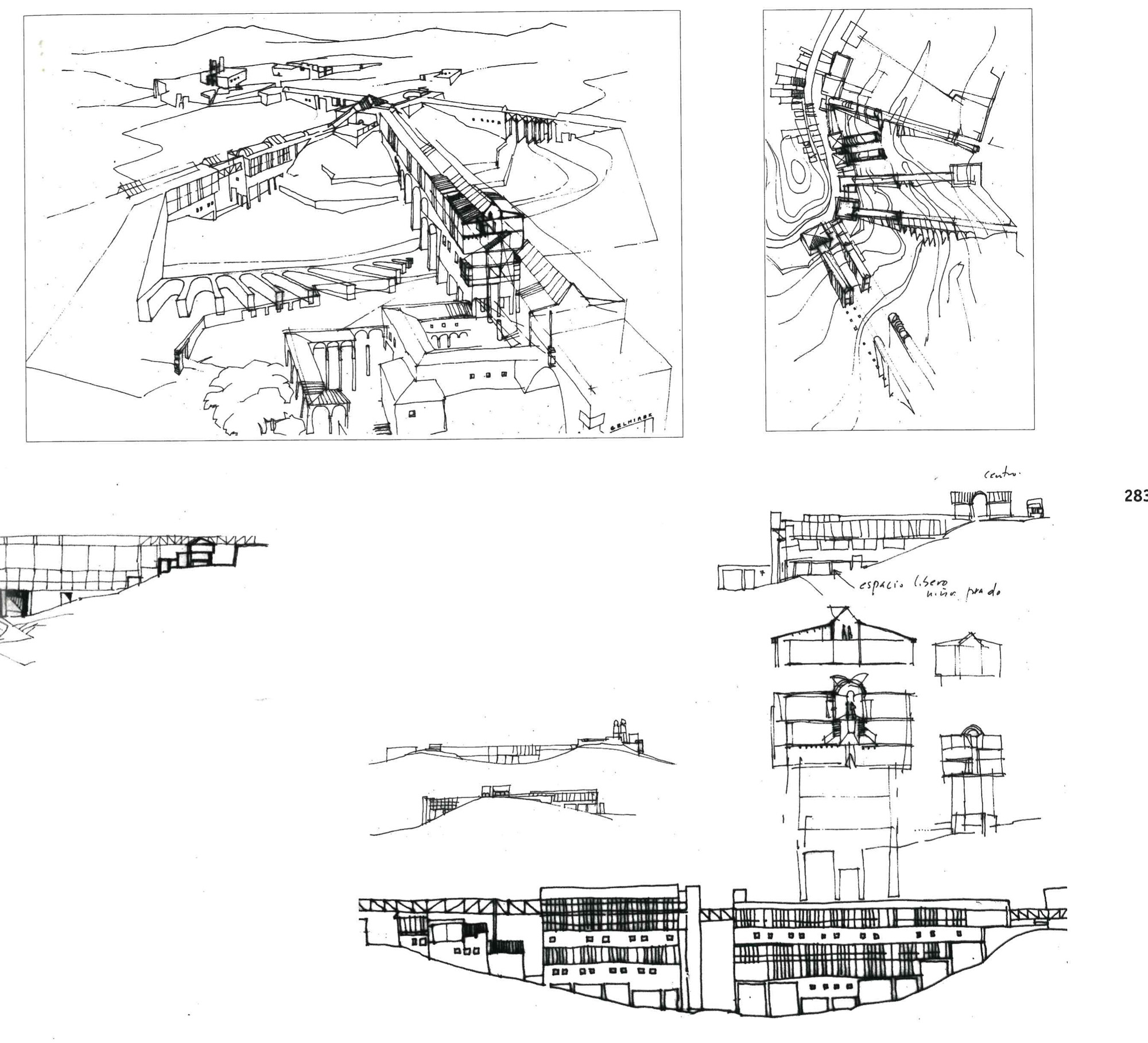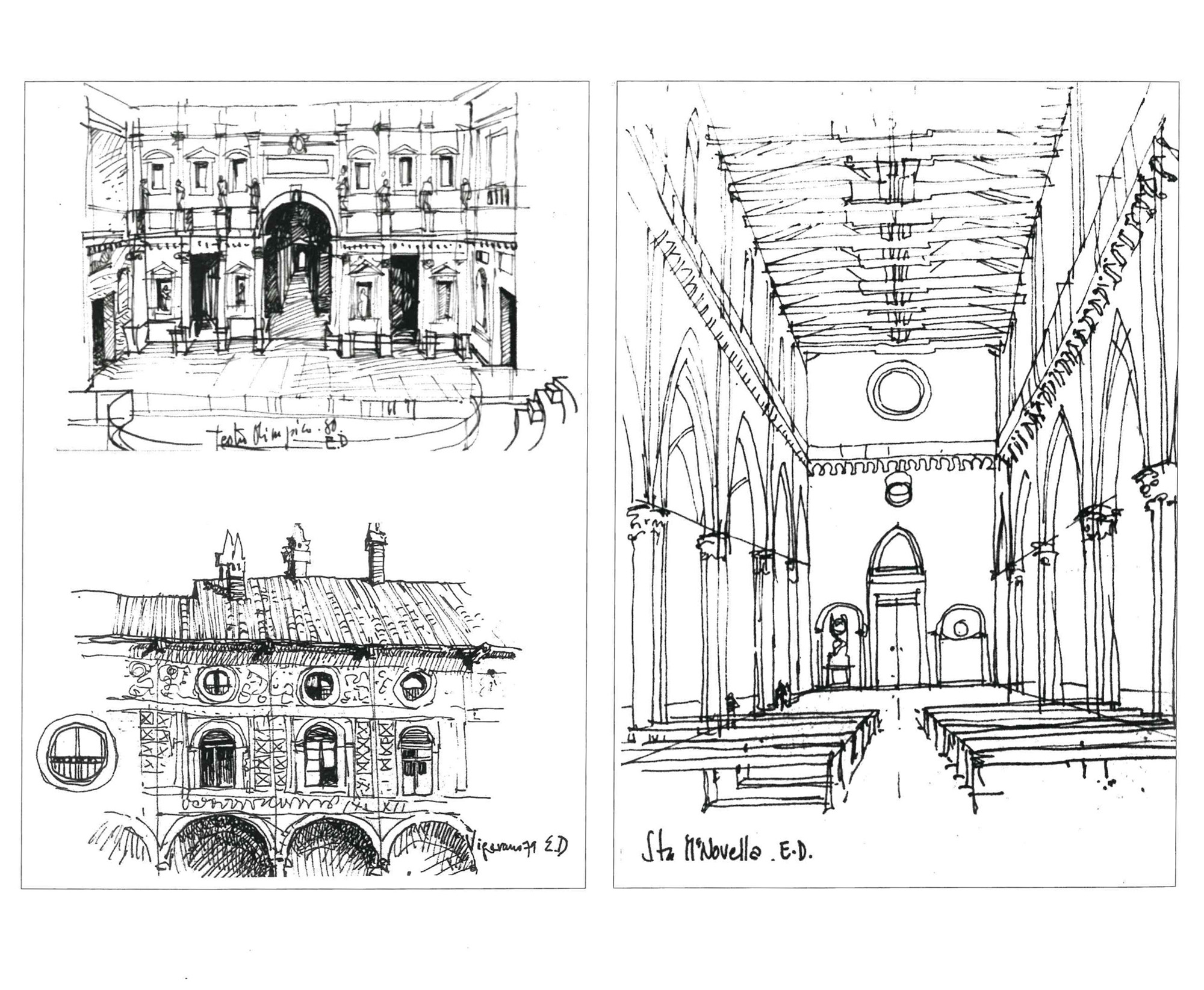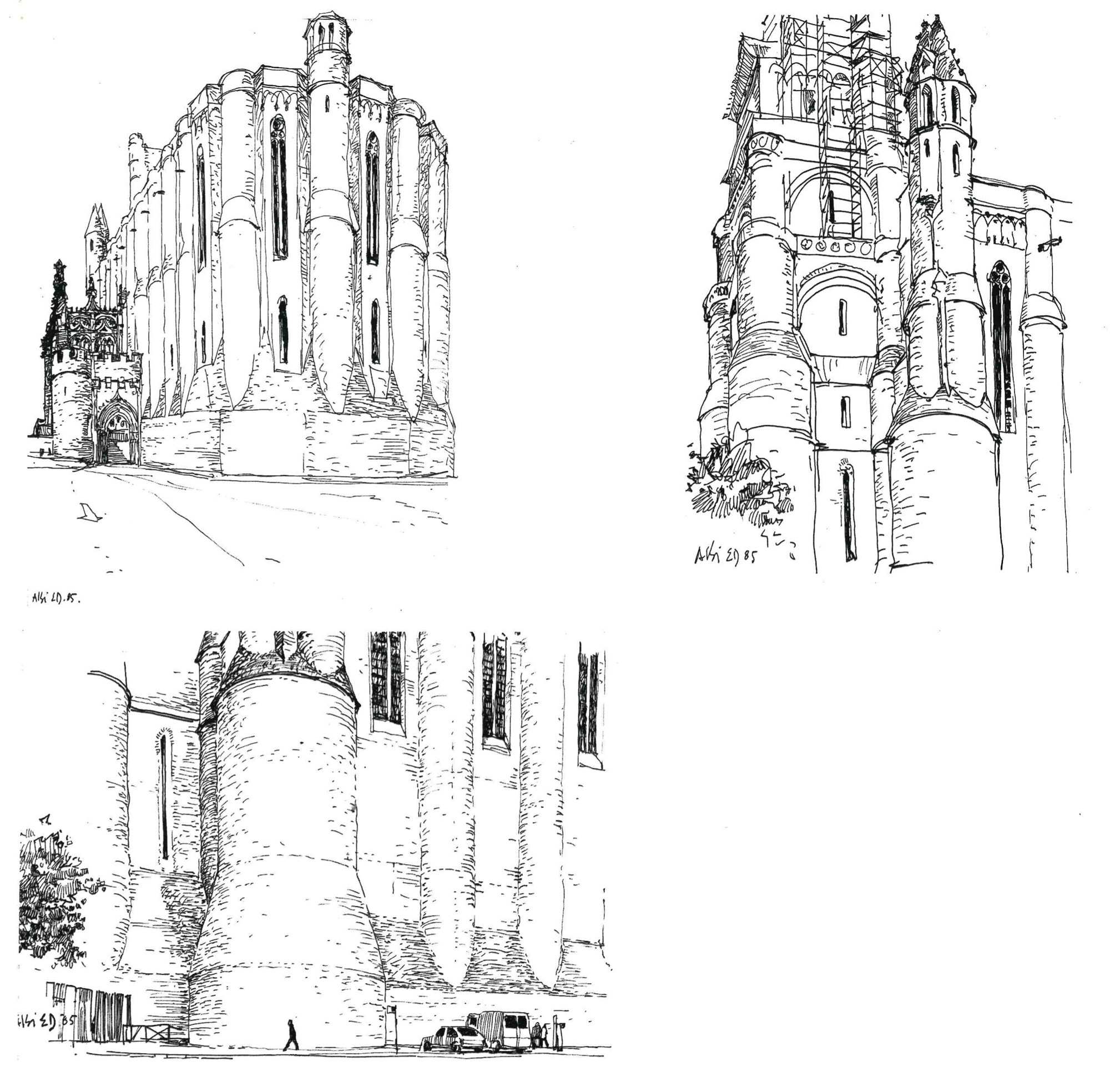 “Entonces, el camino recorrido, los rodeos y los retrocesos, pero sobre todo la vibración de cada uno de los trazos, el movimiento de cada una de las curvas, la vibración de cada una de las sombras, nos cuentan la historia de estos primeros encuentros y de este primer acuerdo con la materia del mundo, de ese surgimiento de la figura en claroscuro, sobre la claridad uniforme de la hoja de papel. Y es cuando el arquitecto, por las exigencias del objeto, se hace pintor y utiliza la perspectiva, o bien el color, por la relación que éste sugiere entre lo próximo y lo lejano, o bien la sombra y la luz, cuando el trazo fugado hace nacer la magia de la profundidad y la figura se vuelve forma, volumen, espacio, y es entonces cuando el dibujo nos envuelve por completo, como en los cuentos para niños en los cuales empezamos a convivir y adentrarnos en las imágenes y donde el ensueño se torna realidad.”
