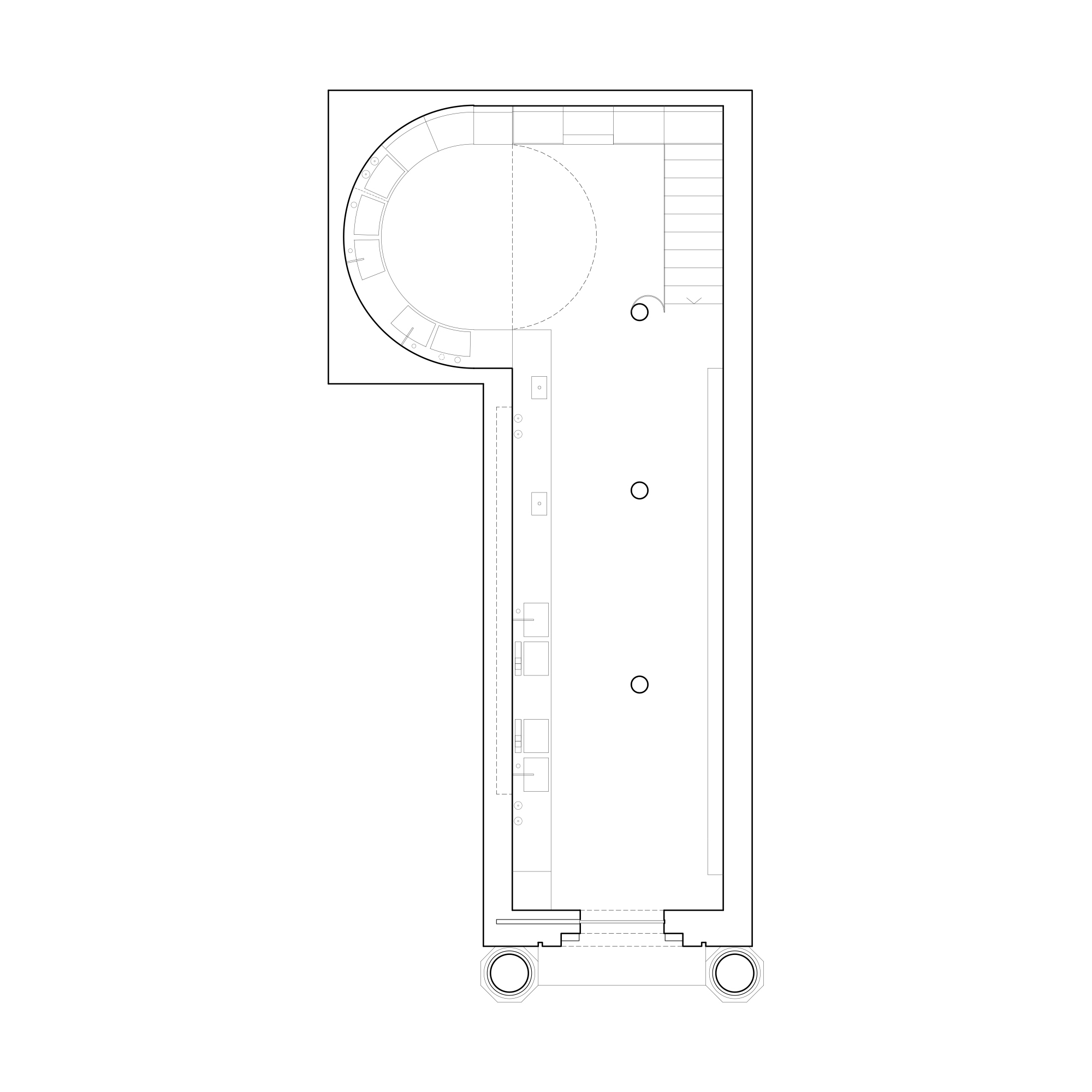 The columns, the trays, and the counter are placed inside the store looking for the visitor to be able to move freely, attracted by the way things happen. The three accompany the visitor throughout the store until discover that the counter turns on itself and forms a small semicircular room where everything changes. Inside it, the straight lines disappear, it’s an enveloping space, in which the height changes dramatically, and with it the light and the material that makes up the room. A sensual and intimate space where you can sit and have a close relationship with everything around you.