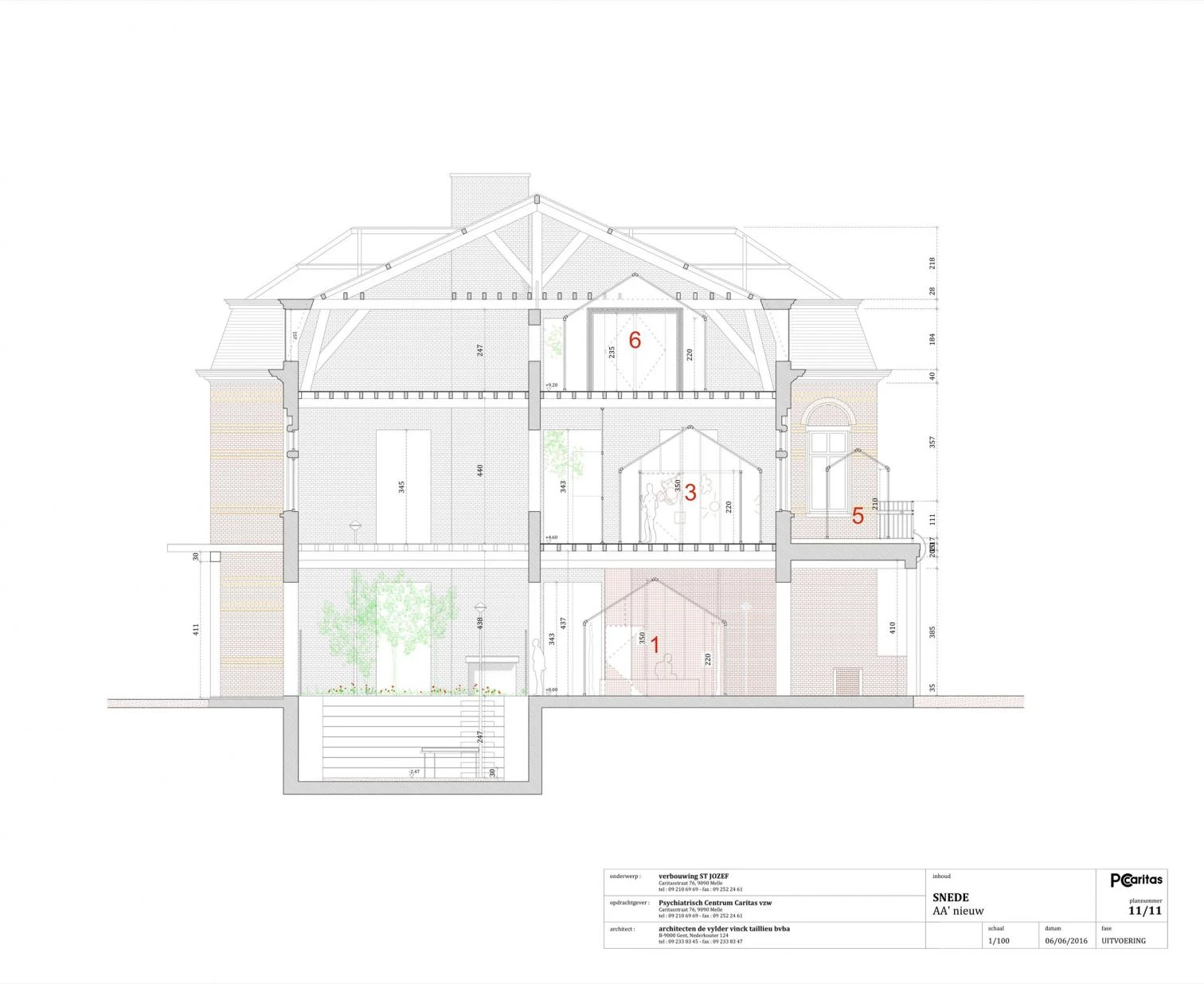 The Ghent firm headed by Jan de Vylder, Inge Vinck, and Jo Taillieu transformed Sint-Jozef, raised in the 19th century, into a facility with communal spaces for the psyquiatric center of Caritas in Melle, in Belgium’s Flanders region.