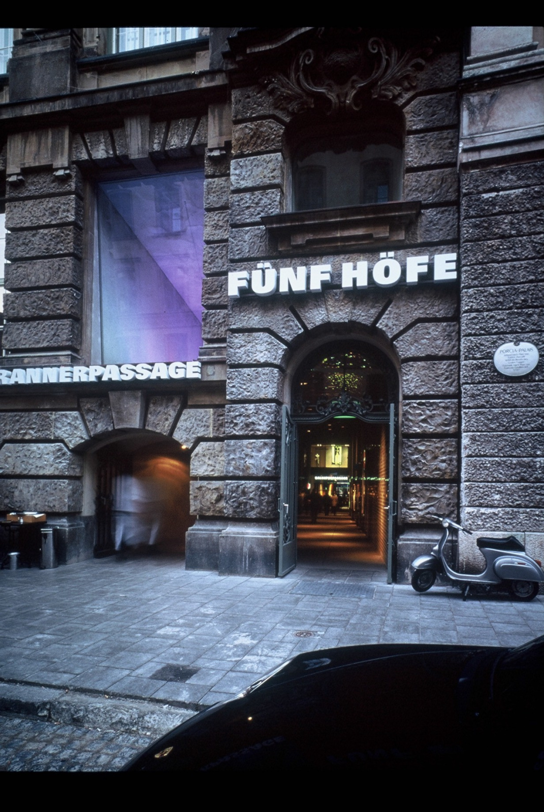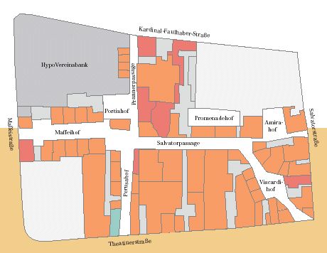 Upon completion of the 2nd and final phase of construction of the Five Courts complex in March 2003, the system of arcades is extended to the north, the Salvatorpassage is completely accessible and leads into the Viscardihof.