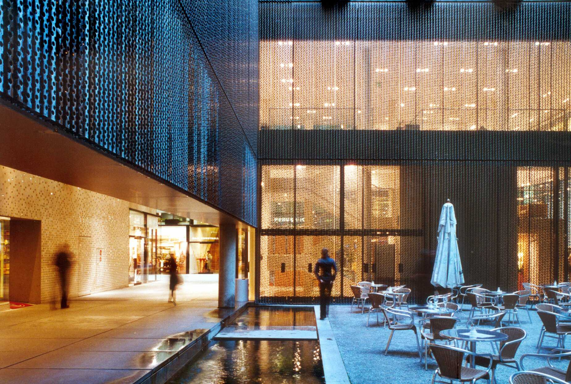 The result is an entirely new complex, a sequence of courts varying in size and shape with shops, restaurants and cafés. On one hand, the concept for the “Five Courts” may be seen as a contemporary complement to the historical courts of residences, and on the other, as a European response to American shopping malls.