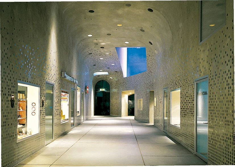 The project submitted in 1994 was based on the demolition of most of the buildings, as specified by the competition at that time, while in the newly initiated project of 1997 and 1998, most of the buildings and façades along the street have been preserved. What initially appeared to be a disadvantage, proved a stroke of good luck. Instead of having to contend with the façades of the historical neighborhood, intervention in an existing structure made it possible to create unexpectedly exotic spaces. The buildings acquire volume and shape by being placed like fillers around the spaces cut out of the interior of the block.
