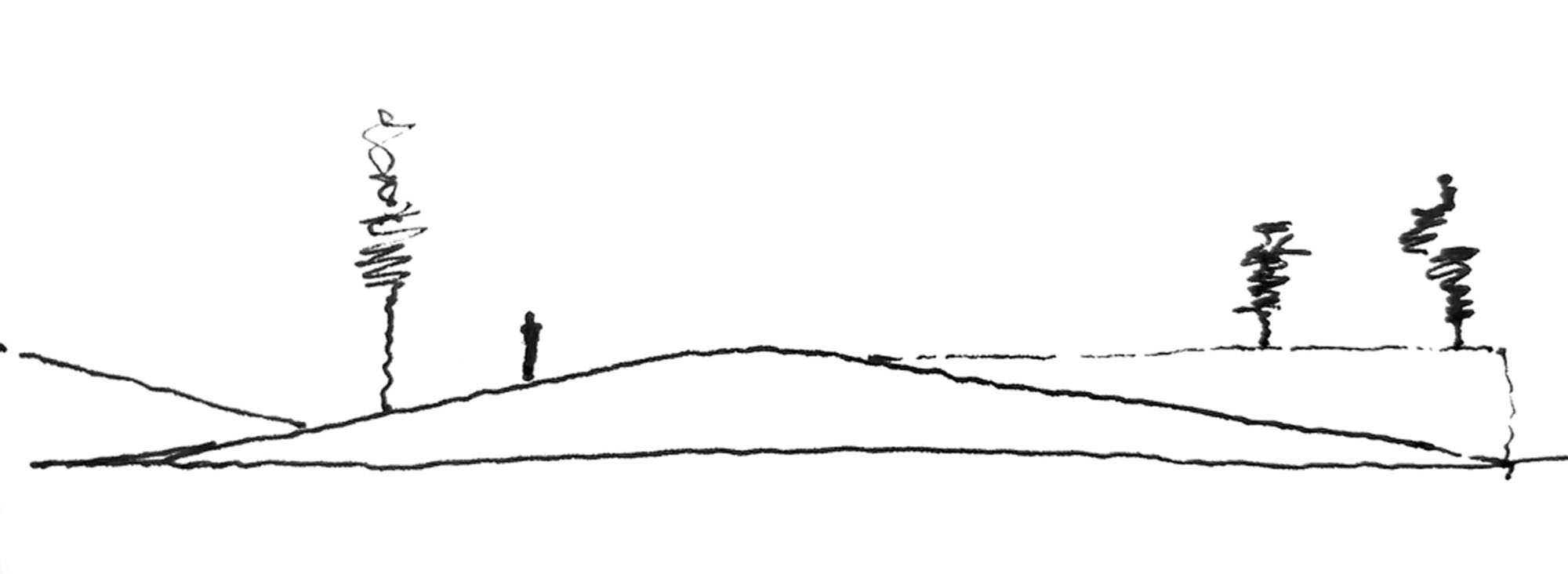 Such accents marks in the poem were four concrete walls that emerged surprisingly from the landscape; two of them bear the land of this new hill that appeared by raising the bed sheet, and two others frame the drive to escort guests on their way into the house.
