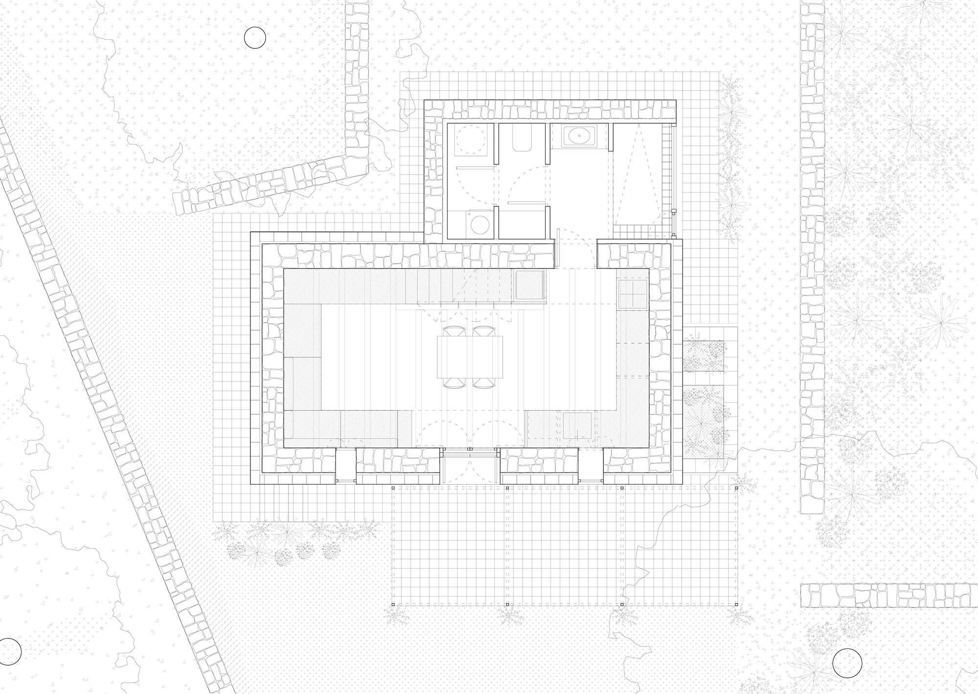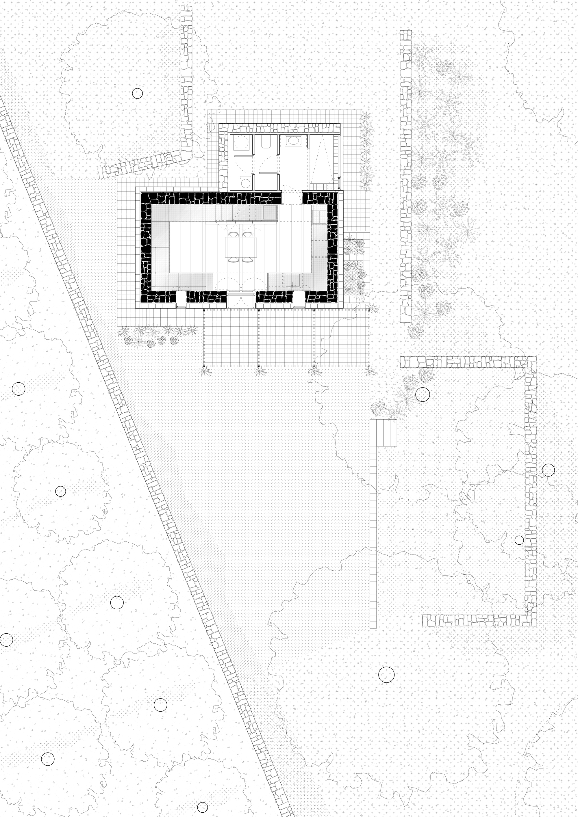 The preexisting dwelling is located within a set of disused stone walls, where a Mediterranean forest of pine and oak trees has grown over the years. The proposal seeks the restoration of the relationship between the original construction and this characteristic generic landscape, so typical of the region, deeply rooted on the cultural knowledge.