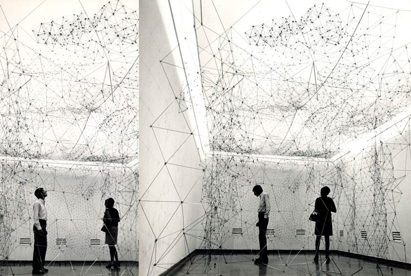 Su trabajo se caracteriza por la experimentación en el espacio con la línea, la unidad más elemental del dibujo, así como por el innovador uso de la retícula, forma relacionada íntimamente con la abstracción en el arte moderno. En 1969, Gego exhibió Reticulárea en el Museo de Bellas Artes de Caracas, instalación capital de la historia del arte. Es un ensamblaje de piezas modulares de acero y aluminio que construyen una vasta estructura en apariencia orgánica, pero cuya experiencia está marcada por la ruptura de los espacios en los que se encuentran.