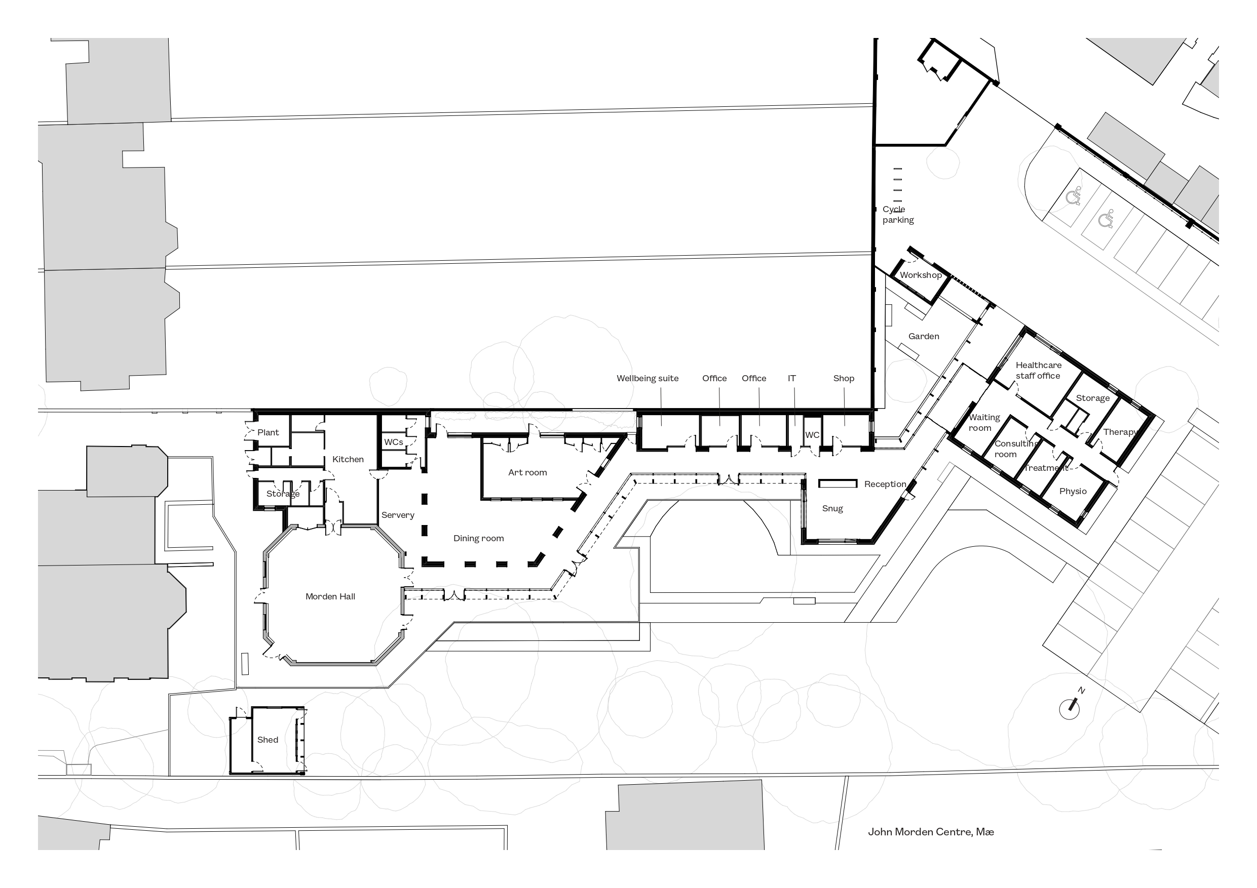 Catering to a wide range of end-user needs, the centre provides new facilities and services as well as bringing together elements formerly spread across the site. The hub aims to tackle social isolation and loneliness among older people residing at Morden College, providing workshops and arts-space, a café, medical facilities such as GP and physiotherapy consultation rooms, and a number of social lounges.