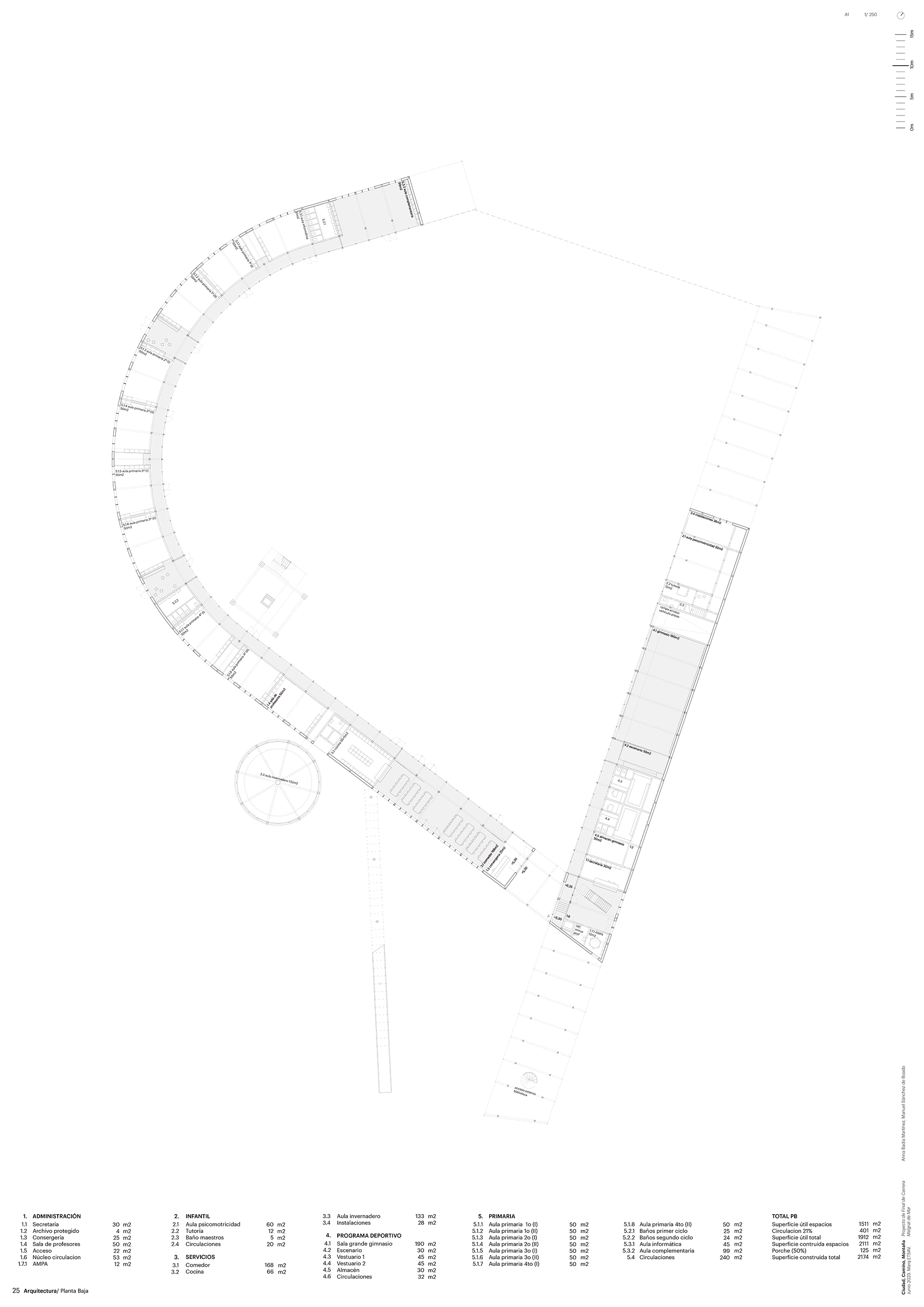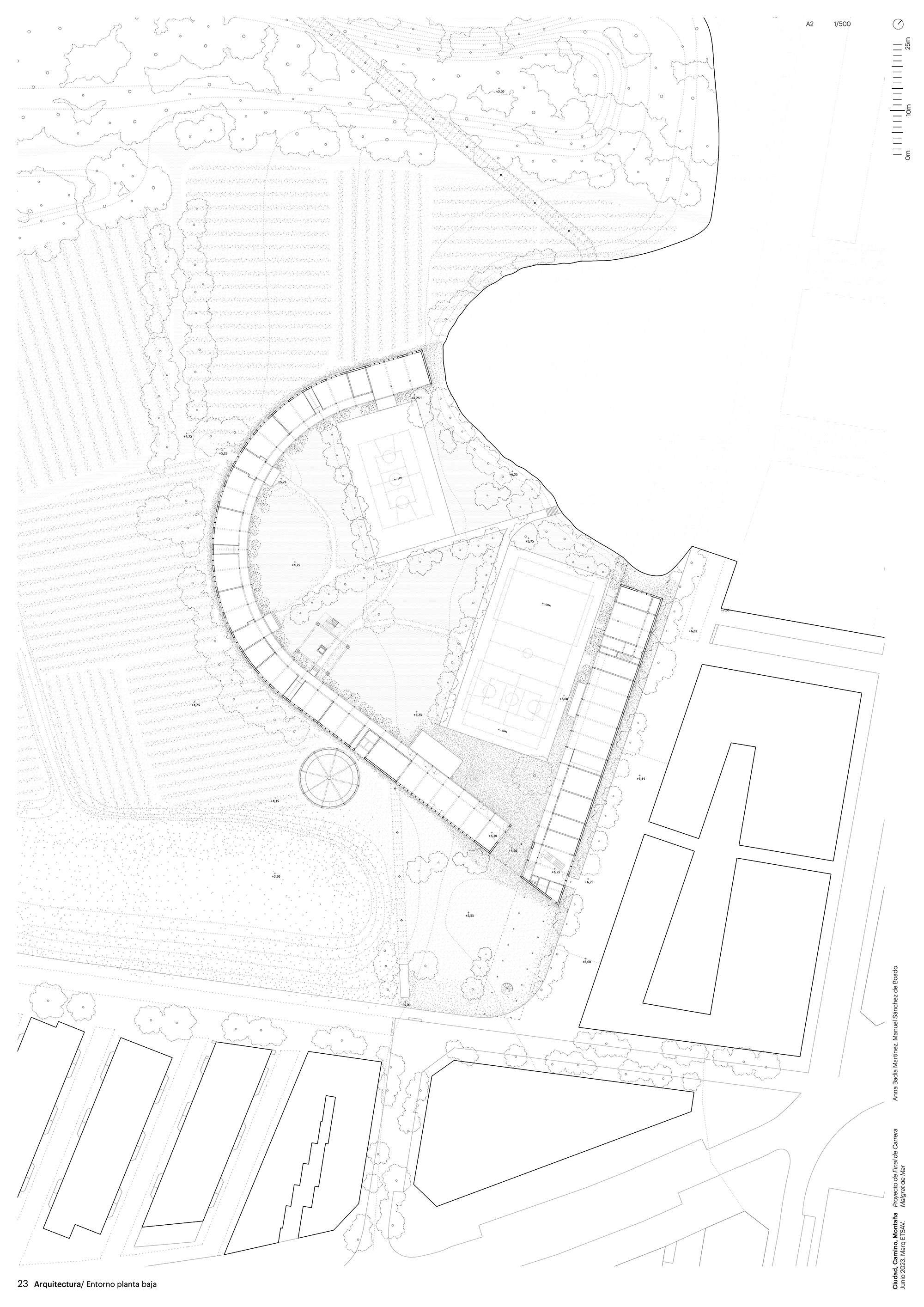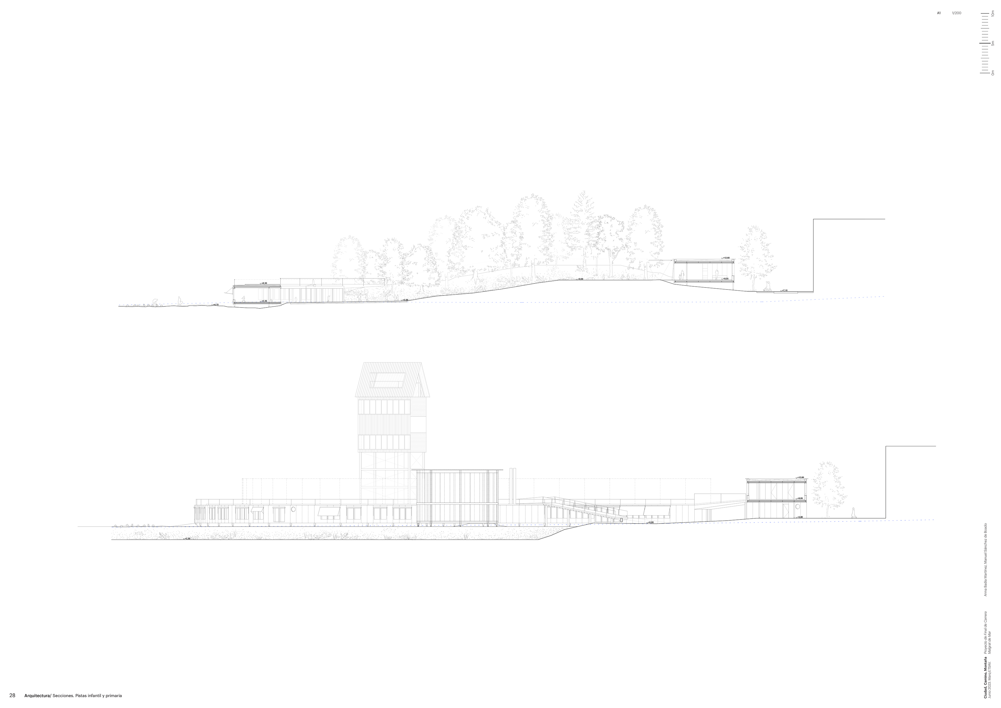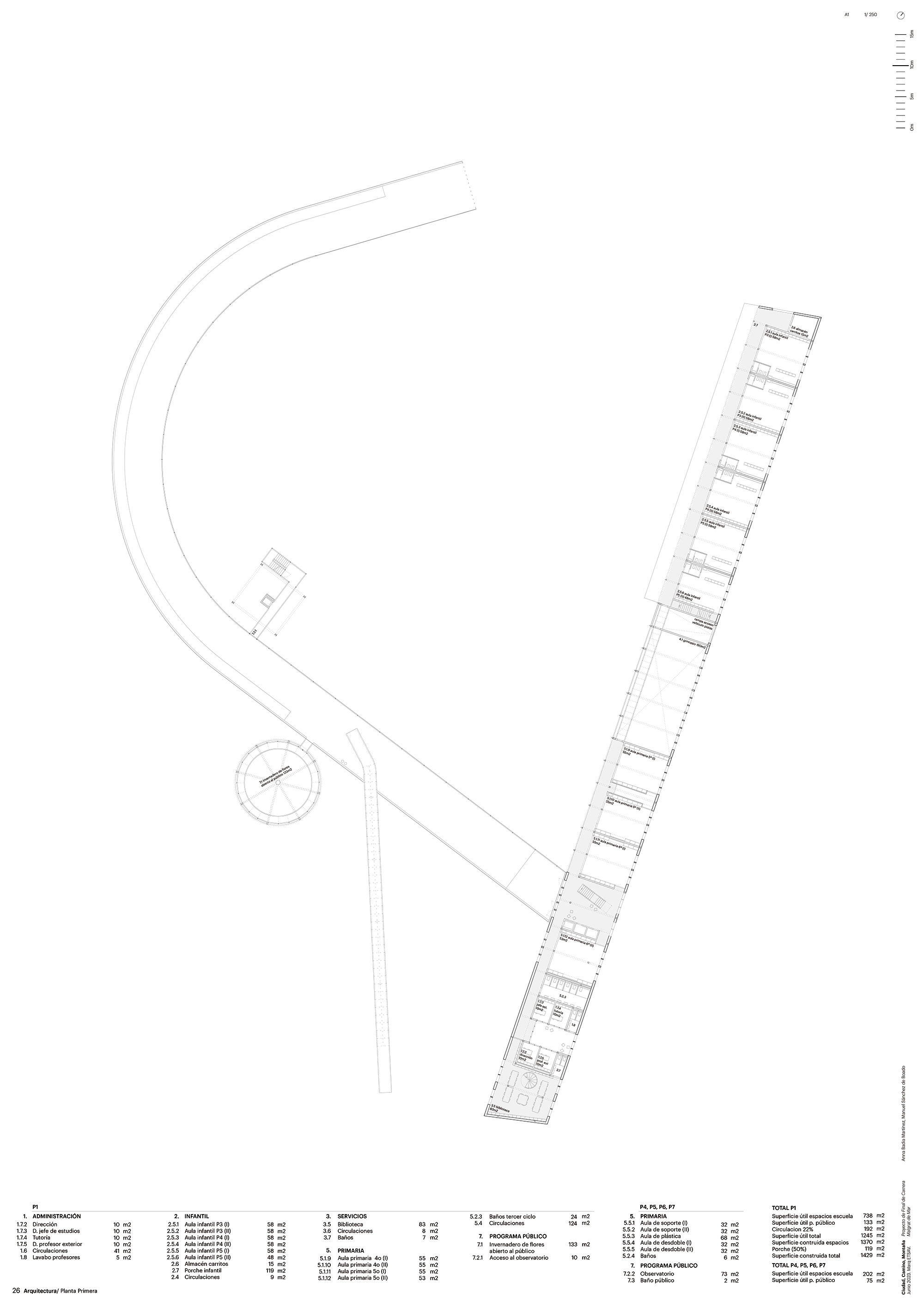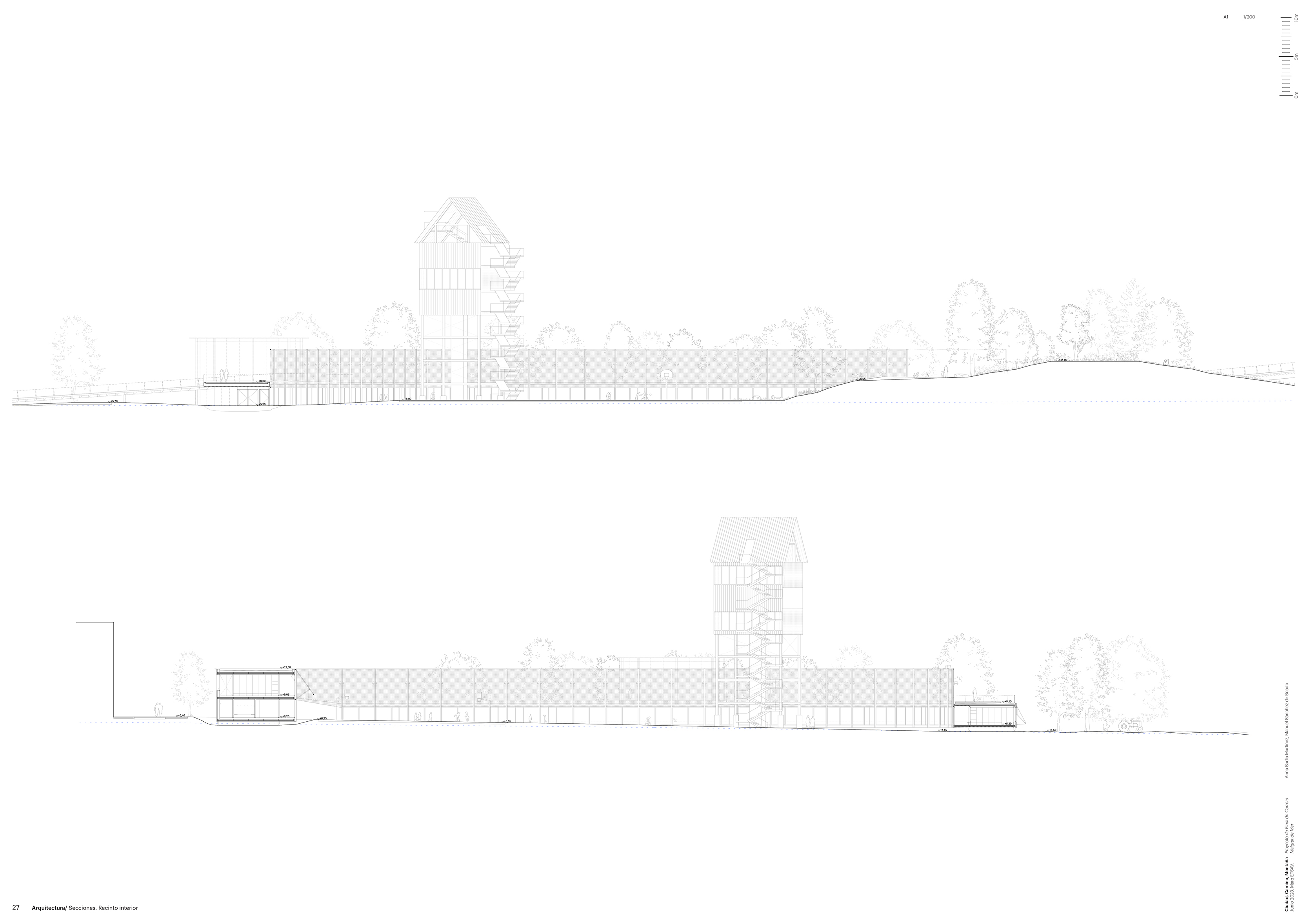 The building adapts to the floodplain where it is located and embraces the infrastructural language of Malgrat de Mar’s mining past. The new school explores the possibility of a unique pedagogical model, in which the students would be in a closer contact with their agricultural context. The project also deals with the dificulties that arise from the coexistance between the school enclosure and the public pathway, and the two external elements— the tower and the round greenhouse— play the role of mediators by serving both usages.