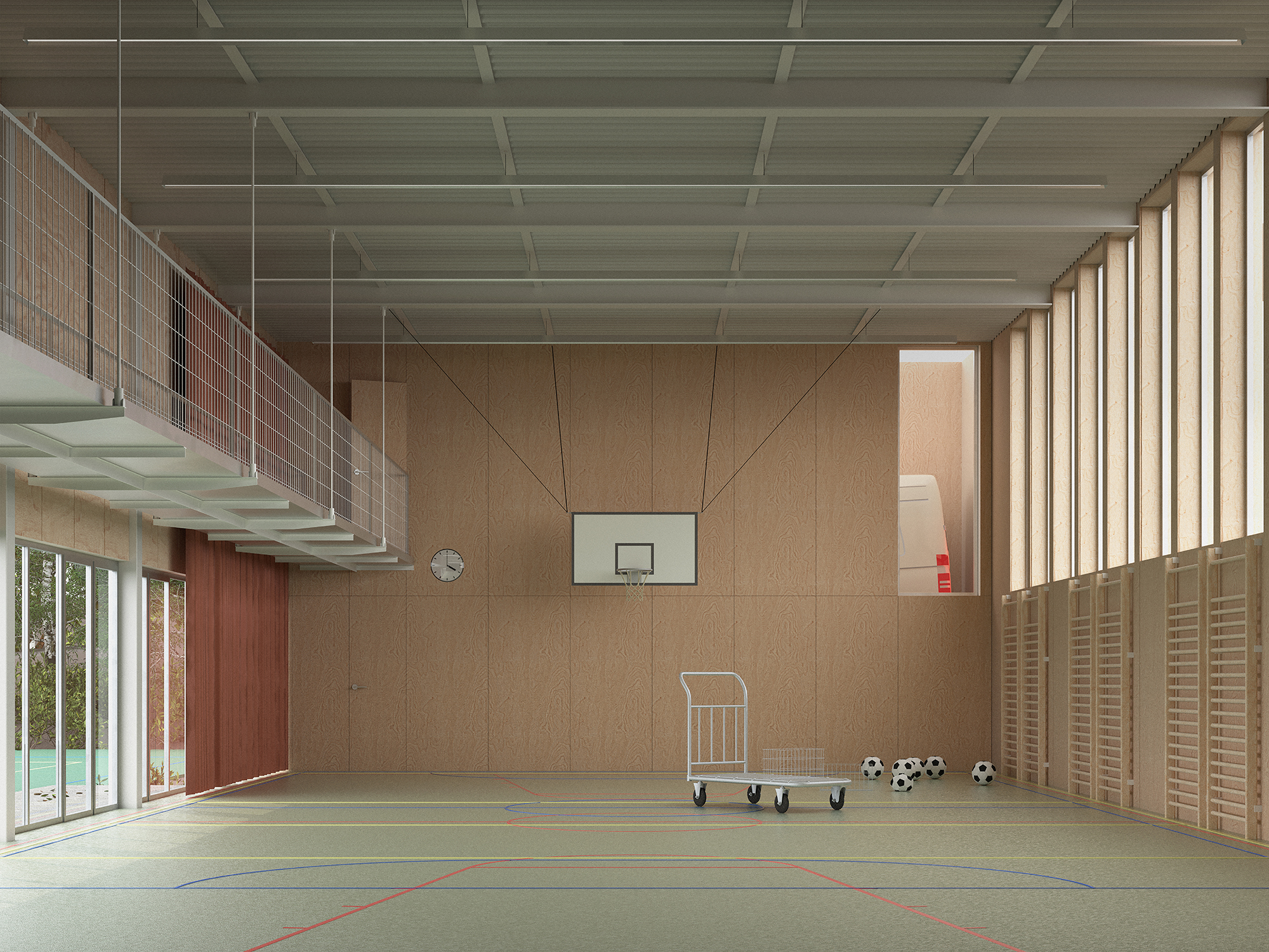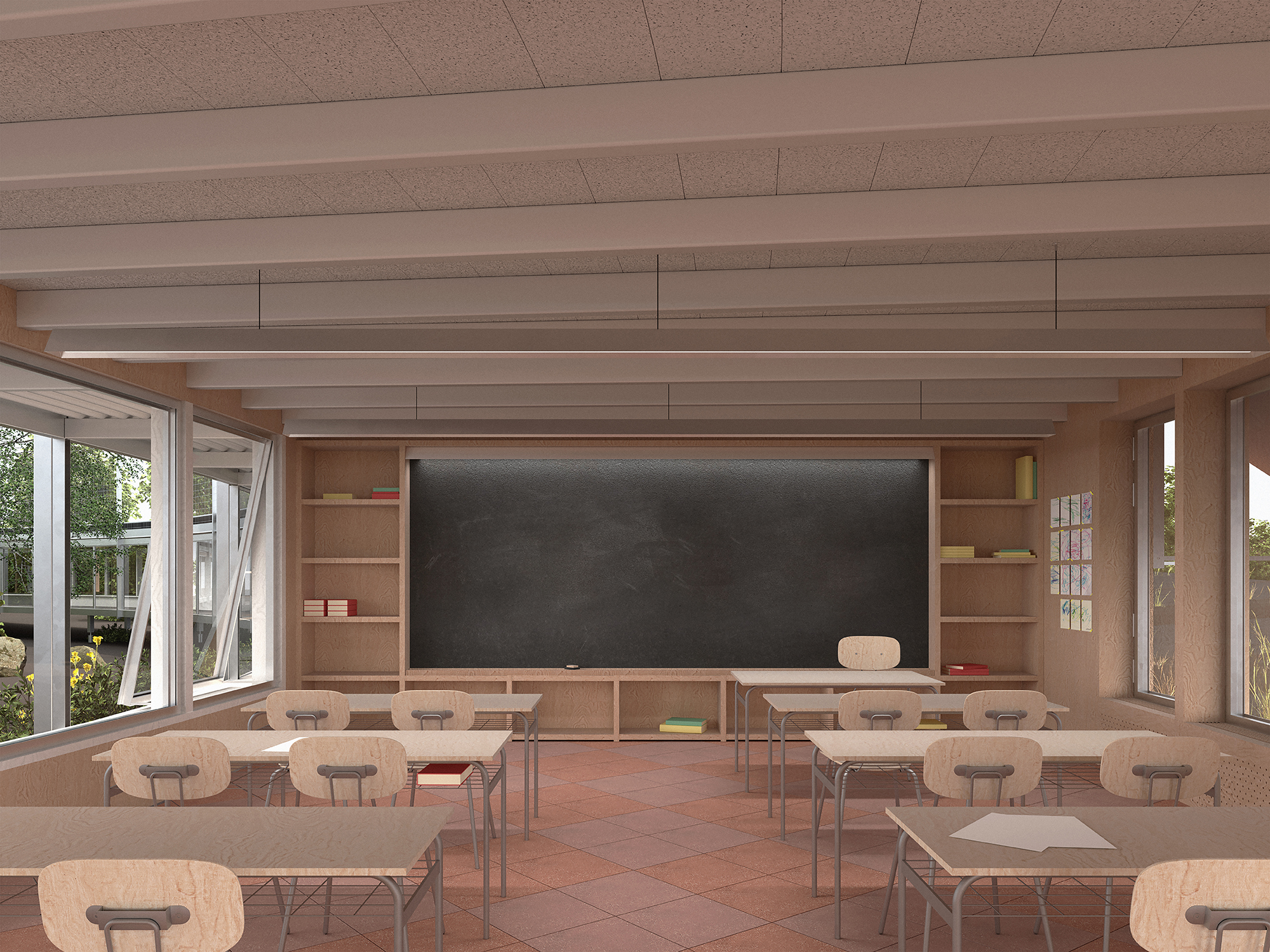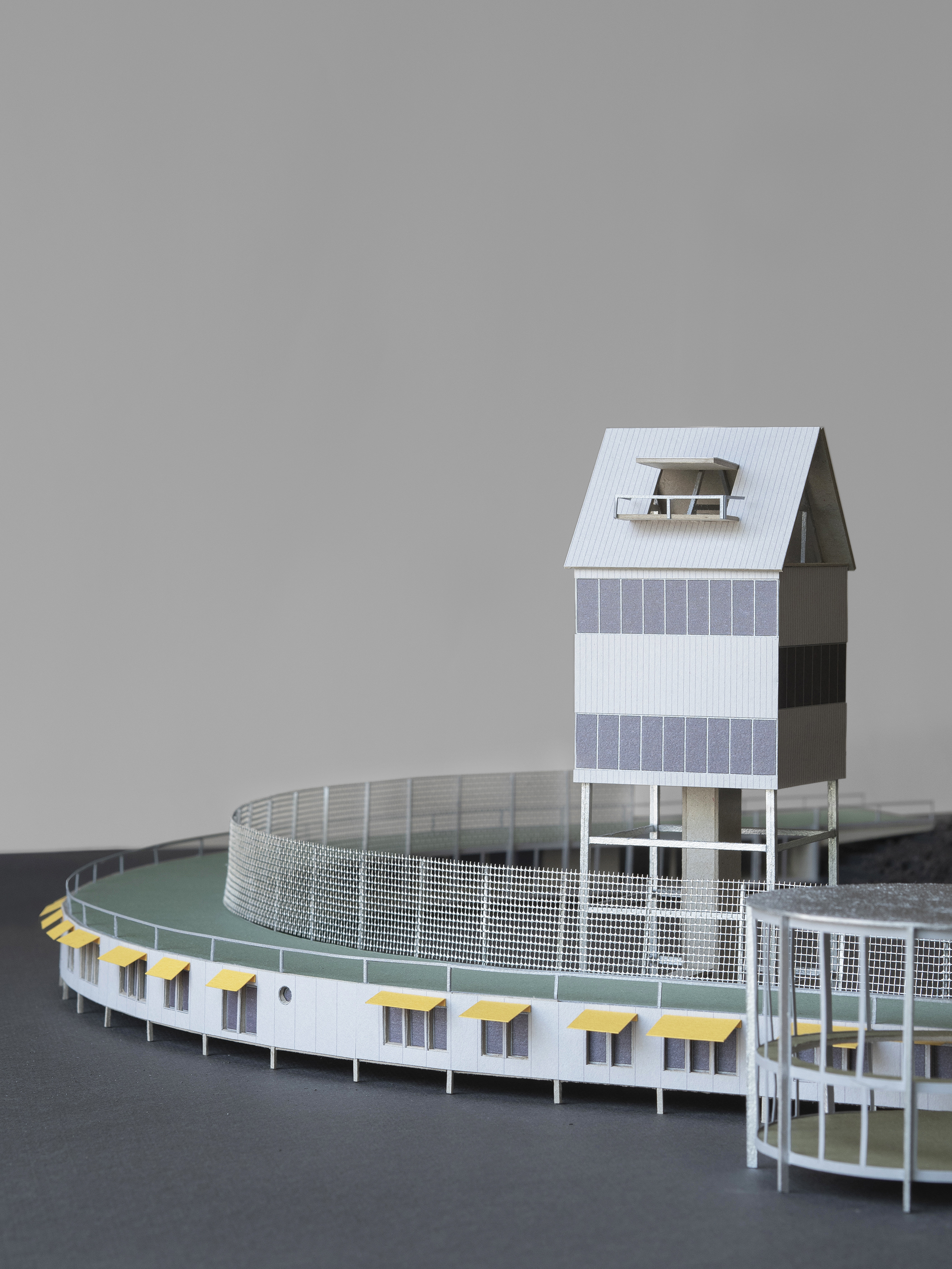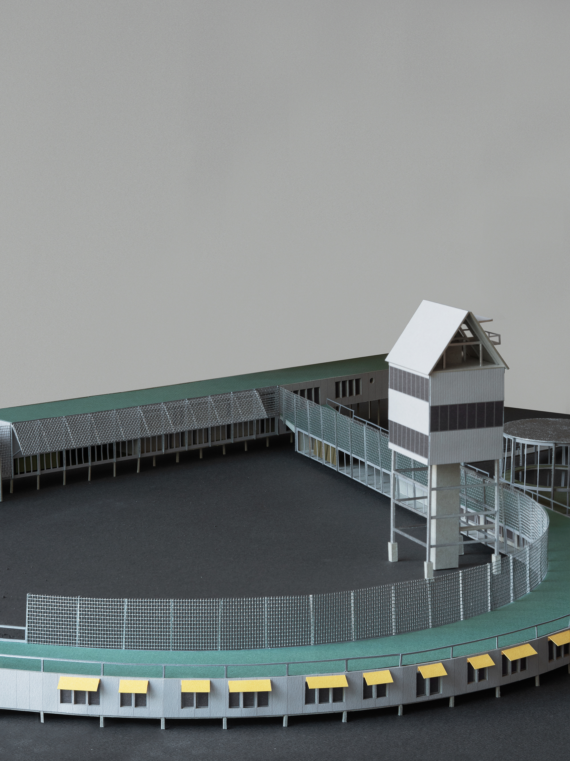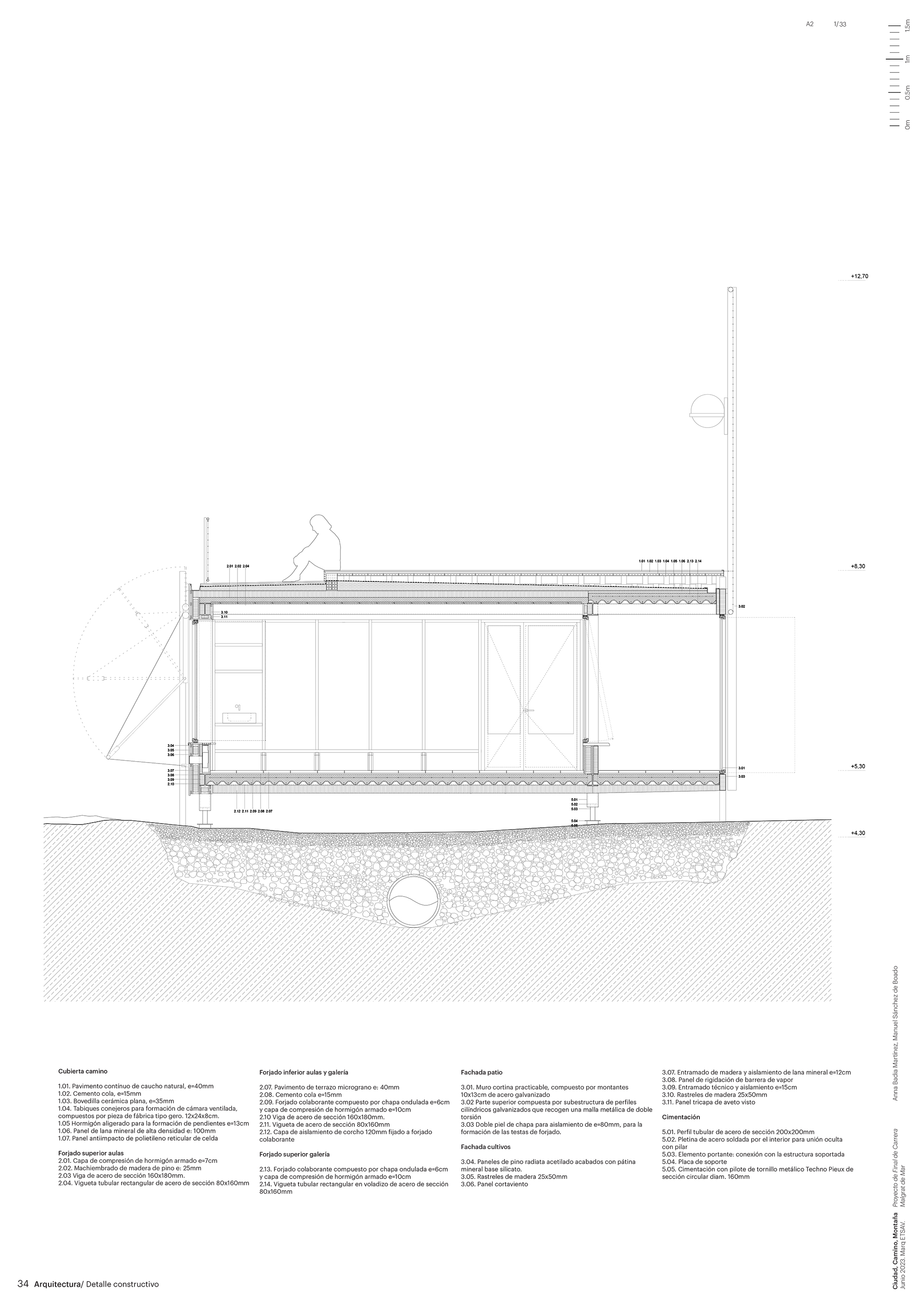 The building adapts to the floodplain where it is located and embraces the infrastructural language of Malgrat de Mar’s mining past. The new school explores the possibility of a unique pedagogical model, in which the students would be in a closer contact with their agricultural context. The project also deals with the dificulties that arise from the coexistance between the school enclosure and the public pathway, and the two external elements— the tower and the round greenhouse— play the role of mediators by serving both usages.