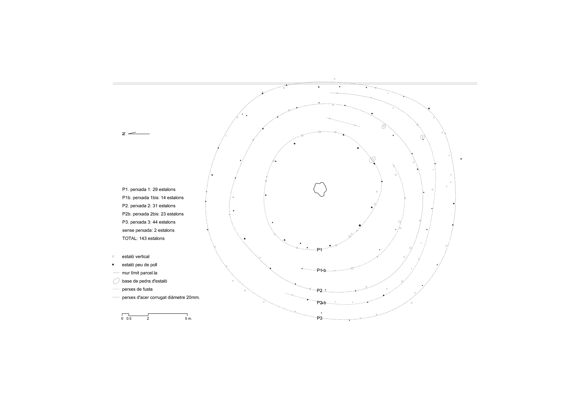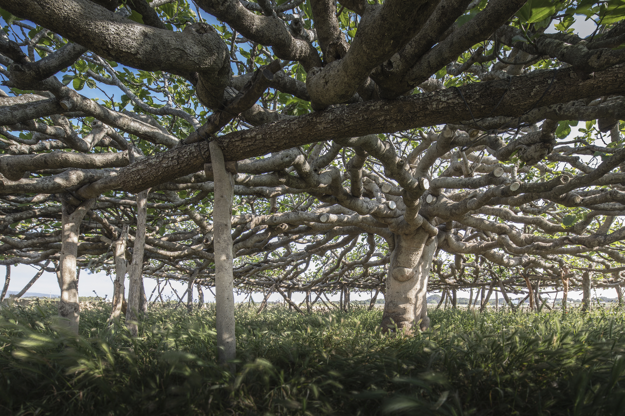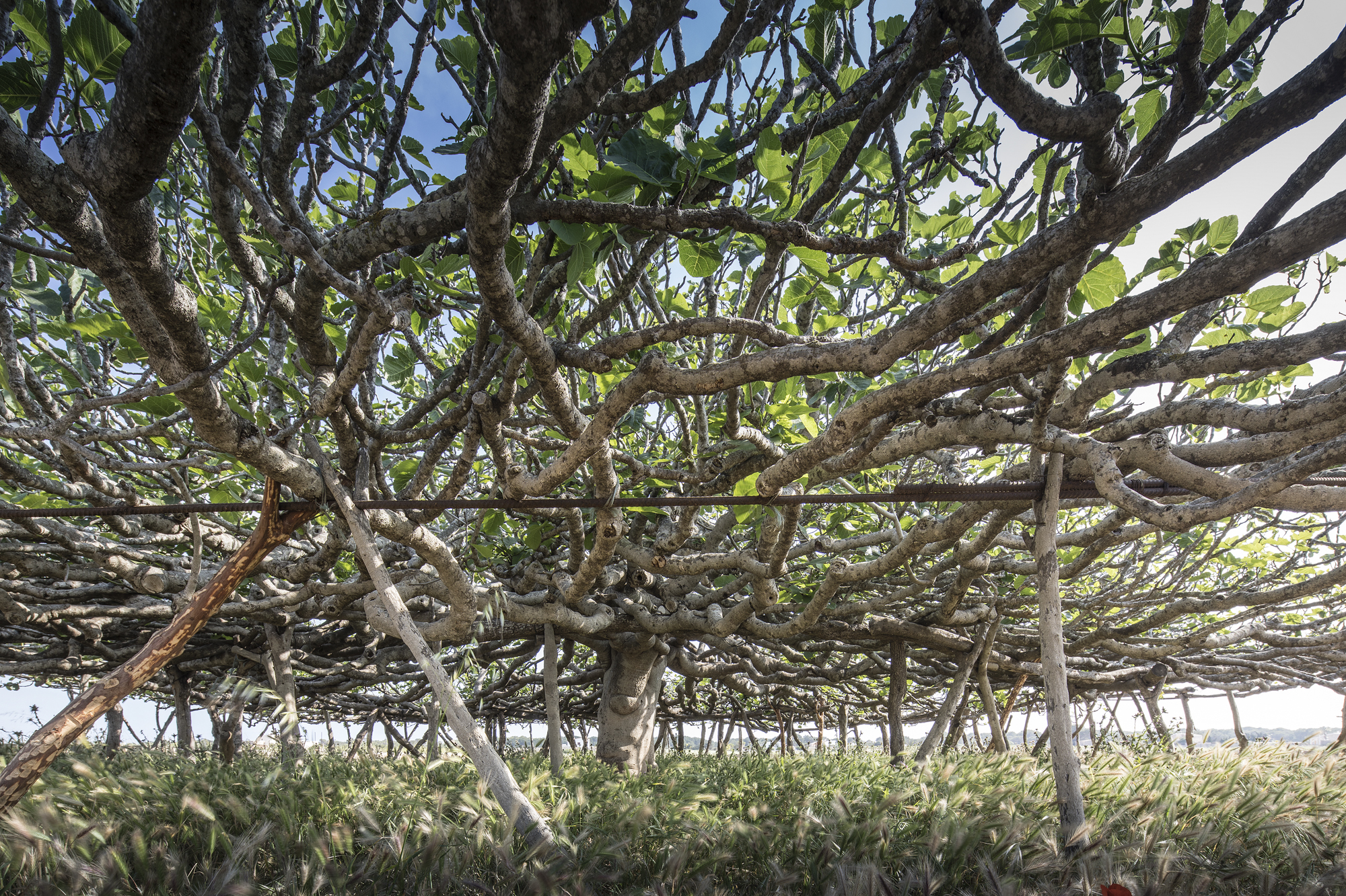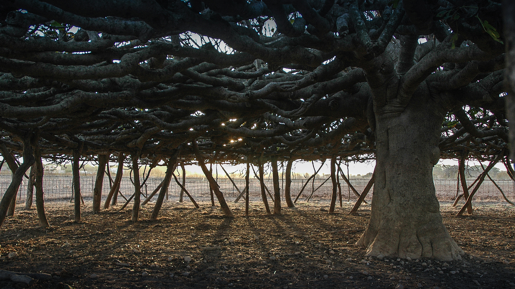 Una sala hipóstila de 143 pilares distribuidos en 5 crujías estructurales concéntricas, cuyo forjado constituido por centenares de ramas entrelazadas alcanza los 351 m2 de ocupación. Un extraordinario ejemplo de equilibrio entre naturaleza y artificio, que no sólo es un icono de gran belleza en la llanura del paisaje insular, sino que debe su configuración a varias funciones, entre las cuales destacan la reducción de la superficie vertical de exposición al viento, permitir un gran desarrollo en horizontal de la copa haciéndola transitable en su mayor parte y crear un espacio apto para recoger los frutos, proteger las ovejas y las cabras del intenso sol y evitar al mismo tiempo que éstas puedan alcanzar los higos.