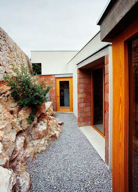 _Materialitat permeable. L’ús dels materials, d’allò existent i de la construcció com a eines fonamentals de l’expressió franca de l’arquitectura. Una arquitectura que tan sols té sentit en el moment de ser construïda i viscuda i que per tant evita la ficció dominant de la seva pròpia representació (dibuixos, imatges). Amb un gust pel retorn als materials de la terra i el foc, carregats de significat i memòria, de textures i aparells permeables que s’impregnaran al llarg del temps de la pàtina viscuda i podran envellir al mateix ritme que els seus habitants. Materials que permeten inserir-se en el seu lloc amb naturalitat, fugint de tècniques i materials impermeables i sintètics que poden importunar amb la seva insolència l’harmonia d’un entorn. Utilitzant aquests vells i nobles materials coneguts d’una manera nova8, aprofitant tot el que ara sabem. Col.locats de vegades de manera insòlita reorientant tot el seu potencial expressiu.