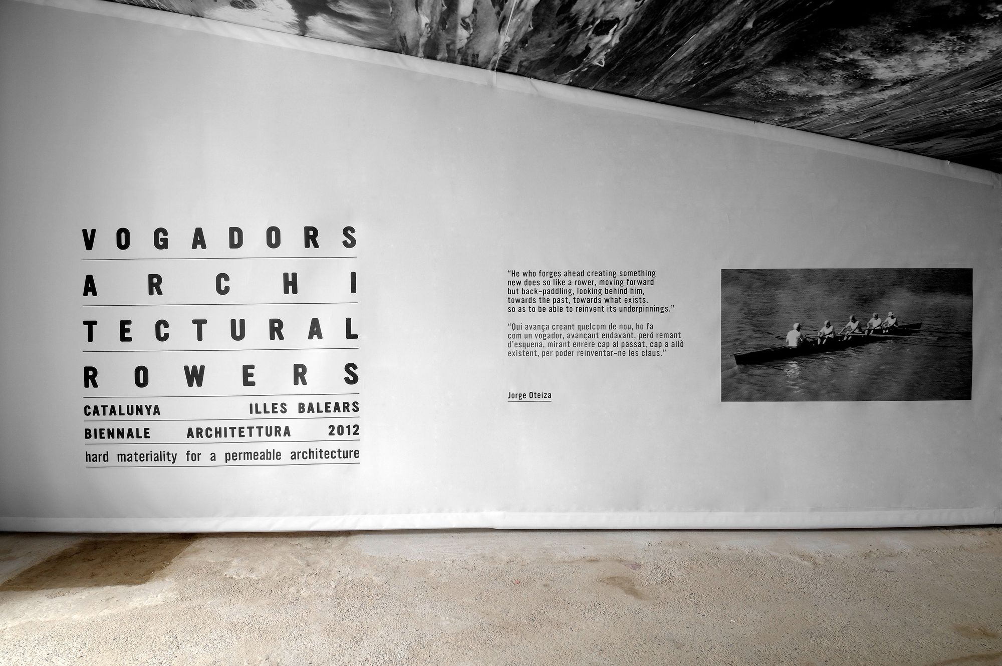 Vogadors/Architectural Rowers va ser la mostra que va inaugurar el primer Pavelló Català a la Biennal d’Arquitectura de Venècia l’any 2012. L’exposició destacava la importància d’una arquitectura austera basada en el respecte a l’entorn i als usuaris. Per desenvolupar-lo, els comissaris prenien com a punt de partida una frase de Jorge Oteiza que diu: “Qui avança creant quelcom nou, ho fa com un vogador, avançant endavant, però remant d’esquenes, mirant enrere cap al passat, cap a allò existent, per poder reinventar les seves claus”. – Oteiza