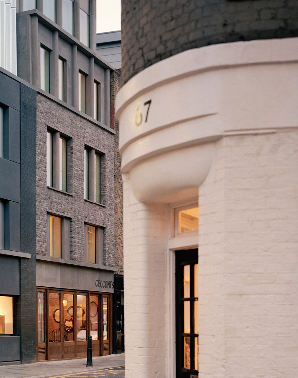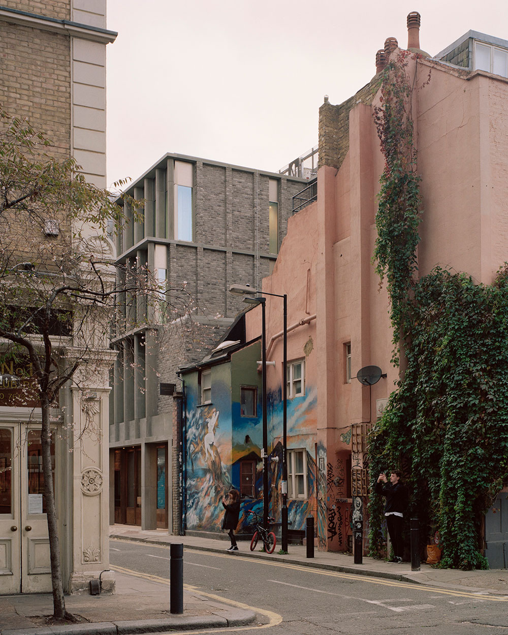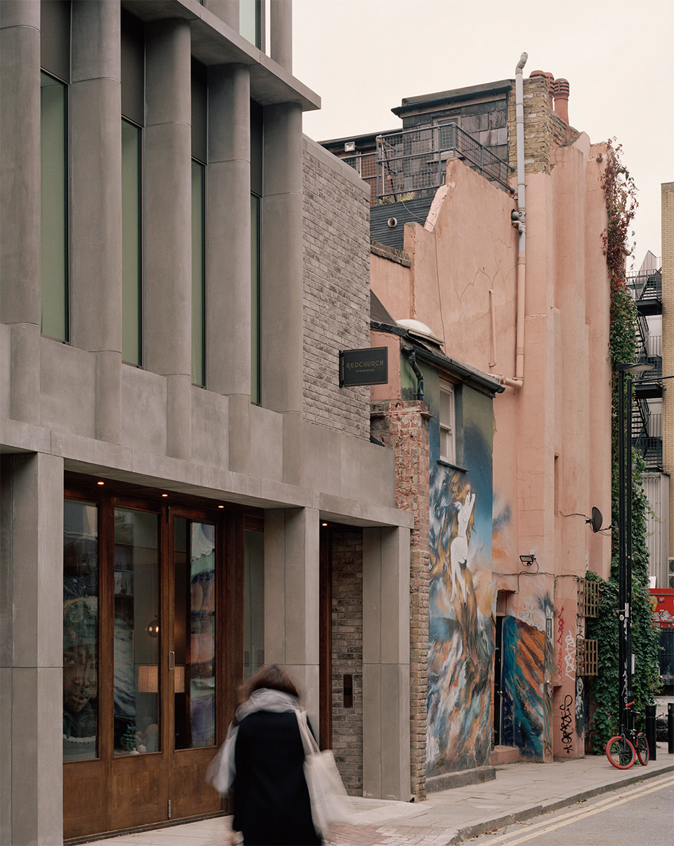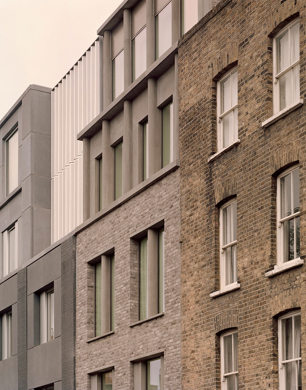 That the two new facades incorporate similar elements in a similar material palette (albeit articulated in a slightly different way), ensures that the building is read as a coherent entity when walking around the urban block. That the new scheme shares a language, colour palette and contextual sensibility with Redchurch Corner, ensures that the two schemes are read as parts of the same whole.