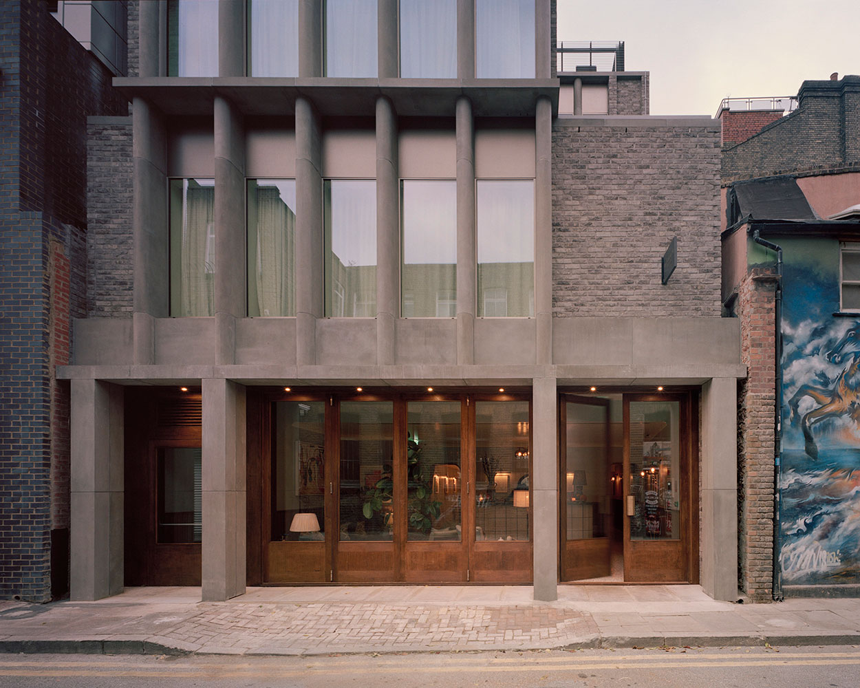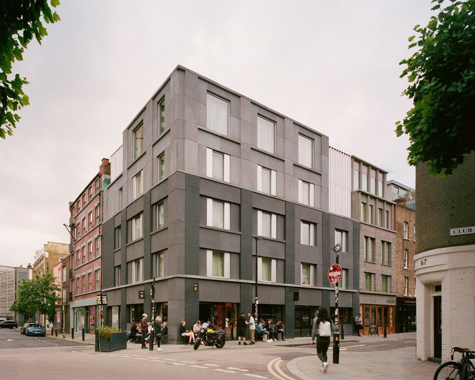 Redchurch Townhouse is a hotel in Shoreditch, London, completed in two phases. The first of these was Redchurch Corner, on the completion of which our client purchased the adjacent building at 56 Redchurch Street and commissioned 31/44 to develop proposals for a significant extension to their hotel. The existing dilapidated single-storey building was demolished and replaced by a new building with two basements and four/five storeys above ground, including a restaurant, bar and an additional 21 hotel rooms.