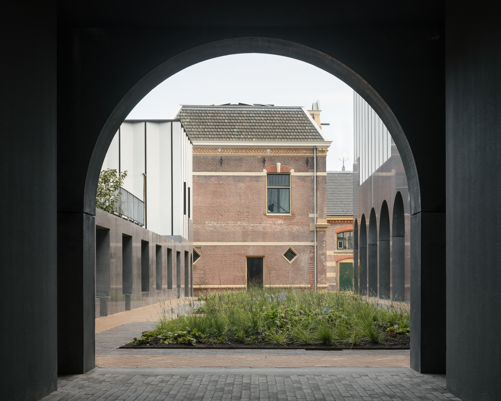 Our plan for the Kunstwerf does not focus on the theatre, but on the public sphere. The space at the ‘back’ of the building has been made as large as possible, so that it can be used as a publicly accessible courtyard garden. In the absence of a great hall, this hortus conclusus is the meeting point. The arcades serve as theatre corridors. Seats incorporated in the garden walls refer to the boxes a great hall would have and in the middle of the garden, designed by Piet Oudolf, there is an intimate amphitheatre where one can speak publicly.