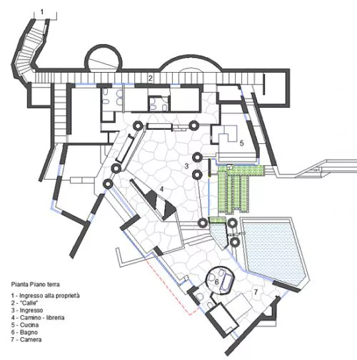 In response to these strict conditions, the architect decided to bury most of the house on the ground by reducing the scale of the building in the environment to a minimum. This operation not only managed to minimize the visual impact of the town but gave the house an excellent relationship with the outside on all sides.