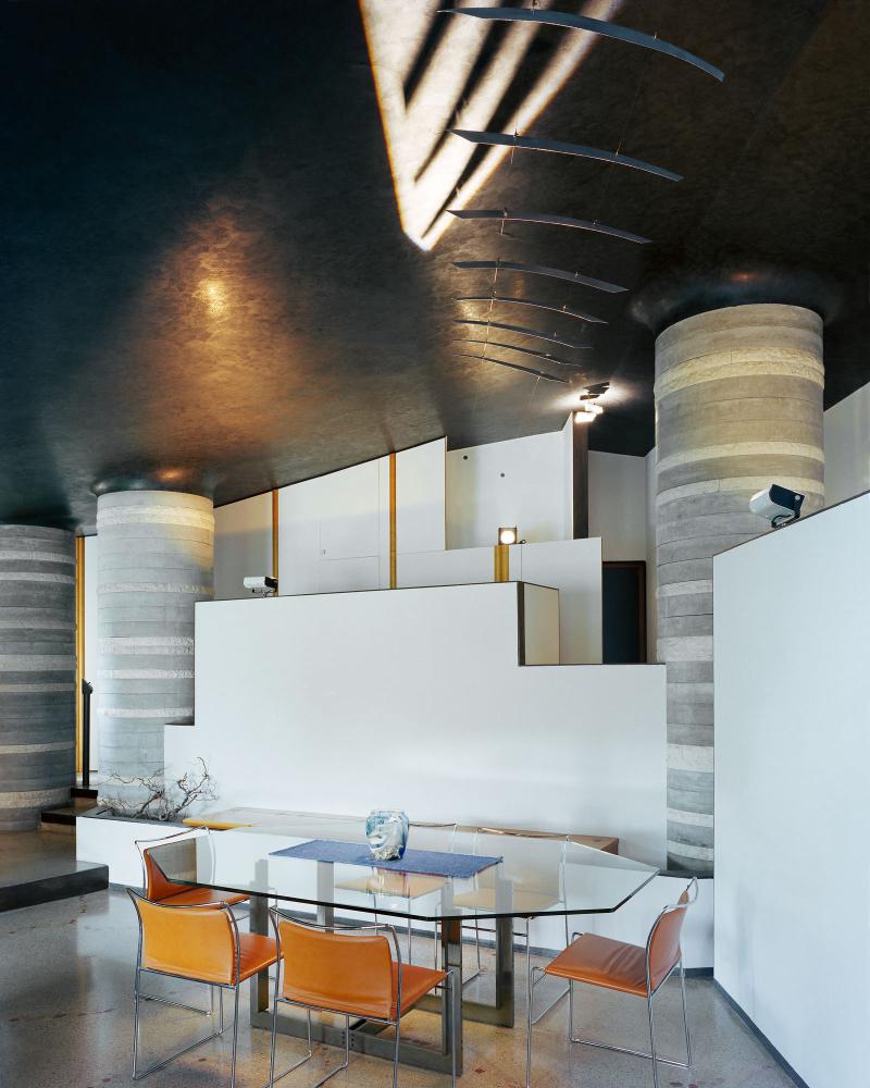 The opposite side of the villa is defined by a “Calleta” a deep incision in the ground which is reminiscent of the streets around the neighboring Venice. Adjacent rooms, although located under earth, receive natural light through this incision.