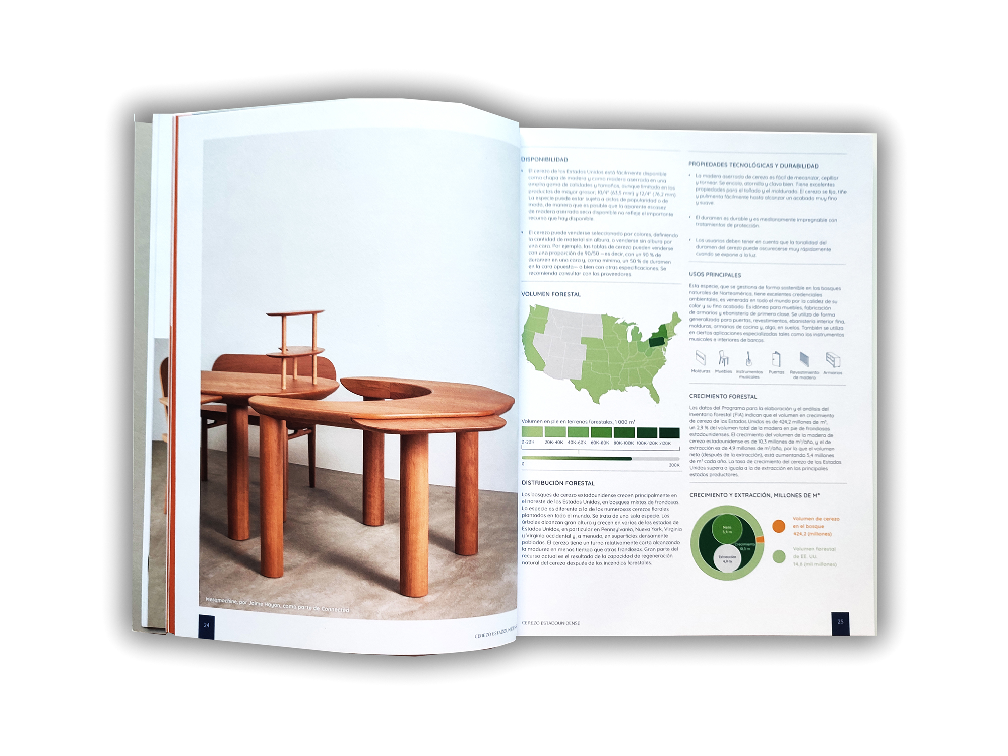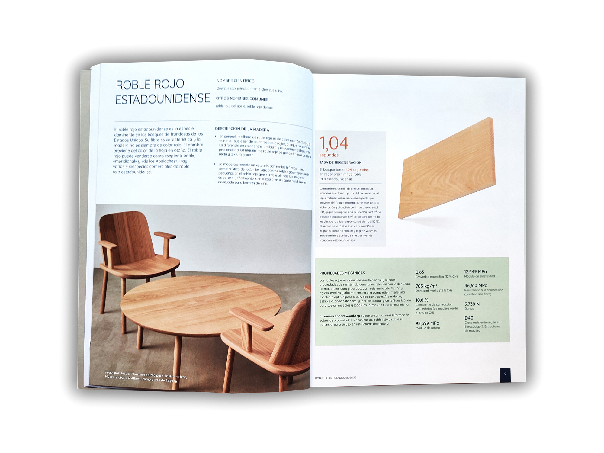 La guía enfatiza la necesidad de usar todas las variedades de madera que proporcionan los bosques para hacer un uso más sostenible del recurso; y también ilustra especies menos utilizadas como el olmo o el tilo. Por último, la publicación analiza la modificación térmica de las maderas duras de EE.UU. que amplía su uso, transformándolas en productos de madera para la ingeniería.
