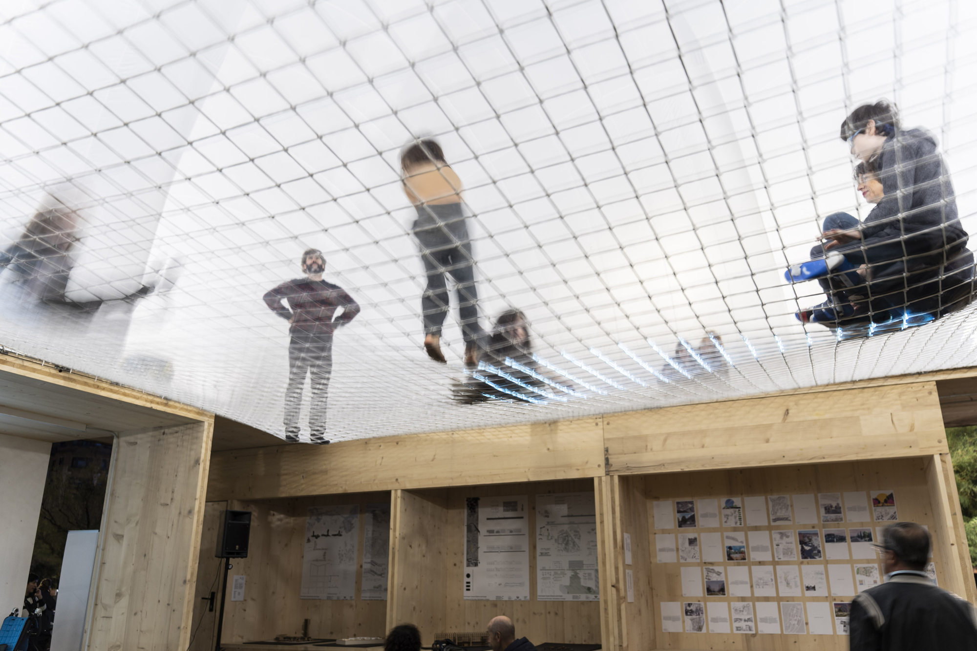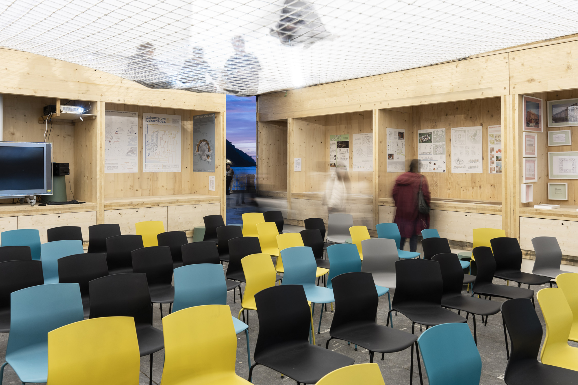 ARGI es un pabellón itinerante que se ha instalado en la Plaza de Alderdi Eder en Donostia-San Sebastián, Gipuzkoa, durante la Bienal Internacional de Arquitectura MUGAK.