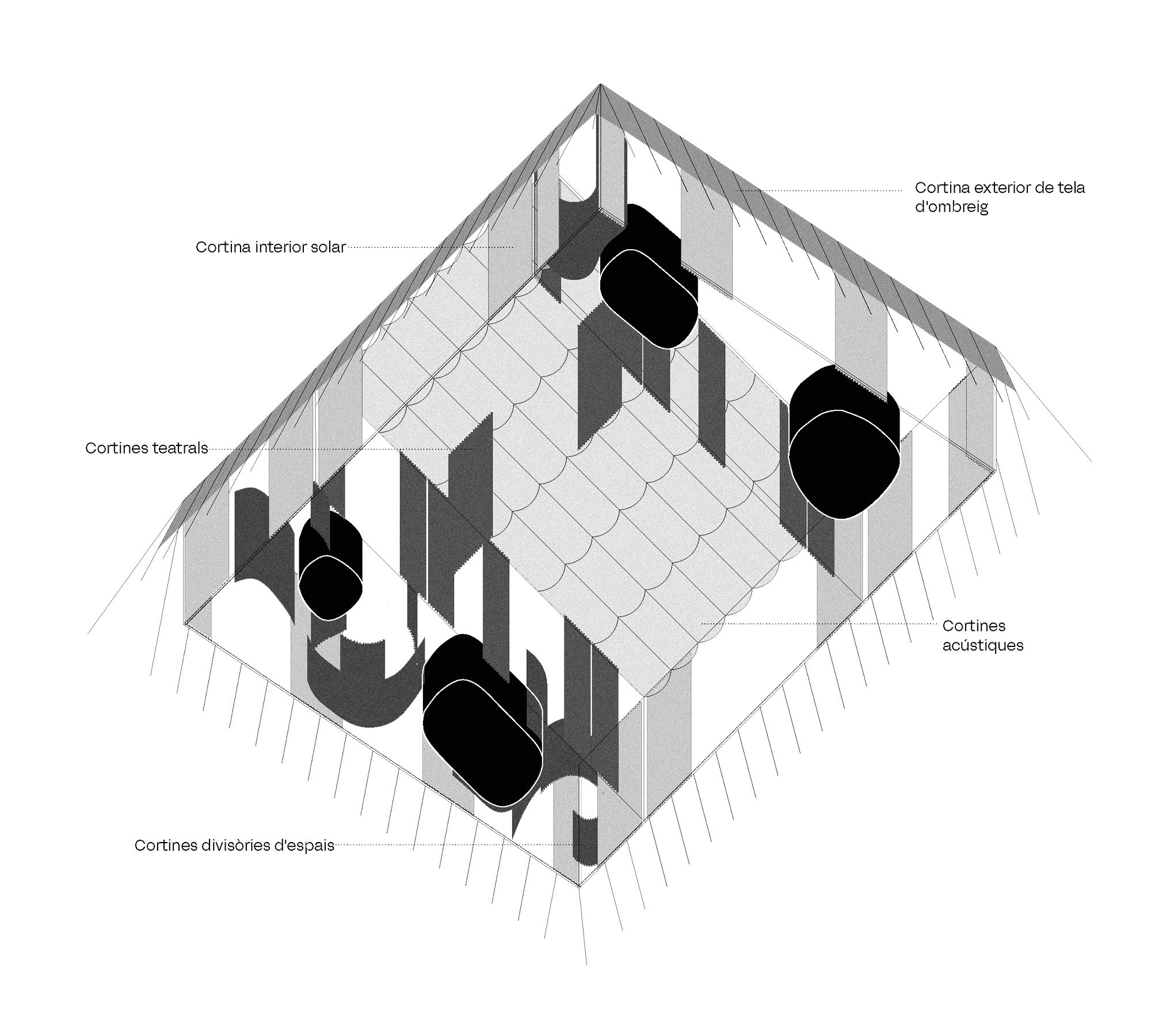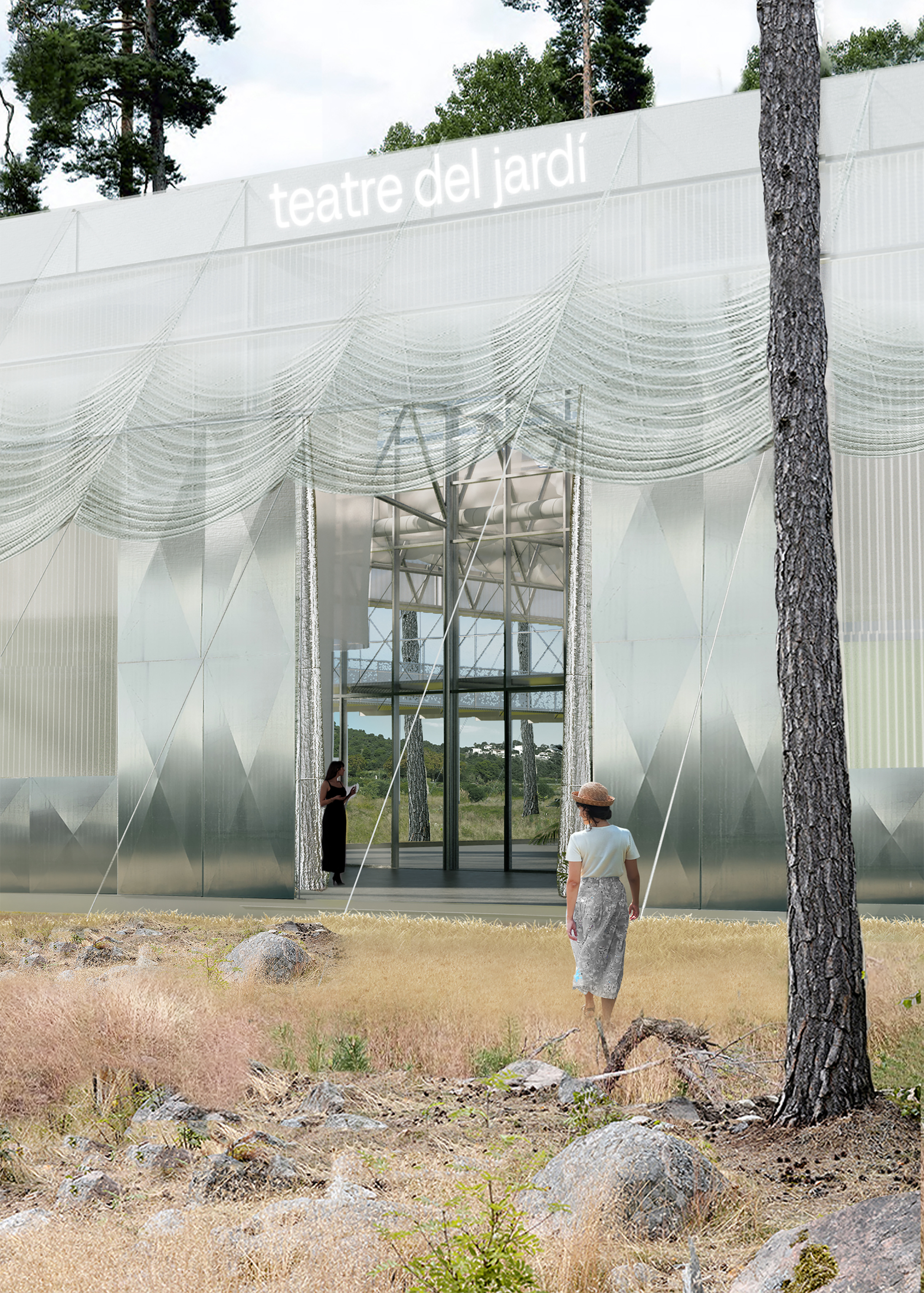 In Malgrat de Mar, a geographical location with great potential but also highly vulnerable to environmental changes,a project is planned in a strategic location that acts as a boundary between the mountain and the city. The proposal seeks to be a transition point between these two, consolidating an existing garden with unexplored potential. Building a new perimeter offers opportunities to activate the area and connect the city to the forest, while preserving the identity of the site and generating new activities. The creation of a multi-purpose building aimed mainly at performing and cultural activities is planned. This building adopts an architectural language that merges the three defining elements: the agrarian, cultural and scenic worlds.