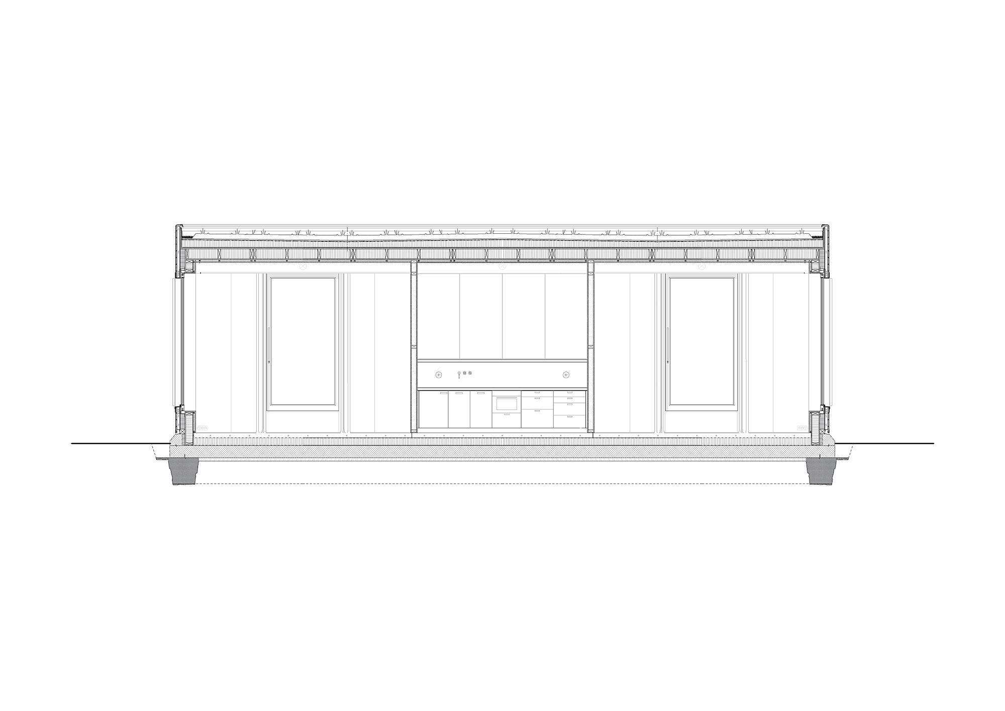 About 14 meters long and 6 meters wide, the building subtly plays with conventions drawing from a vocabulary of classical forms and proportions while confronting them with trivial but enhanced materials.