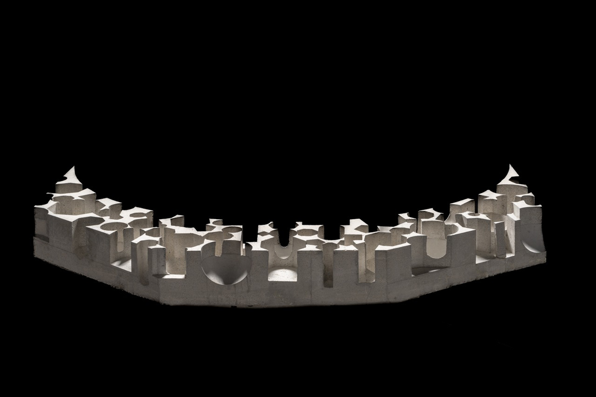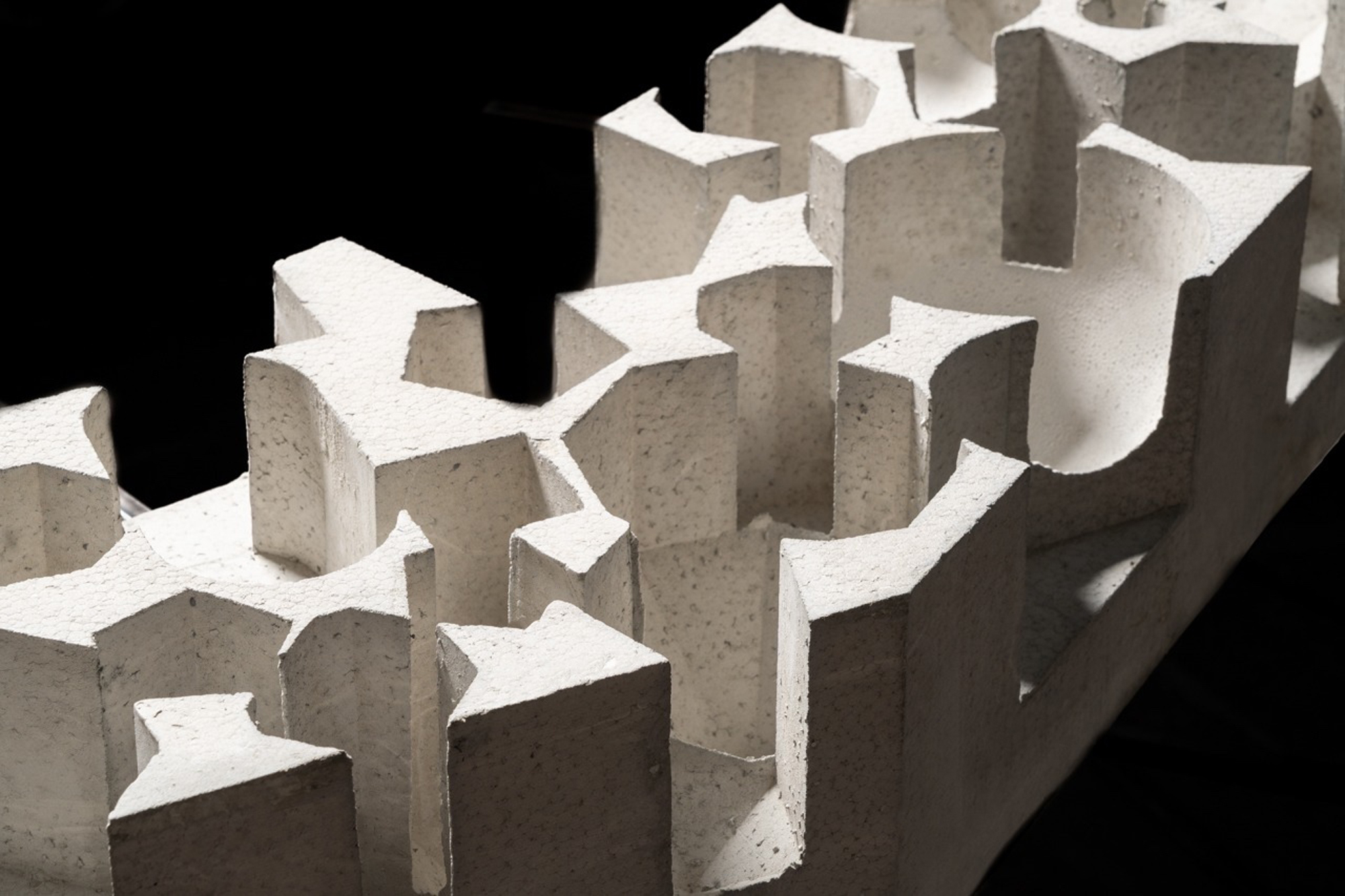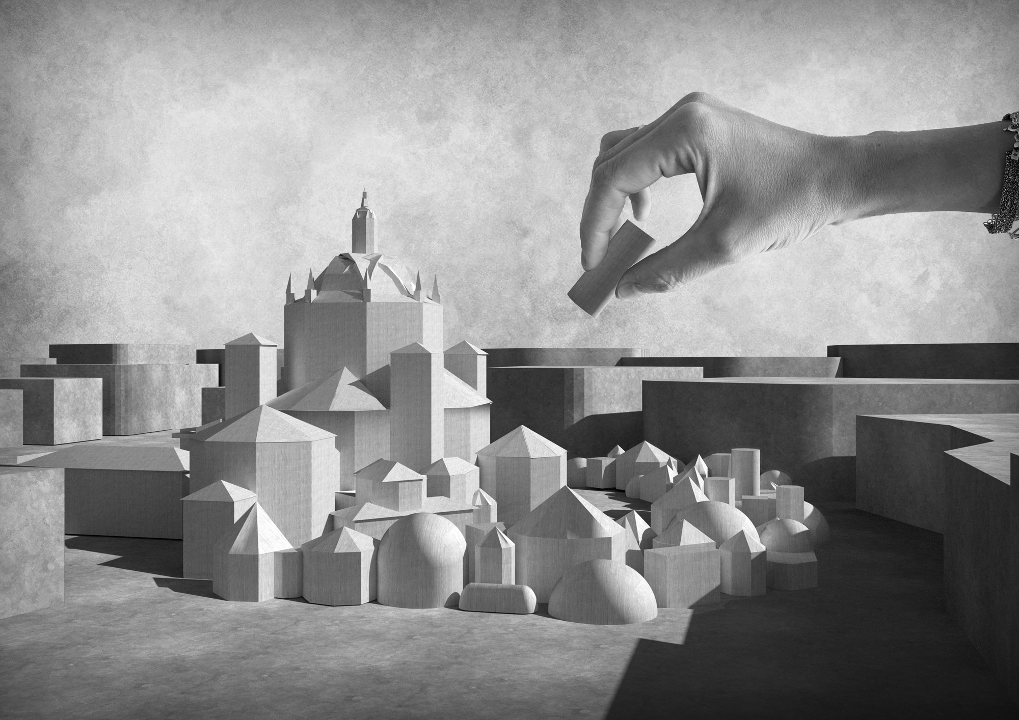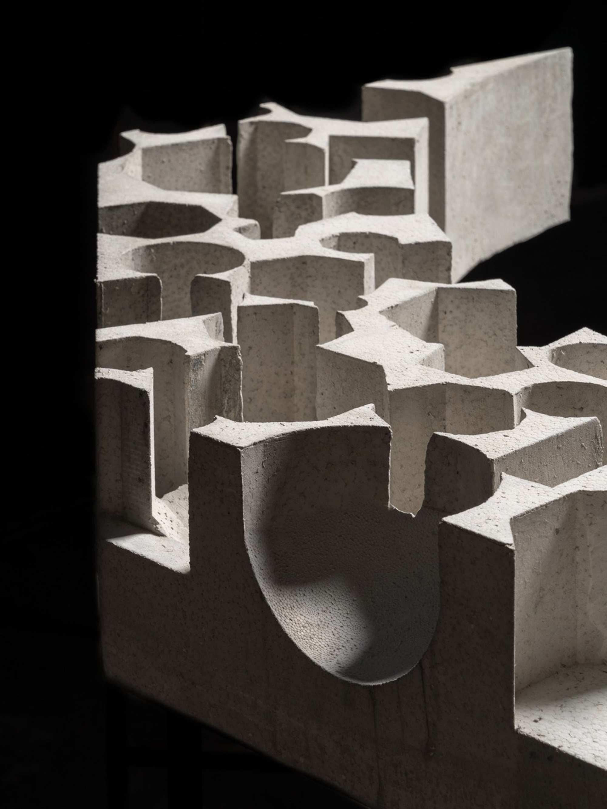 The dialogue with the historic monument is based on a common geometric alphabet: the internal spatialities of the new intervention take up the forms of the apses and side chapels of the church and are the result of a process of addition of hexagonal, cubic, spherical, and pyramidal voids, which re-proposes the fifteenth-century forms in a contemporary key.