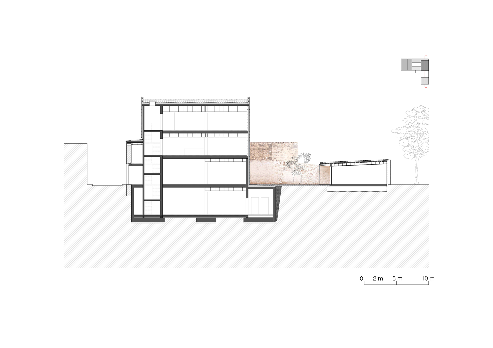 The place, the history, the remains, the scale, the classic typology of houses closed to the outside and open onto courtyards… all of this obviously forms the base for the project.