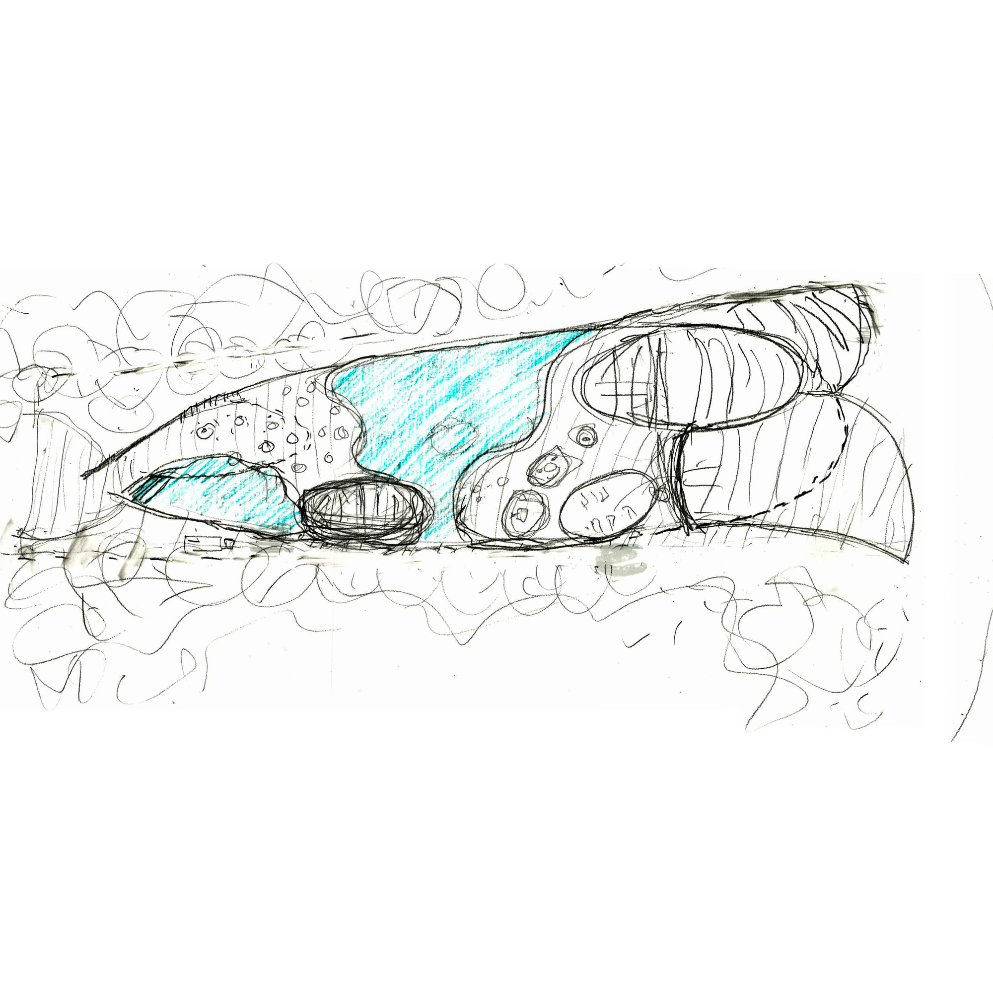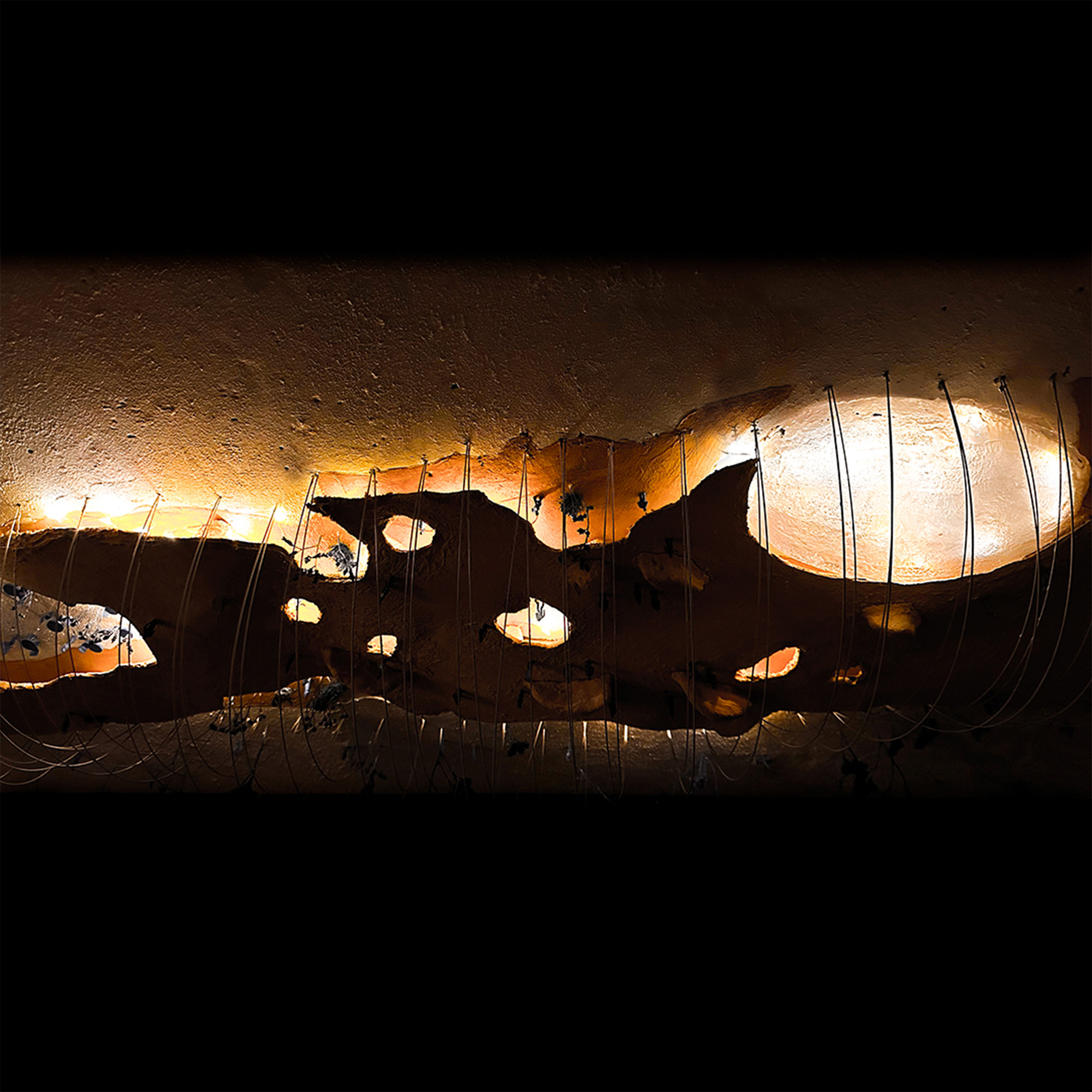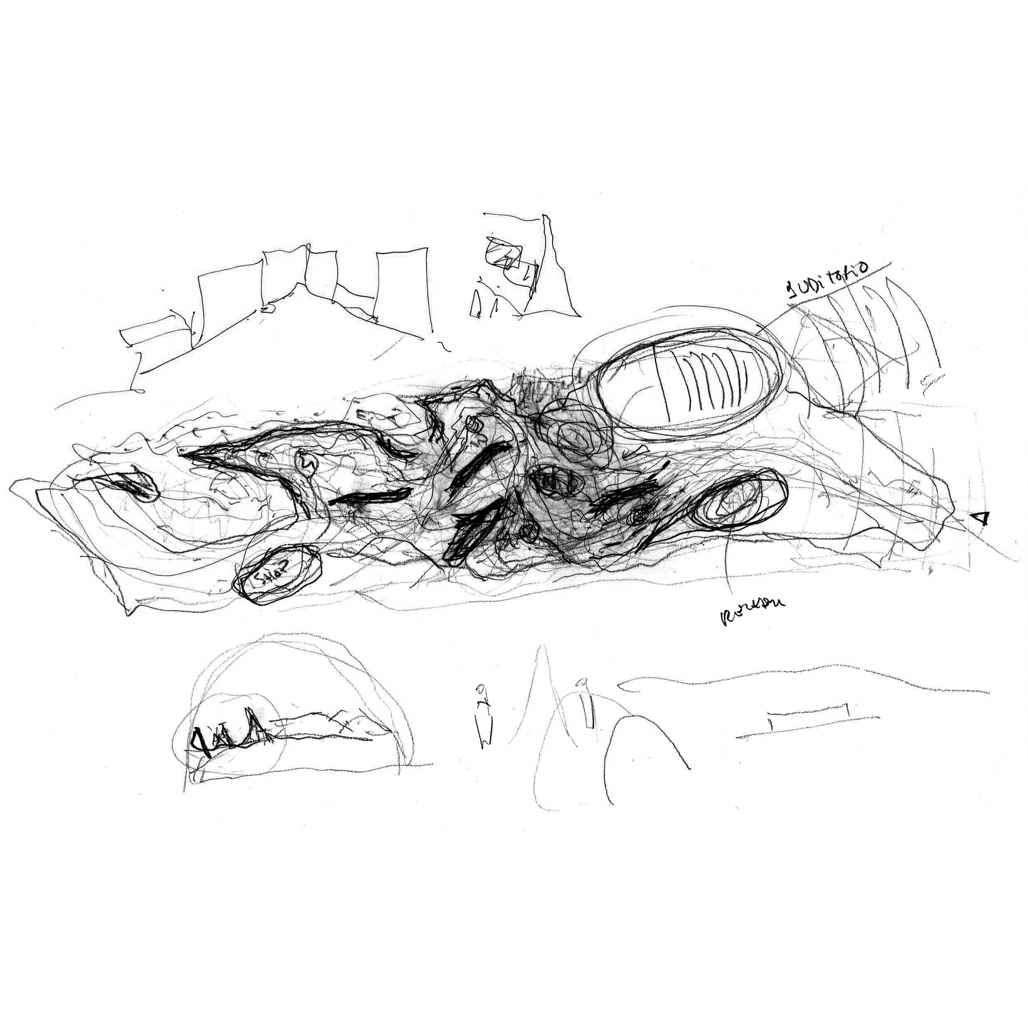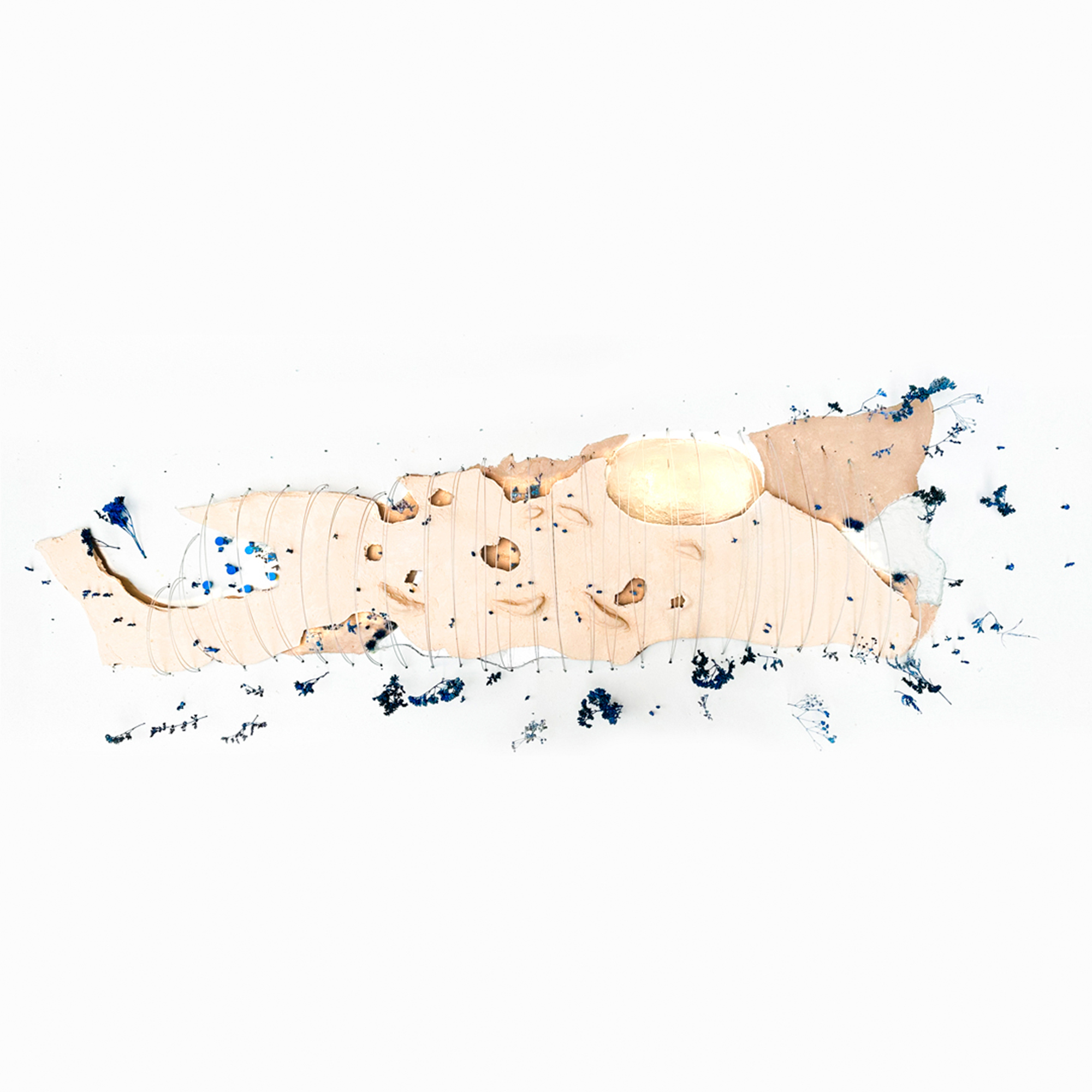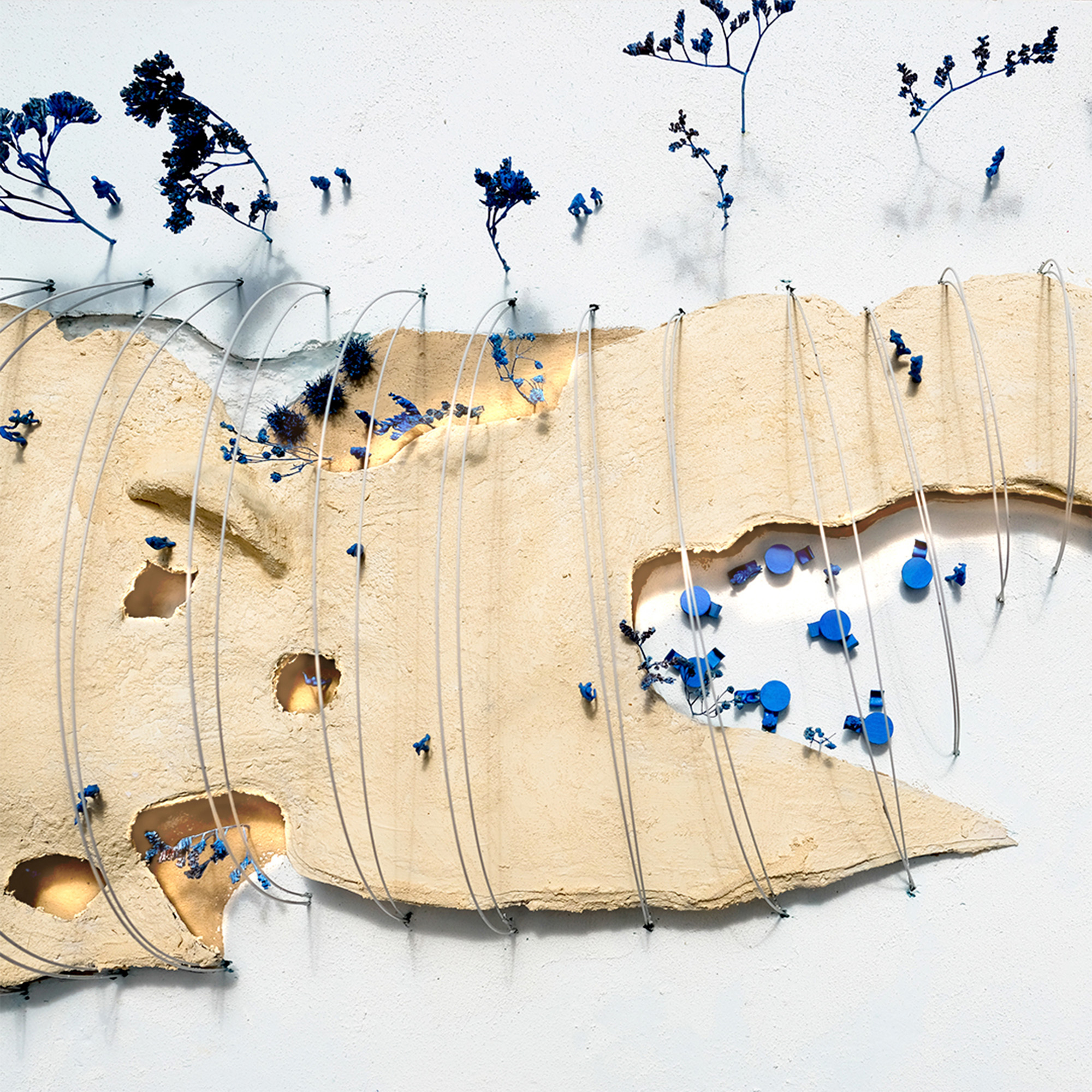 Así pues, más que un pabellón, o un objeto arquitectónico, la propuesta resulta prácticamente paisaje en su totalidad: dunas, lomas, arenales, rocas, peñascos, grutas, acantilados y arrecifes que emergen entre los distintos mares, y que se entremezclan con la exposición “El horizonte azul” que guía todo el recorrido. La geología desplegada, a veces escarpada, abrupta y sombría, pero también blanda, sinuosa y radiante, se presenta como continente y contenido a la vez, a fin de que el visitante se deje llevar por las corrientes de una exposición fluida y resonante, que destaca y evidencia la fecundidad de las relaciones que se establecieron en el medio marino a lo largo de los siglos.