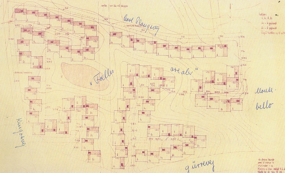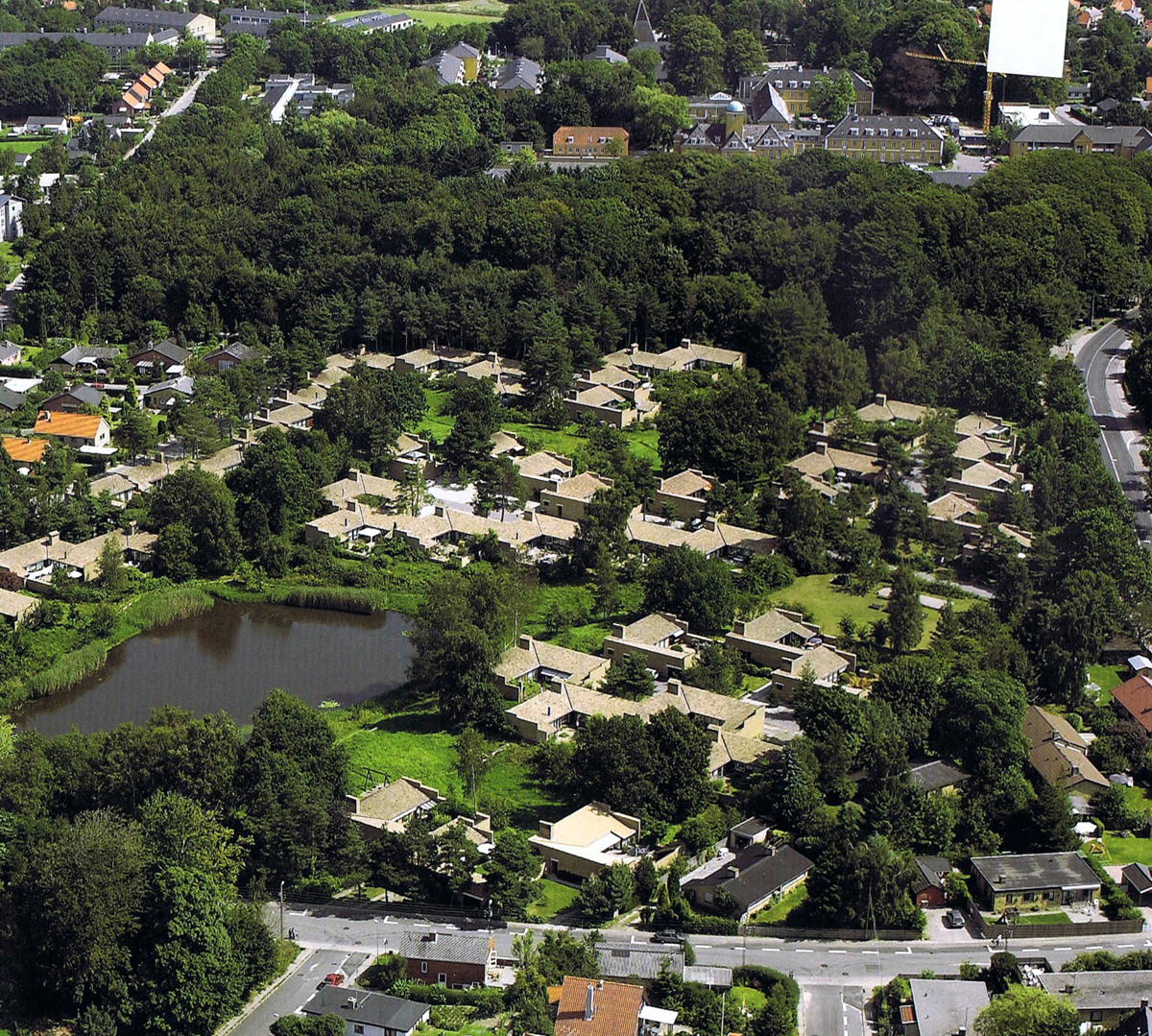 Las Kingo Houses se comienzan en 1957 en los alrededores de la ciudad danesa de Helsingor, y fueron proyectadas para trabajadores de bajos ingresos y maestros según una normativa favorable que les beneficiaba y protegía. Jørn Utzon desarrolla dos casas tipo básicas a partir de un cuadrado de 15 m de lado, aunque posteriormente las variaciones aumentan considerablemente. Las casas se disponen en hileras continuas sobre un terreno ligeramente ondulado siguiendo la topografía y la orientación más idónea. El arquitecto buscó emular la variedad orgánica de la naturaleza observada por Aalto, para quien las unidades mínimas en la naturaleza, las células, dan lugar a millones de conexiones flexibles sin ningún tipo de esquematismo y a una enorme riqueza y una perpetua variación de formas de crecimiento orgánico.
