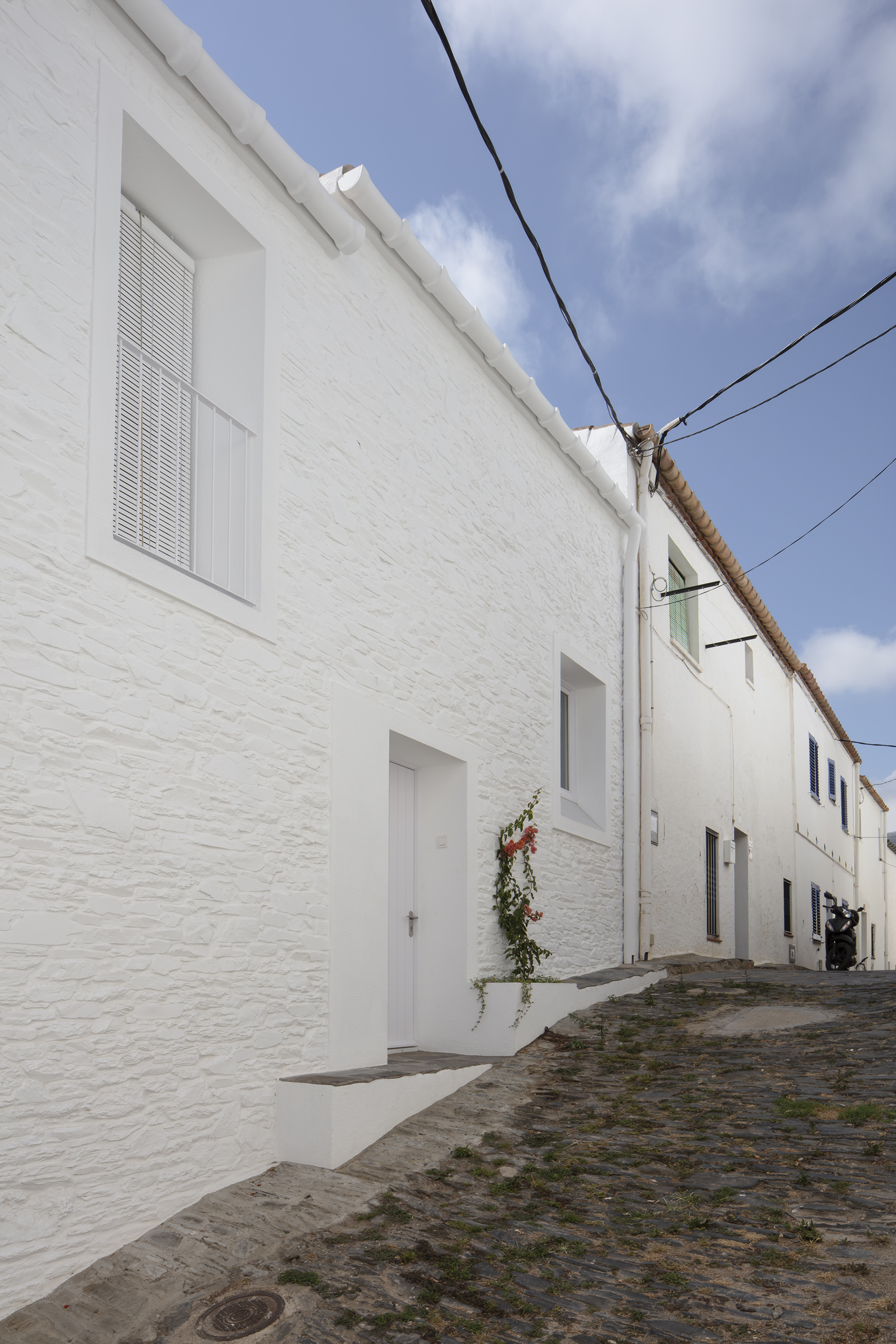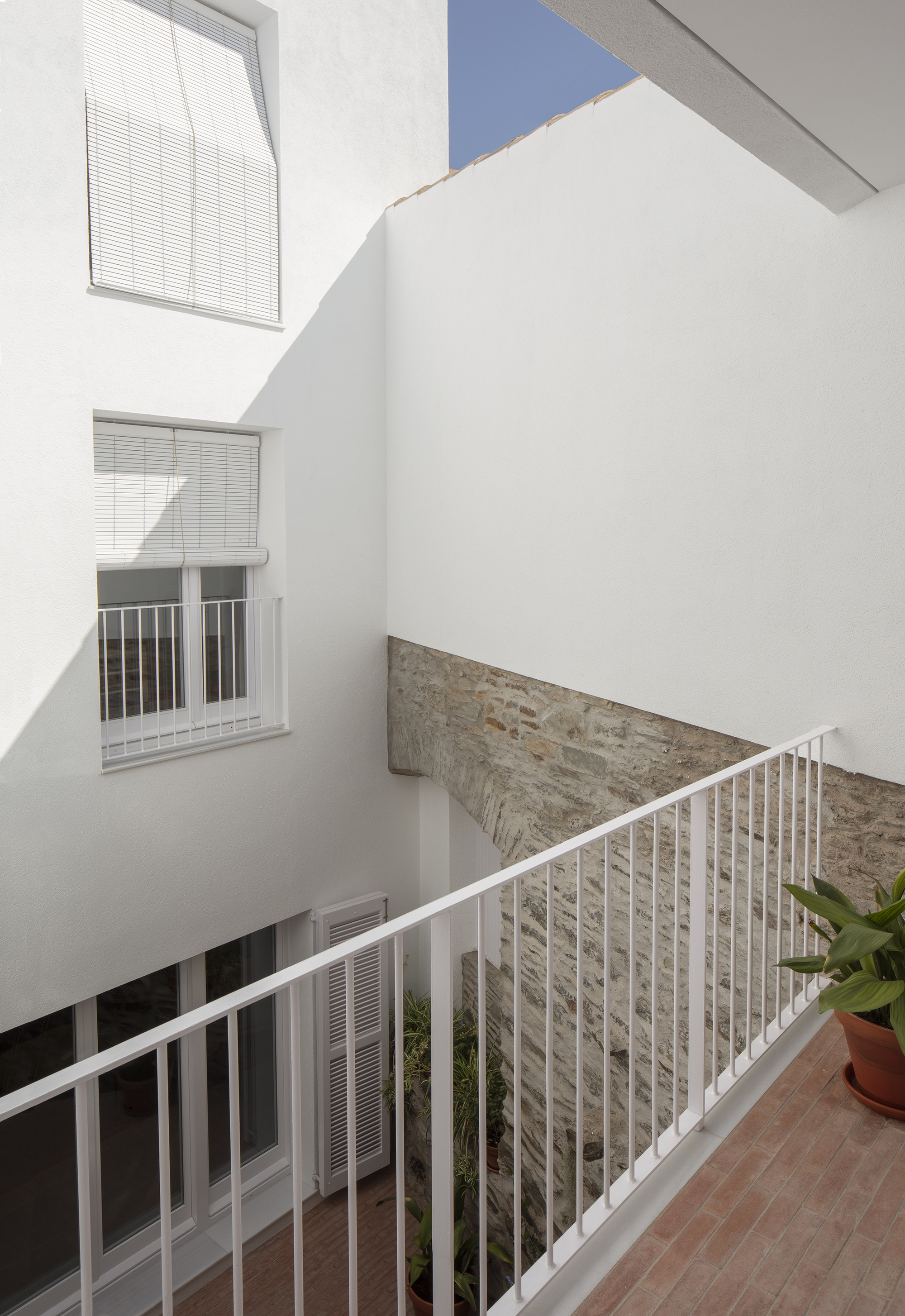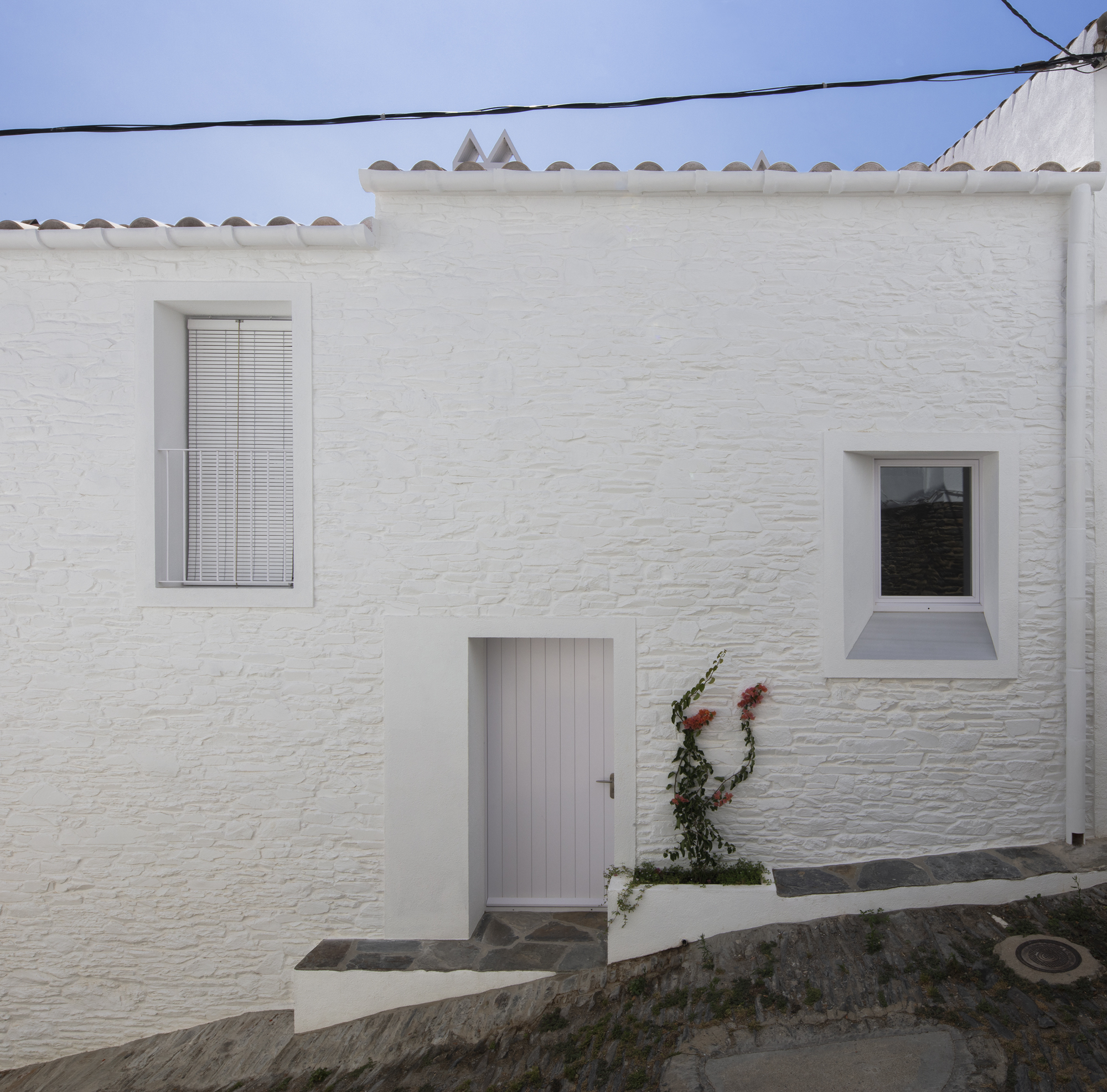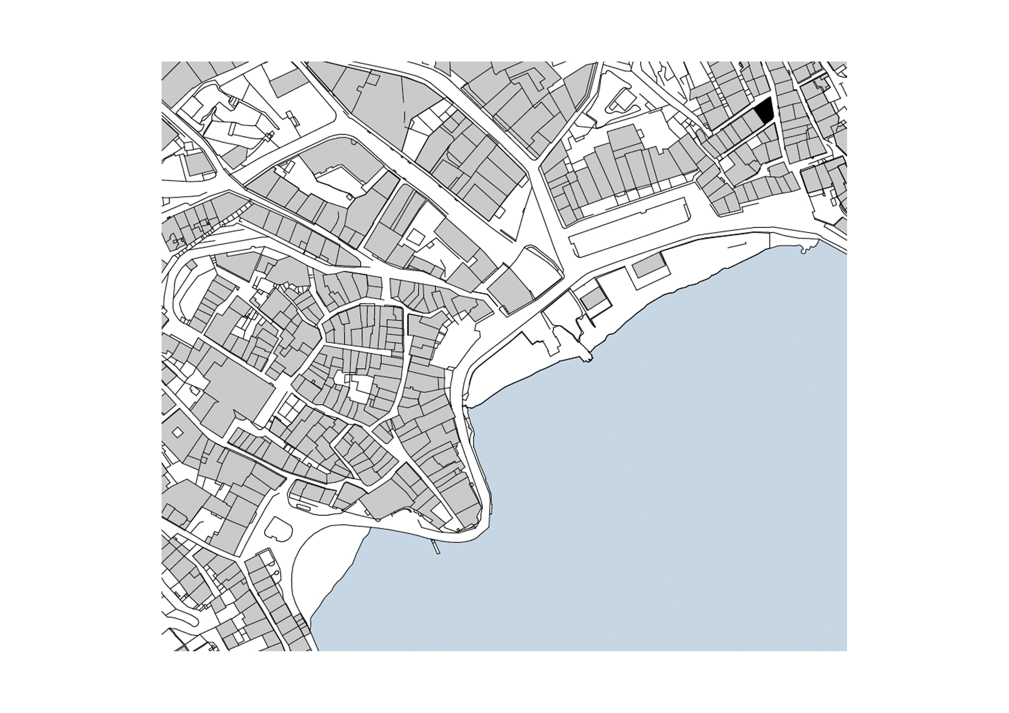 The house is built on one of the last remaining vacant lots in the historic centre. The end of a block of terraced houses, the site was defined by a tall party wall and semi-decayed stone perimeter walls on three very steep stone-paved streets. The remnants of a house that had disappeared centuries ago, it was used for generations as an impromptu kitchen garden and chicken coop. A wide arched doorway at the site’s corner intimated former habitation.