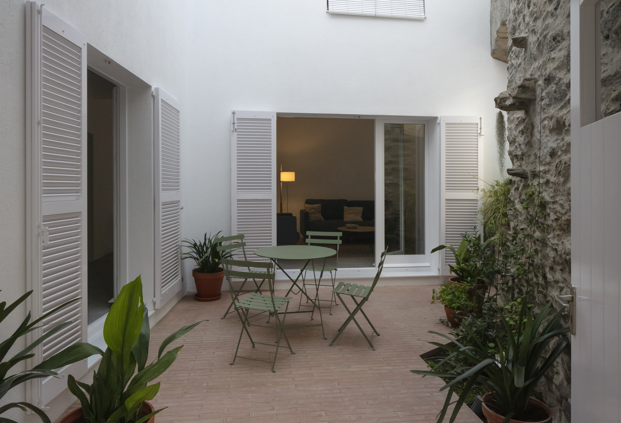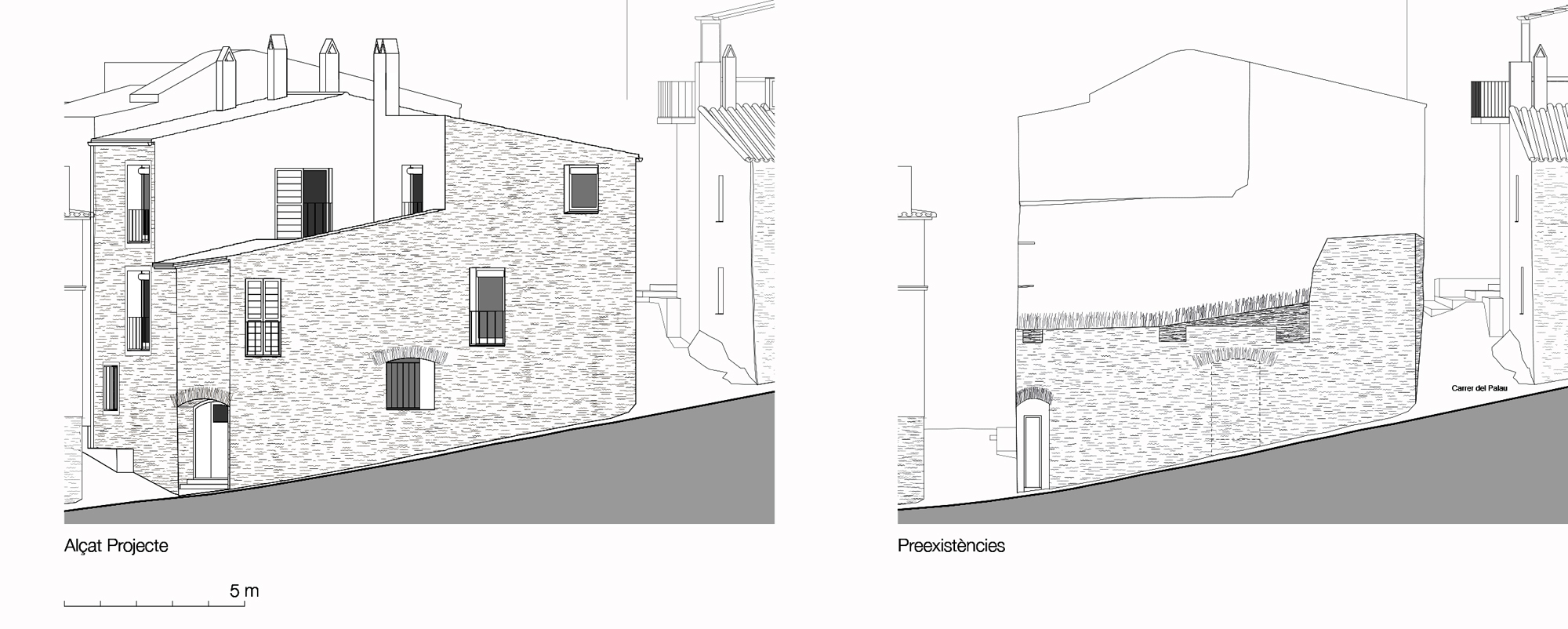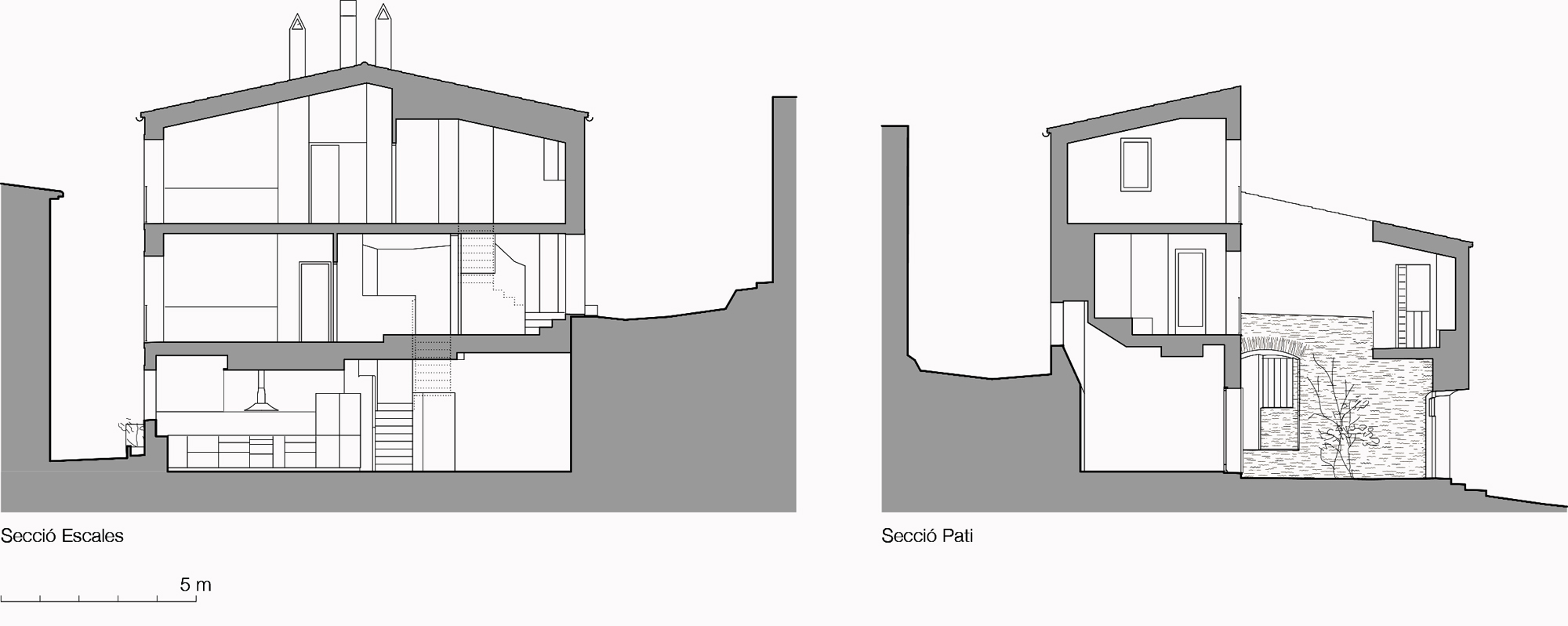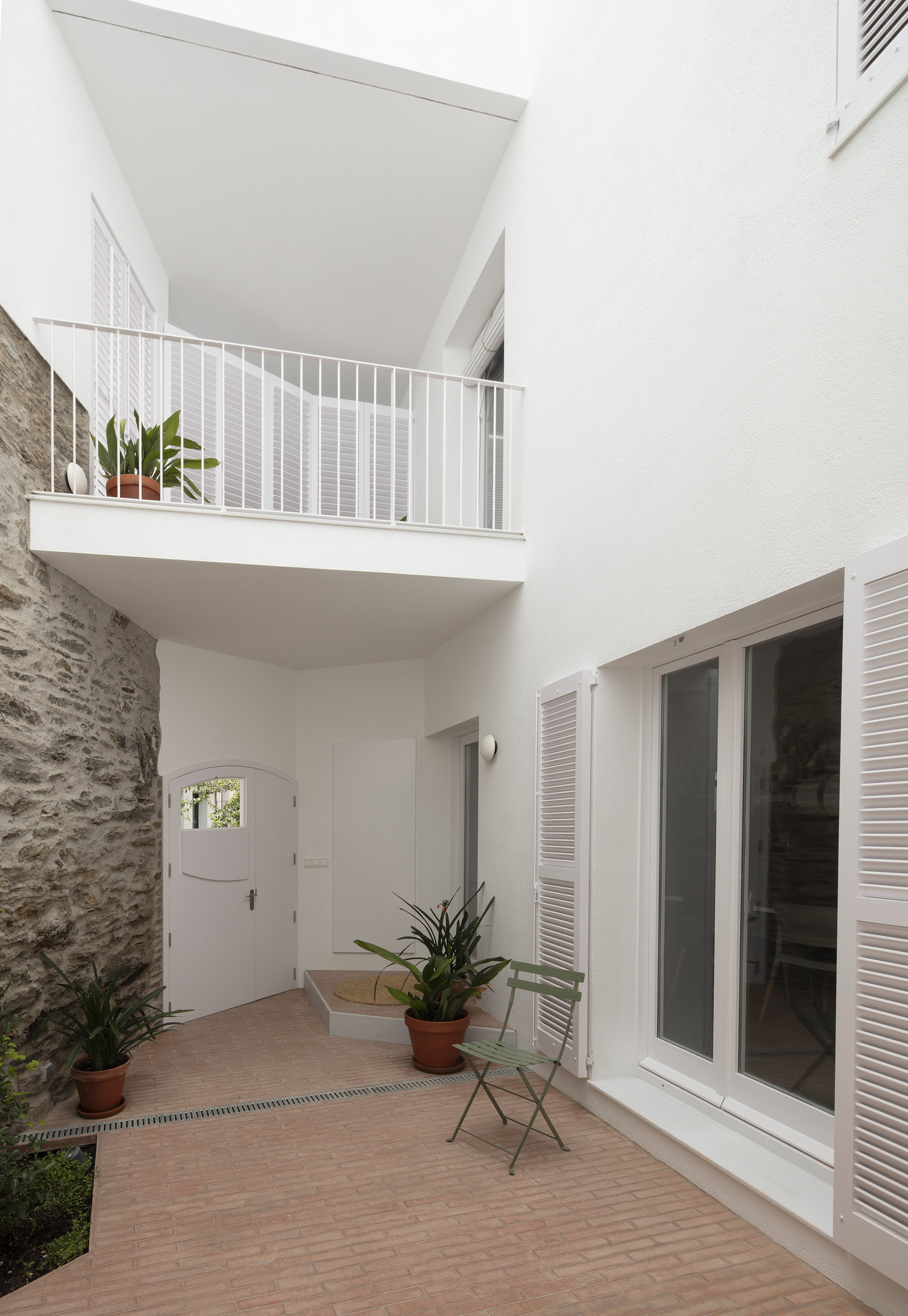 The house is built on one of the last remaining vacant lots in the historic centre. The end of a block of terraced houses, the site was defined by a tall party wall and semi-decayed stone perimeter walls on three very steep stone-paved streets. The remnants of a house that had disappeared centuries ago, it was used for generations as an impromptu kitchen garden and chicken coop. A wide arched doorway at the site’s corner intimated former habitation.