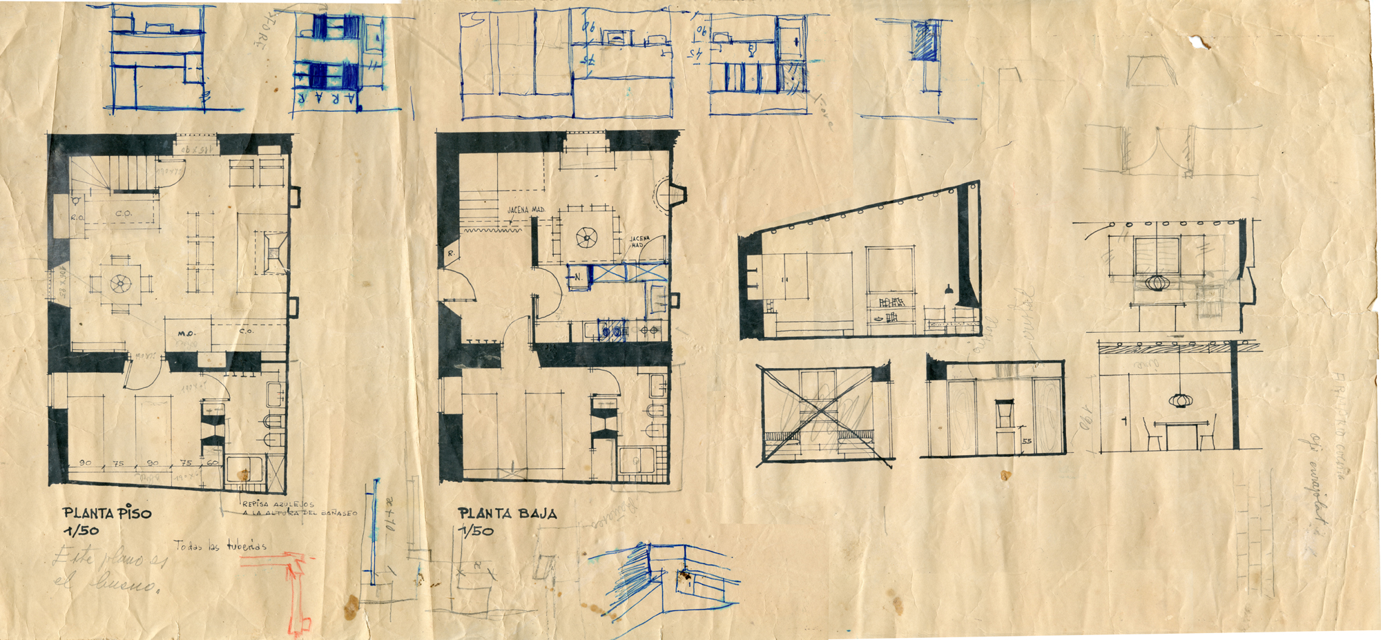 The photographic and sketch documentation of the house, from 1958 through the early 60’s, was a valuable source of information for our restoration, as well as a guide to furnishing and decorative elements ranging from the DISA lamp (J.A. Coderch, 1957) to locally produced esparto grass rugs.