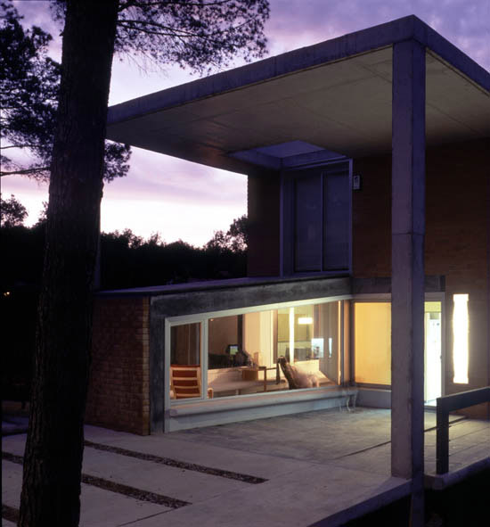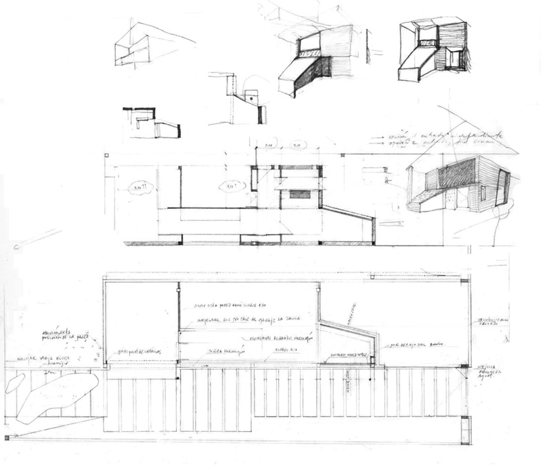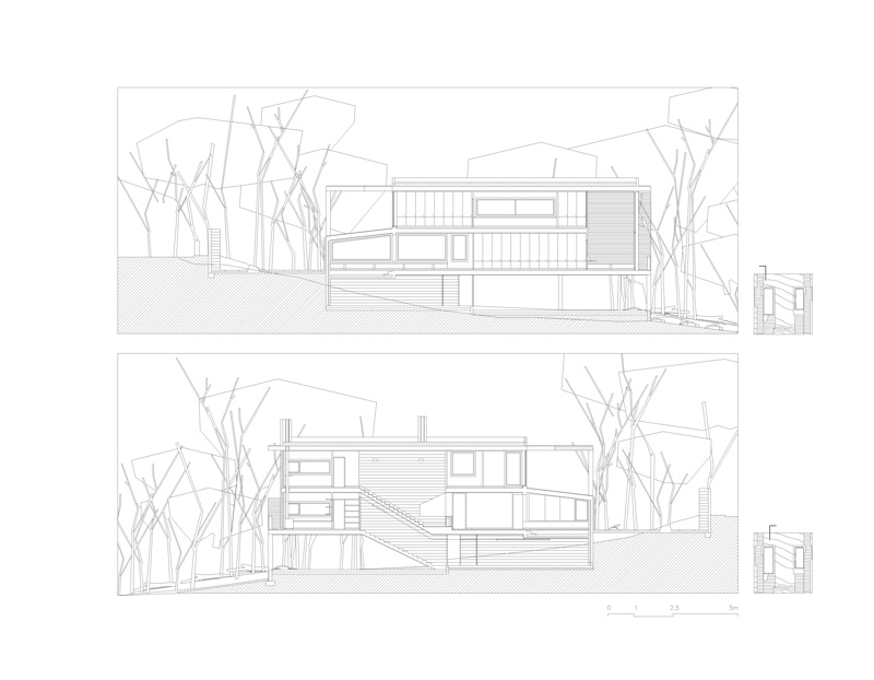 El encargo consistía inicialmente en una única casa, pero se decidió hacer una casa en dos partes, unidas por una rambla de bosque; un lugar compartido que se conserva casi tan salvaje como se encontró el primer día, un espacio que se ha convertido en la mejor habitación.