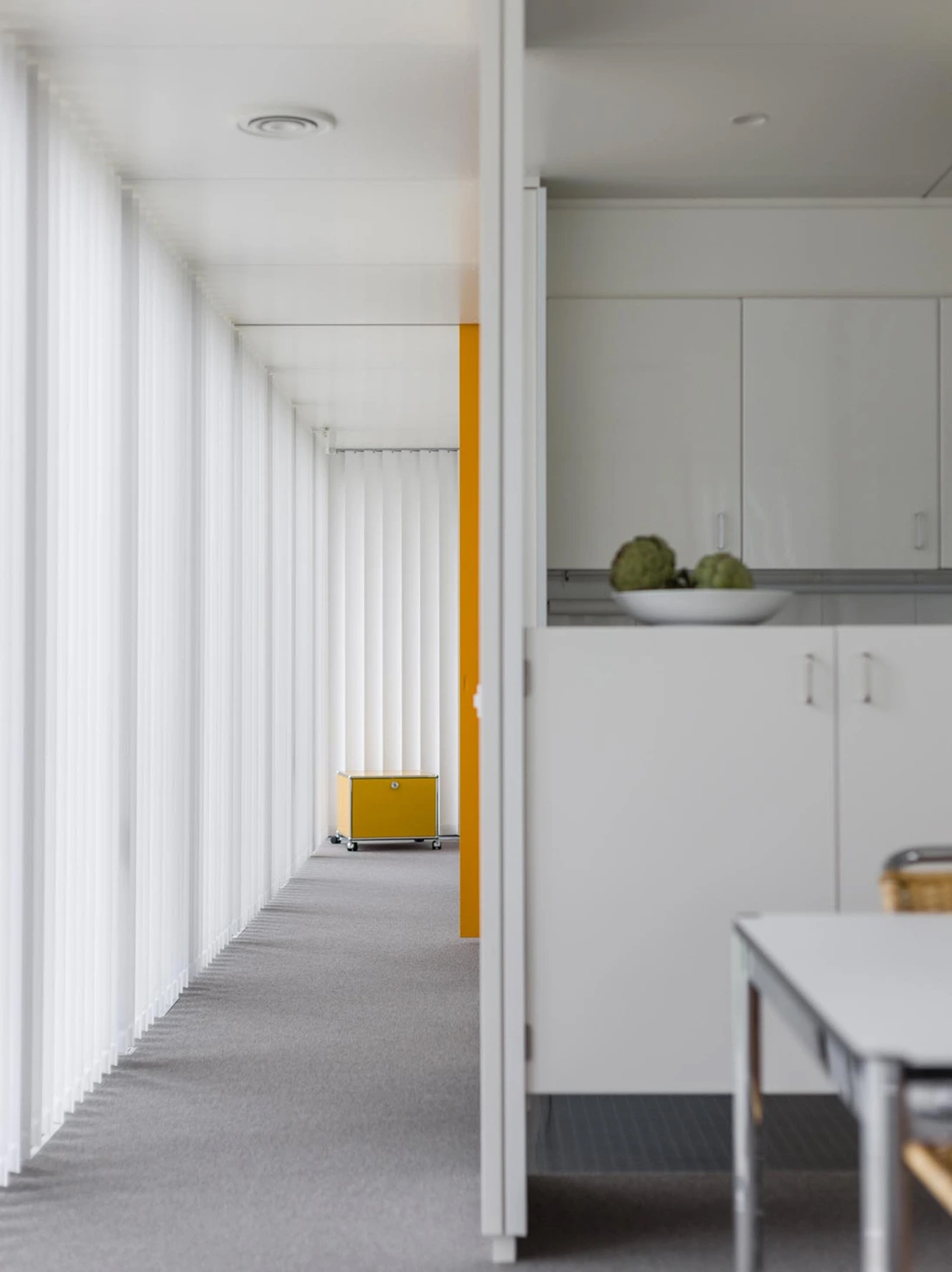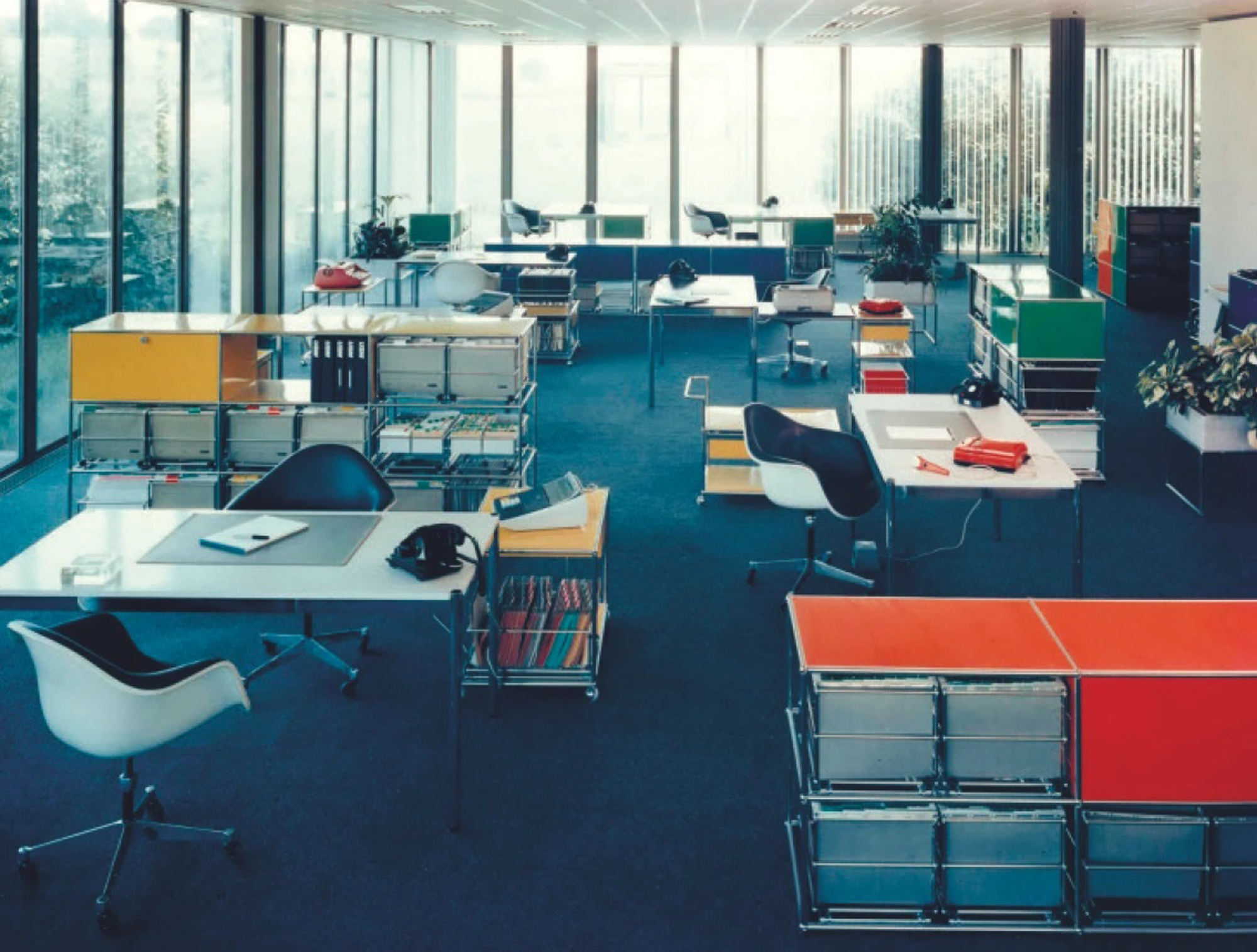 The new USM offices in the pavilion with the first prototypes of USM Modular Furniture Haller.
