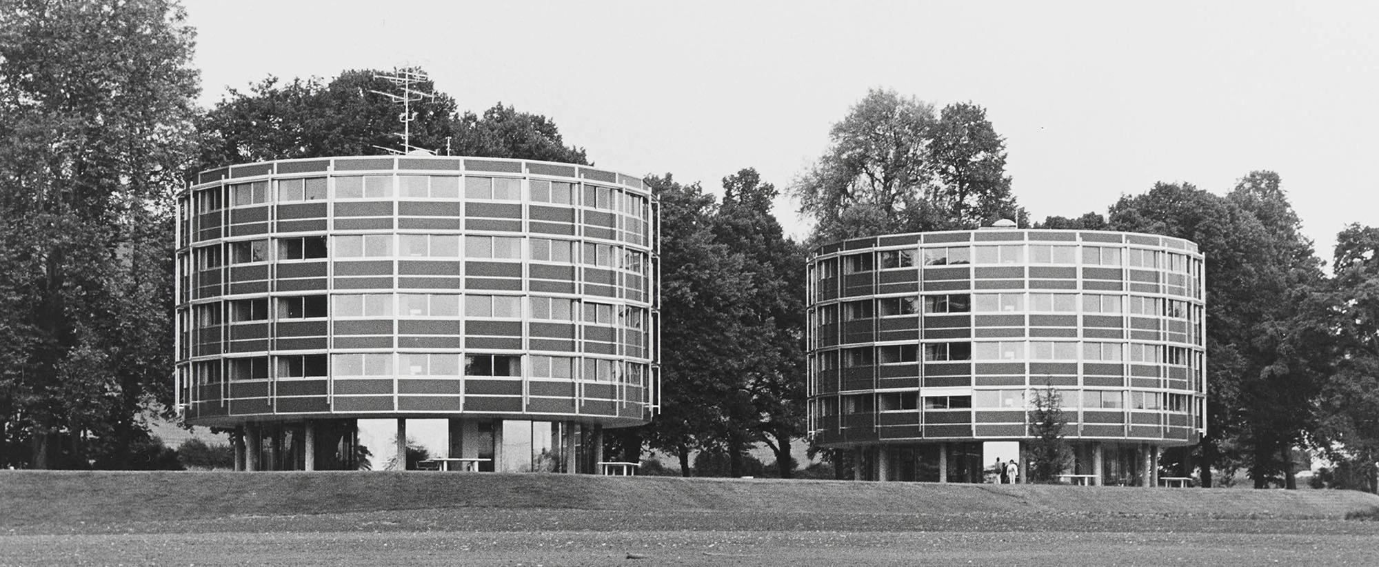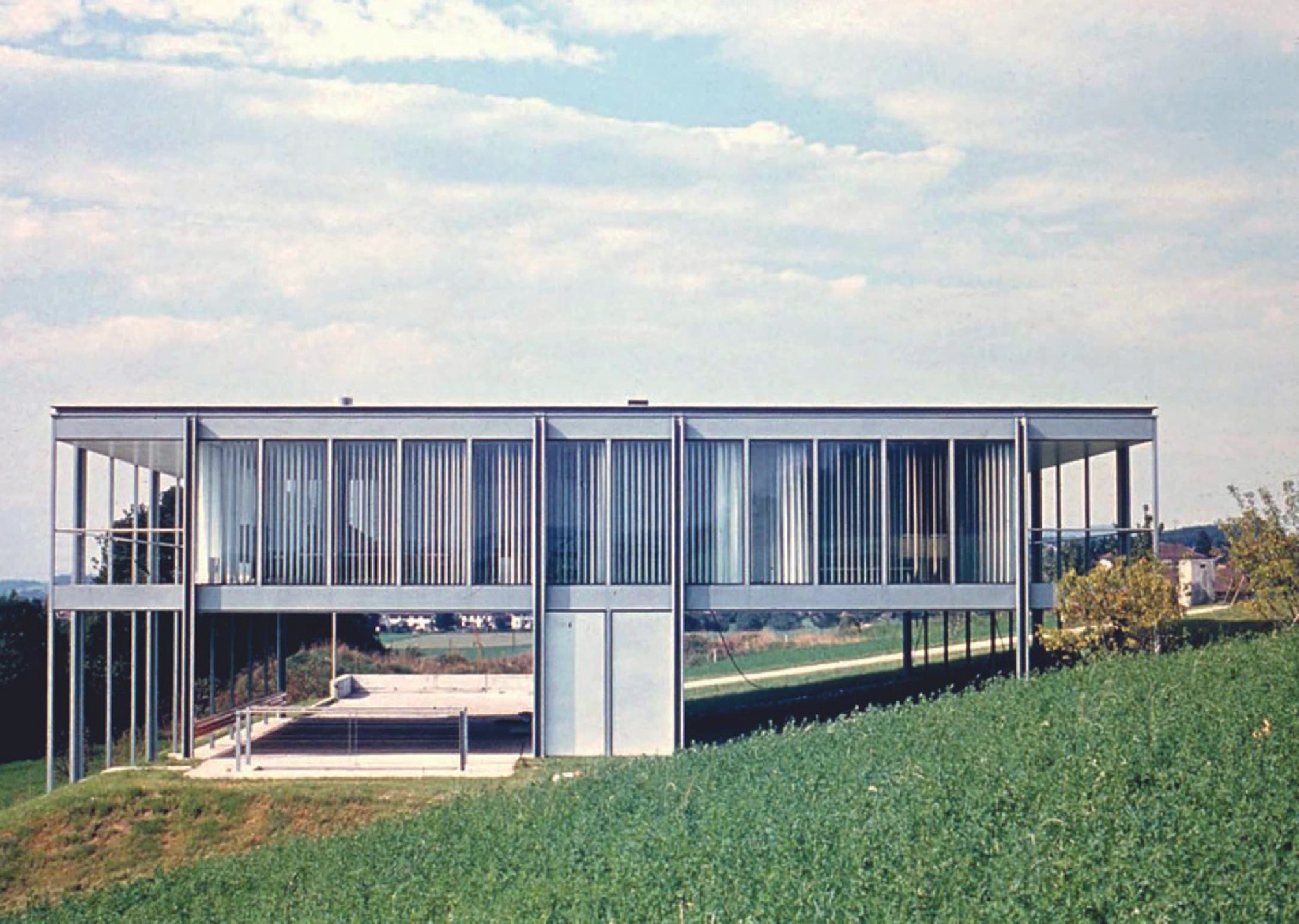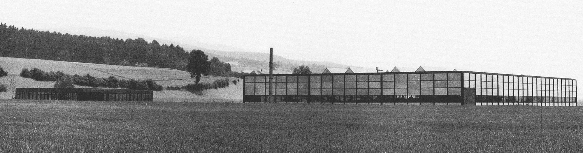 The new factory (1963) and the office building’s pavilion (1965) in Münsingen, built by the architect Fritz Haller.