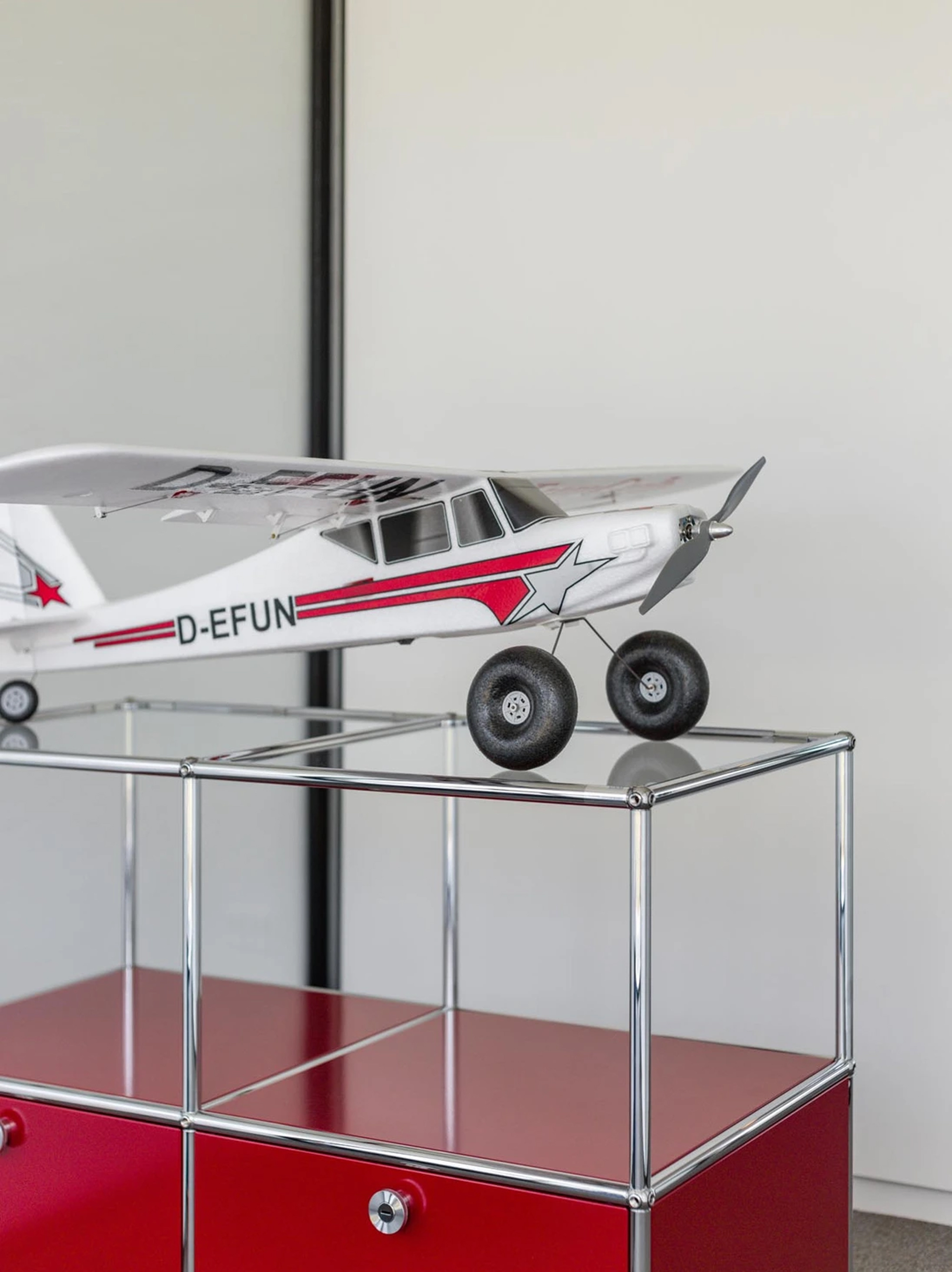 The partnership between USM and Fritz Haller led to the creation of three modular systems produced by USM until 1994 and sold under the brand names steel construction system USM Haller MINI, MIDI and MAXI.