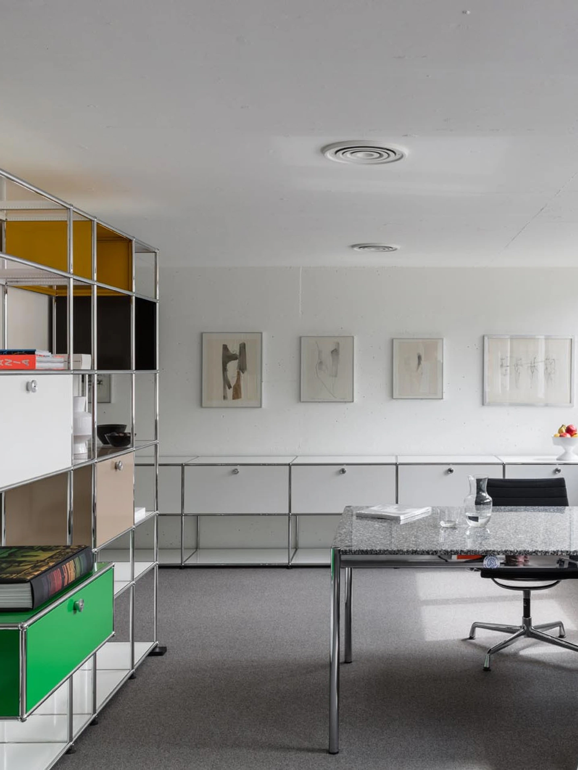 USM es una empresa familiar de muebles suiza con presencia global. El sistema USM Haller, marca propia, lleva fabricándose más de medio siglo. En este tiempo se ha convertido en un símbolo de adaptabilidad y durabilidad con un estilo atemporal.