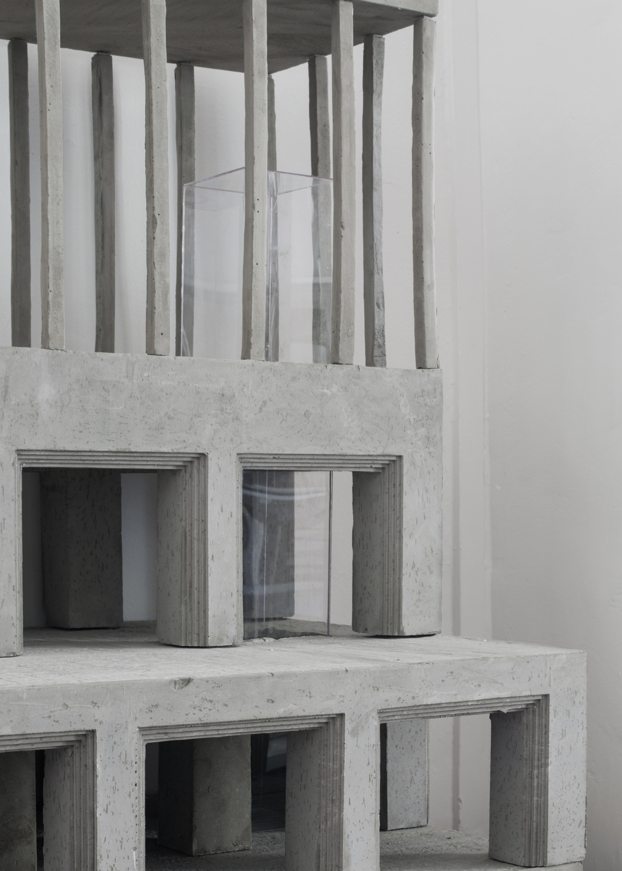 That square is dug straight from the chapel, unveiling the stone base on which it lays and allowing the light to enter the extension under the square level. The new room and monument are thus very strongly intertwined, endowing the room with a cryptic dimension.