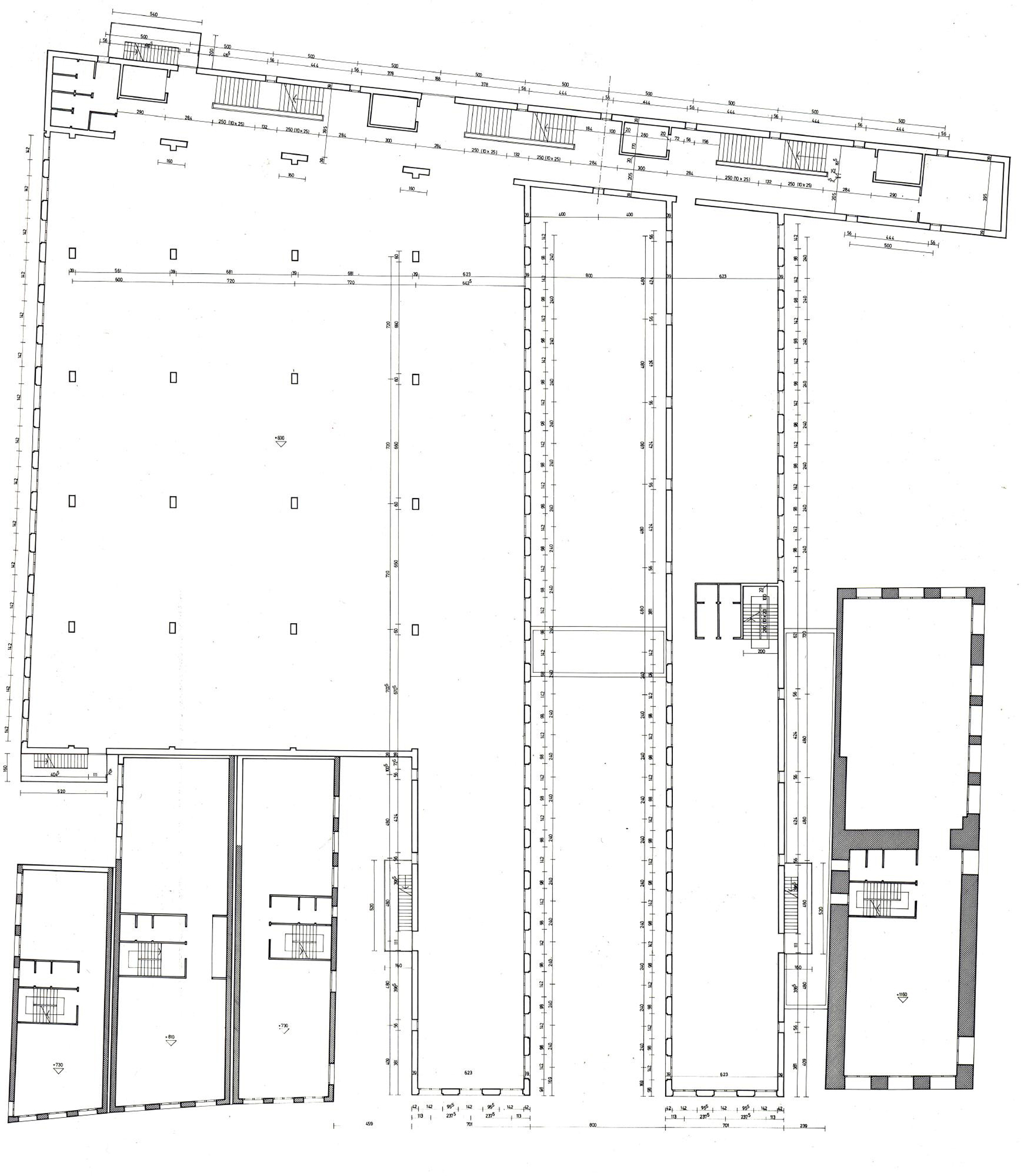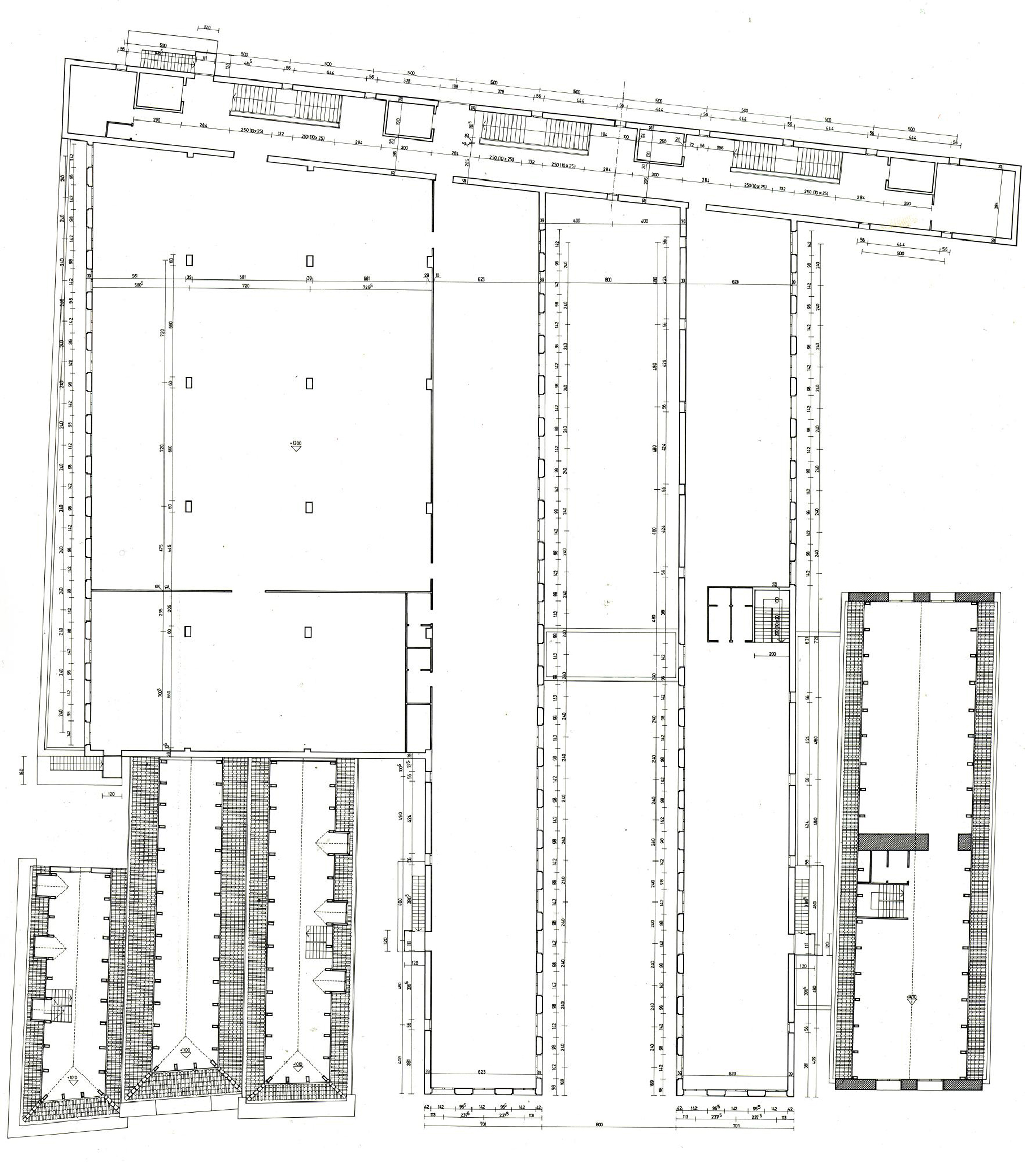 1) La prima è stata affrontata nel progetto in termini squisitamente volumetrici. Evidenziando cioè con l’articolazione dei corpi edilizi le differenti destinazioni d’uso delle parti dell’edificio: separando il corpo edilizio della biblioteca vera e propria (sale di lettura, depositi, ecc.) da quello degli uffici e dei servizi generali e collegandoli all’estremità con un terzo corpo trasversale molto sottile, anch’esso volumetricamente individuato e destinato contenere tutti i collegamenti verticali e orizzontali.